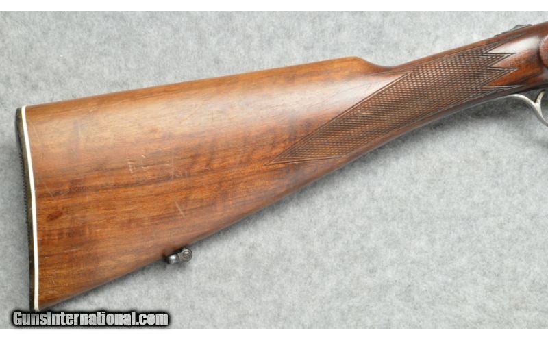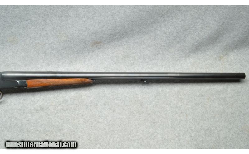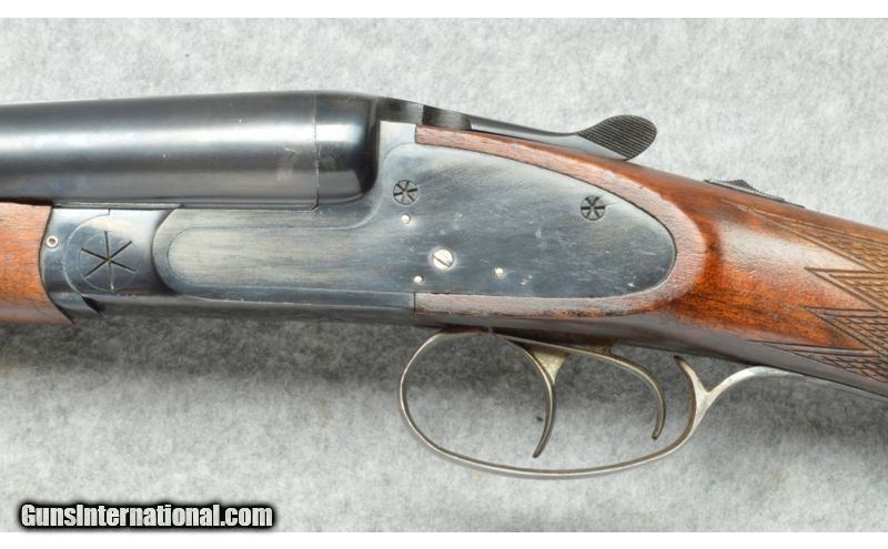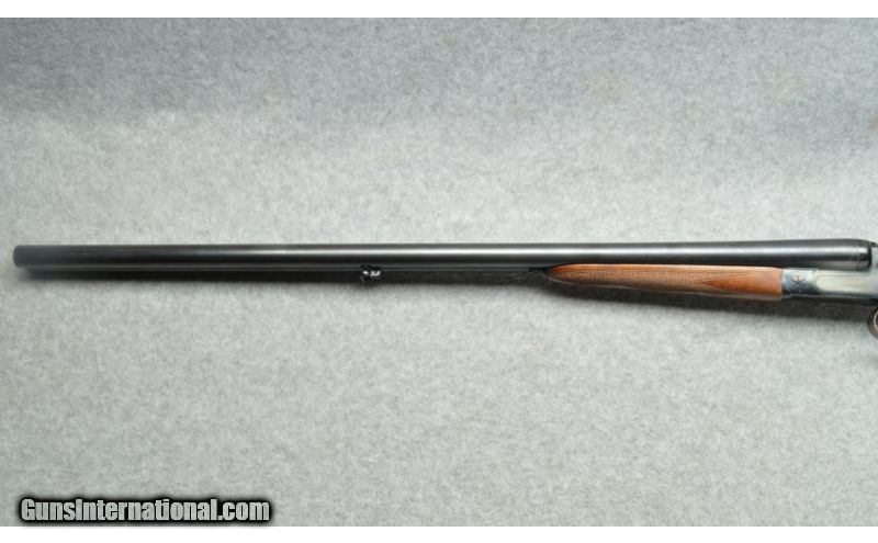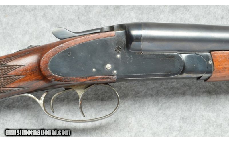 Description: SOLD Manufacturer: 1986. Caliber Info: 12 Ga. Chambers: Break action side by side, two round capacity, 2 3/4" chambers, ejectors. Metal Condition: Good, trigger guard finish is very worn. Wood Condition: Good, some minor scratches and wear marks. Bore Condition: Very good. Barrels: 28 inch round smooth bore barrels. Triggers: Two triggers, one for each barrel. Stock: Checkered straight grip English style wooden stock. Stock Dimensions: 14 1/4 inch length of pull for the front (right barrel) trigger, 13 1/4 inch length of pull for the rear (left barrel) trigger. Fore End: Small checkered wooden fore-end. Butt Pad: Black synthetic butt plate. Weight: 6 pounds. Sights: Brass bead at the muzzle. Chokes: Fixed choke, left barrel is Full choke, right barrel is Modified choke. Item Location: Berlin, MA |
