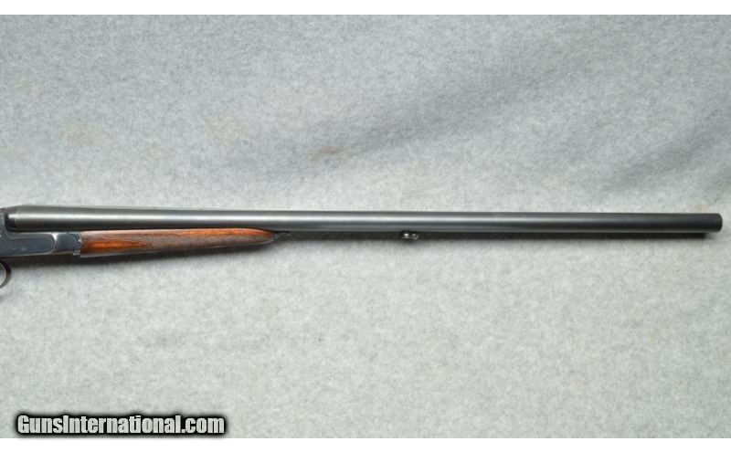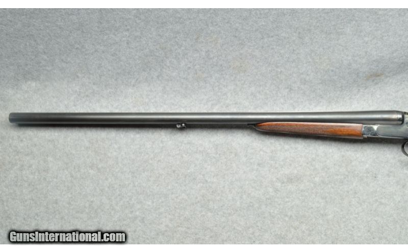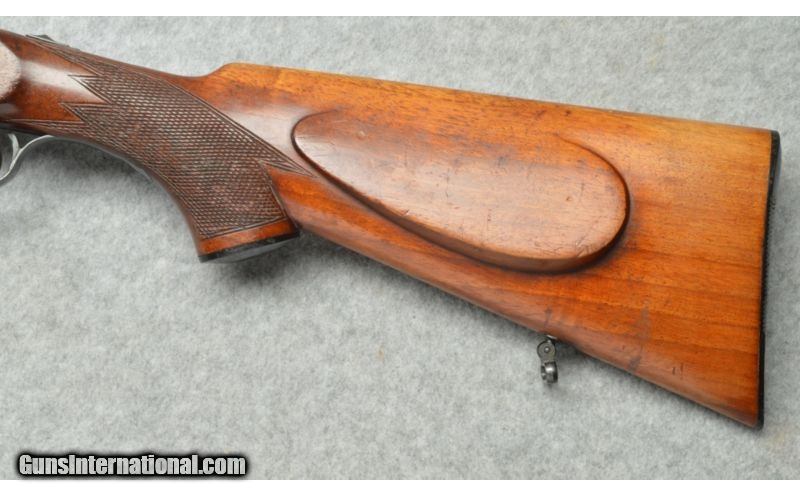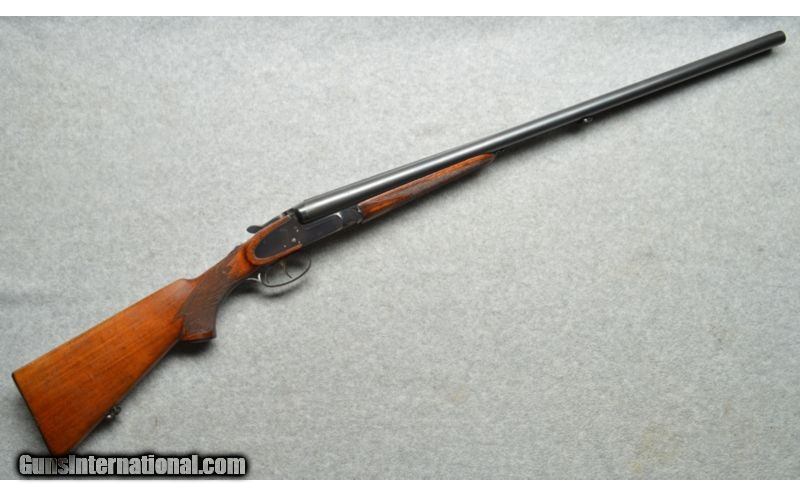 Description: SOLD Manufacturer: 1987. Caliber Info: 12 Ga. Chambers: Break action side by side, two round capacity, 2 3/4" chambers, ejectors. Metal Condition: Very good. Wood Condition: Good, some minor scratches and wear marks. Bore Condition: Very good. Barrels: 28 1/2 inch round smooth bore barrels. Triggers: Two triggers, one for each barrel. Stock: Checkered pistol grip wooden stock with raised cheek piece. Stock Dimensions: 14 1/4 inch length of pull for the front (right barrel) trigger, 13 1/4 inch length of pull for the rear (left barrel) trigger. Fore End: Small checkered wooden fore-end. Butt Pad: Black synthetic butt plate. Weight: 6 pounds. Sights: Brass bead at the muzzle. Chokes: Fixed choke, left barrel is Full choke, right barrel is Modified choke. Item Location: Berlin, MA |