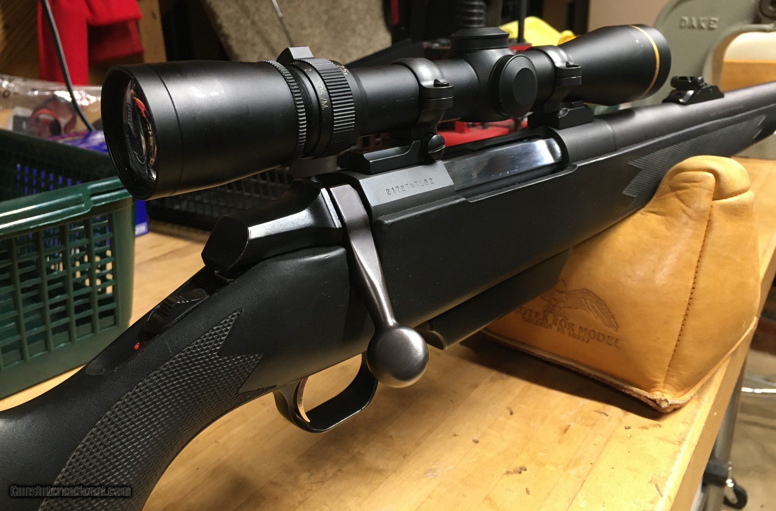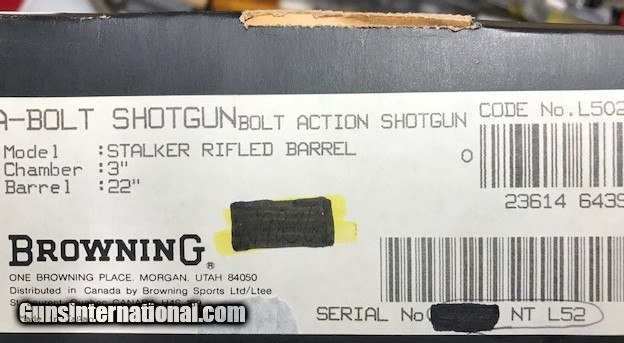 Description: A-Bolt Stalker Slug Gun, Bolt-action, rifled barrel for slug and sabot ammo, detachable box magazine,adjustable sights, Factory drilled and tapped for scope mounts, 3" chamber, 2 recoil pads (original and Pacmayr Decellerator) crisp adjustable trigger, smooth bolt operation, short 60° bolt lift and detachable box magazine. Light scratches on barrel otherwise excellent condition. Gauge 12 Chamber Length 3" Barrel Length 22" Overall Length 43 3/4" Length of Pull 14" or 13.5" Barrel Finish Low Luster Blued Drop at Comb 5/8" Drop at Heel 1/2 ", Weight 7 lbs 0 oz Magazine Capacity 2 Barrel Finish Low Luster Blued Trigger adjustable Action Factory Bedded Rings & Bases Leupold (included) Leupold VXIII 3.5 x 10 (negotiable). (35.00 S&I) SOLD |