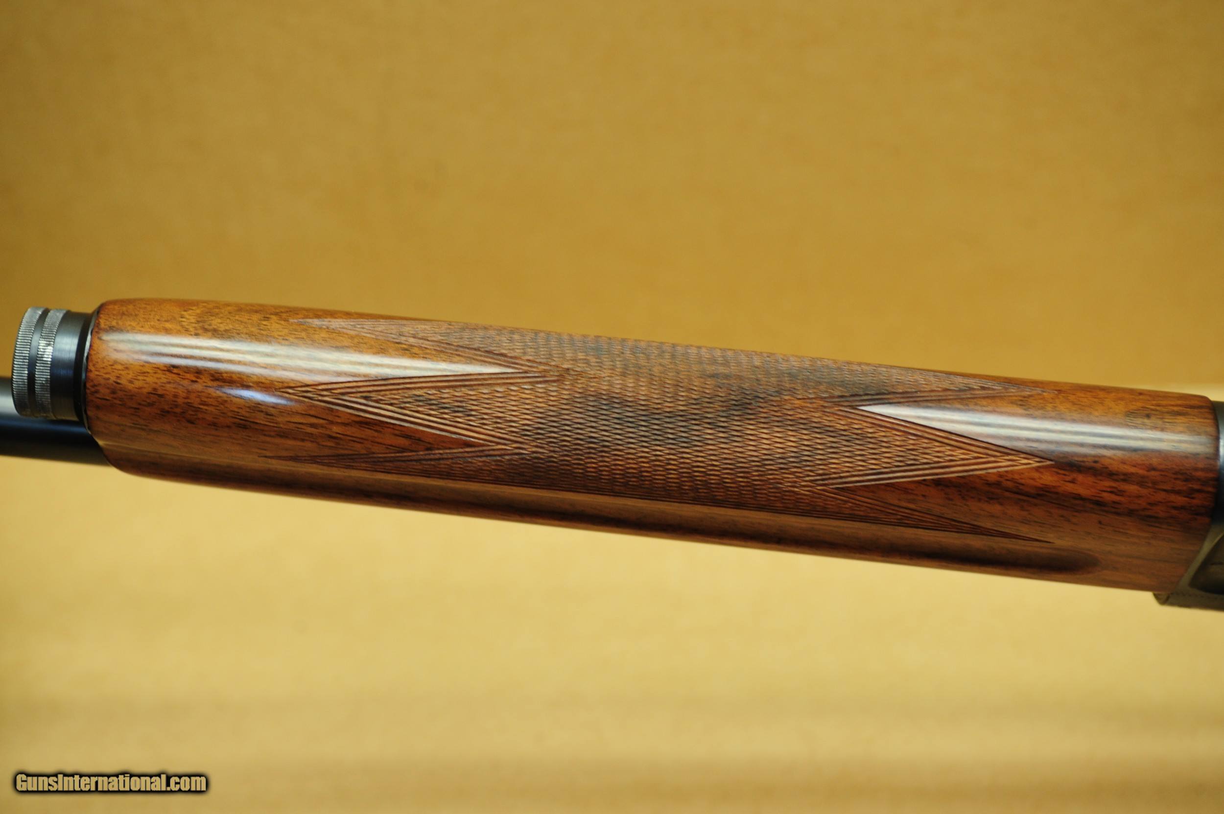 Description: Browning A-5 12 gauge shotgun. It has a 26" solid rib cylinder choked barrel. Serial number 211XXX made in 1939. The barrel of this shotgun had a poly choke and it was cut off to a cylinder choke. The barrel was rust blued and remarked to *** cylinder. The stock was refinished,checkering recut and has no cracks or repairs. Would make a great shooter. SOLD |