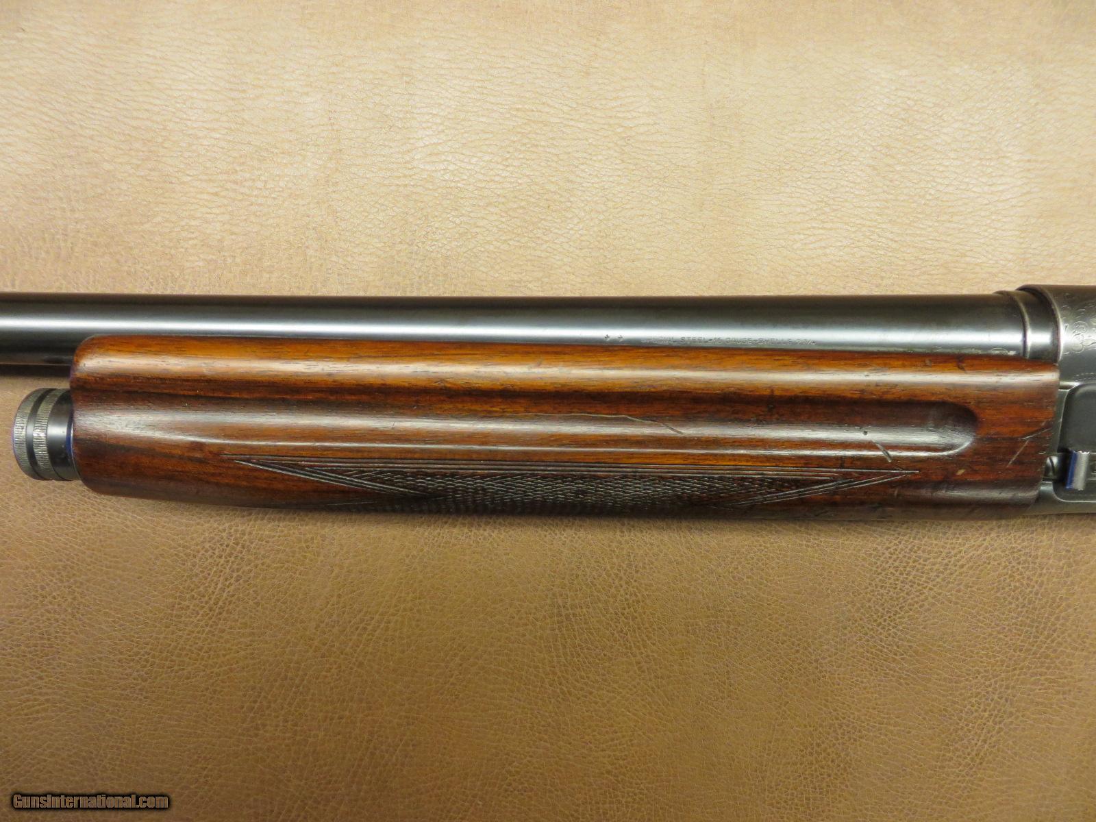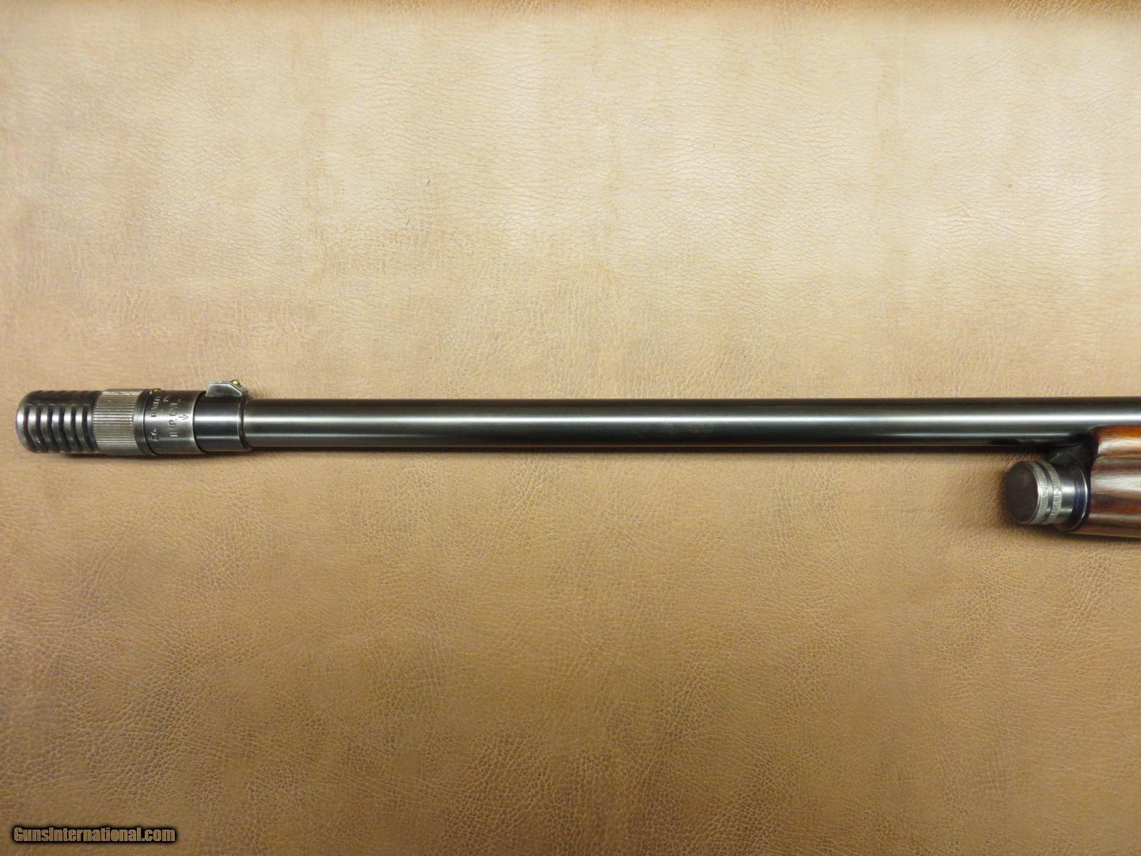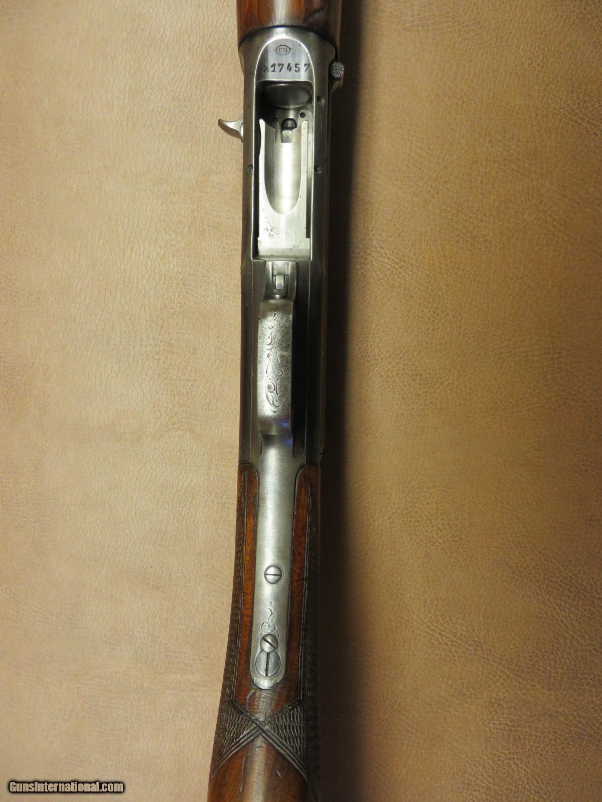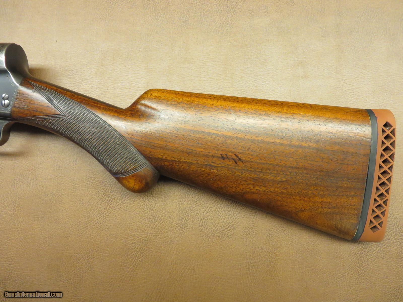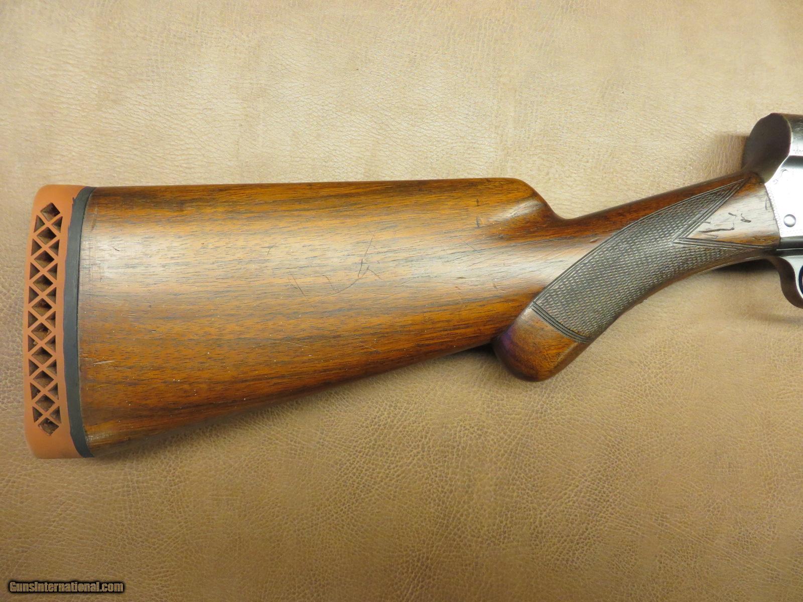 Description: Standard weight 16 ga. 2 3/4 inch has 28 inch barrel with adjustable vented Poly Choke. Serial number X17xxx. Made in Belgium. Engraved receiver. Refinished checkered walnut round knob stock has recoil pad with 14 inch length of pull. No cracks in wood. Barrel blue is 95% and the receiver is 75-80%. SOLD |