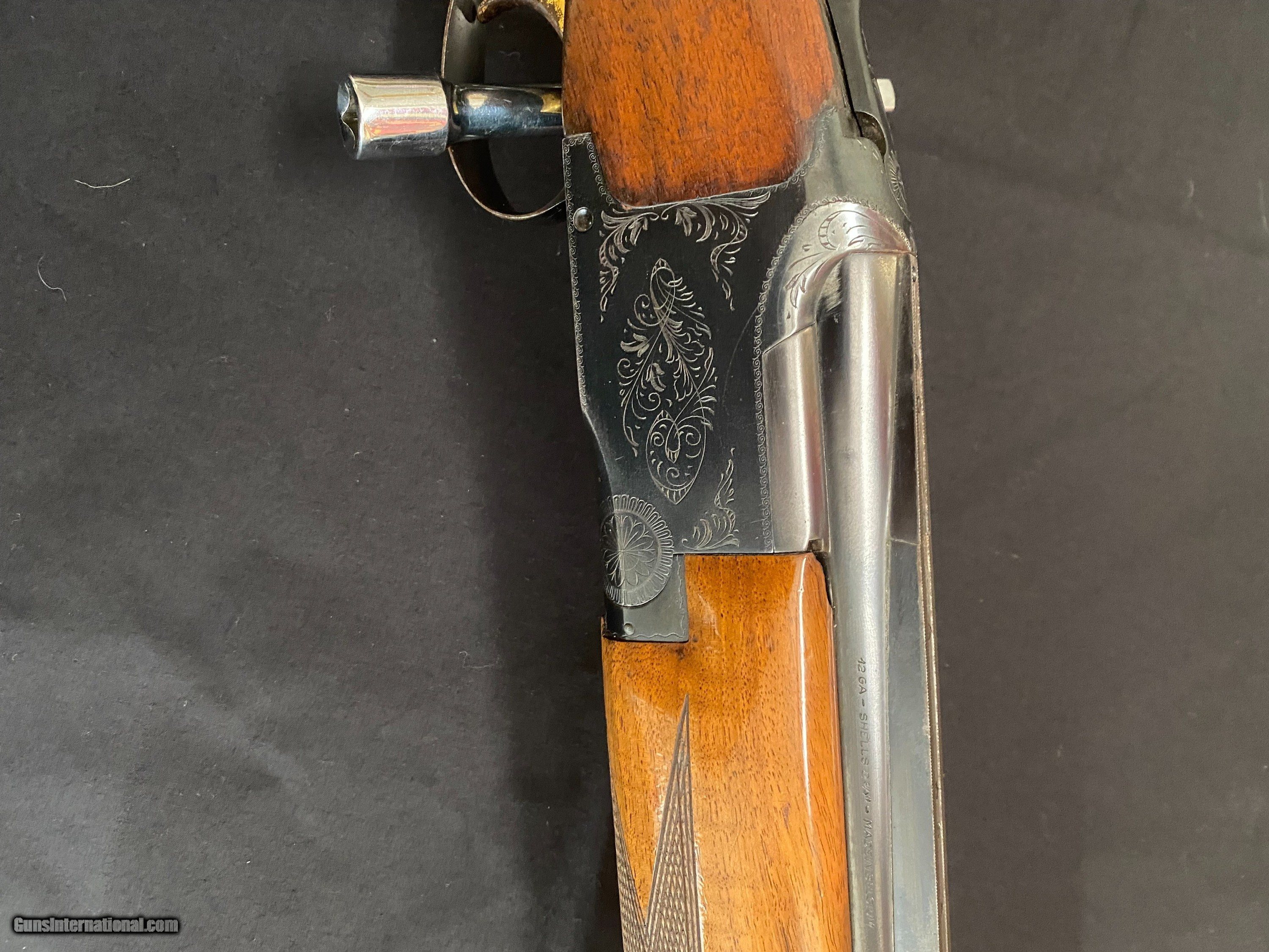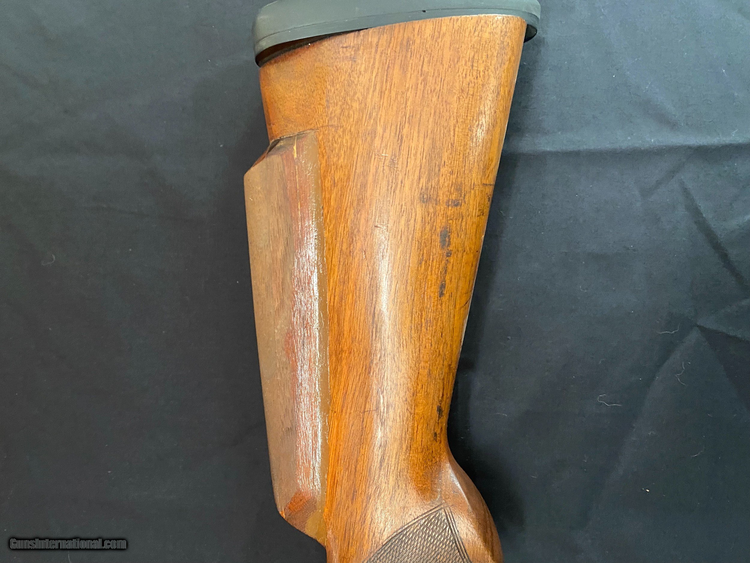 Description: 1963 Belgium Browning. Stock had a comb added. Barrels were cut to 29.5 and the chokes are cylinder. The broadway rib is drilled for scope mounts. I suspect it may have been used as a slug gun at some point. Works well as a skeet or short sporting clays gun. SOLD Shotgun Gauge: 12 Gauge Manufacturer: Browning Model: Grade 1 Serial Number: 16699 S3 Barrel Length: 29.5 Condition: Fair Metal Condition: Fair Wood Condition: Poor Bore Condition: Excellent |