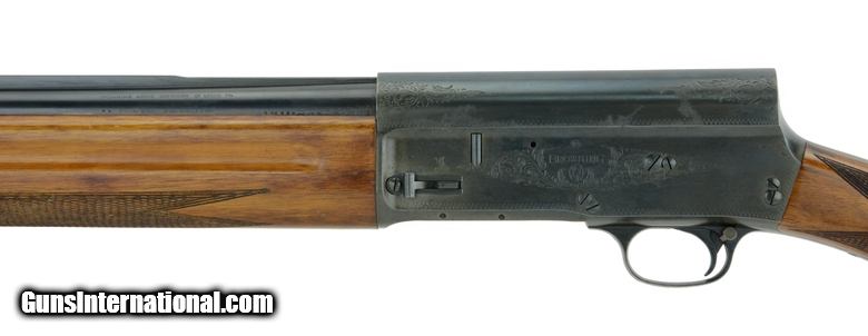 Description: Browning Auto-5 12 Gauge shotgun. Belgian made Auto-5 with 27 ½” solid rib modified choke barrel. Shows some light surface rust, overall very good condition.