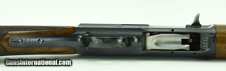 Description: Browning Auto-5 Sweet Sixteen 16 gauge shotgun. Belgian made Sweet Sixteen with 25½” solid rib barrel. The choke has been opened up to skeet (.002). The metal is excellent with about 96% original blue finish. The wood shows wear, particularly on the forend. Overall a very good gun, ready for the field.