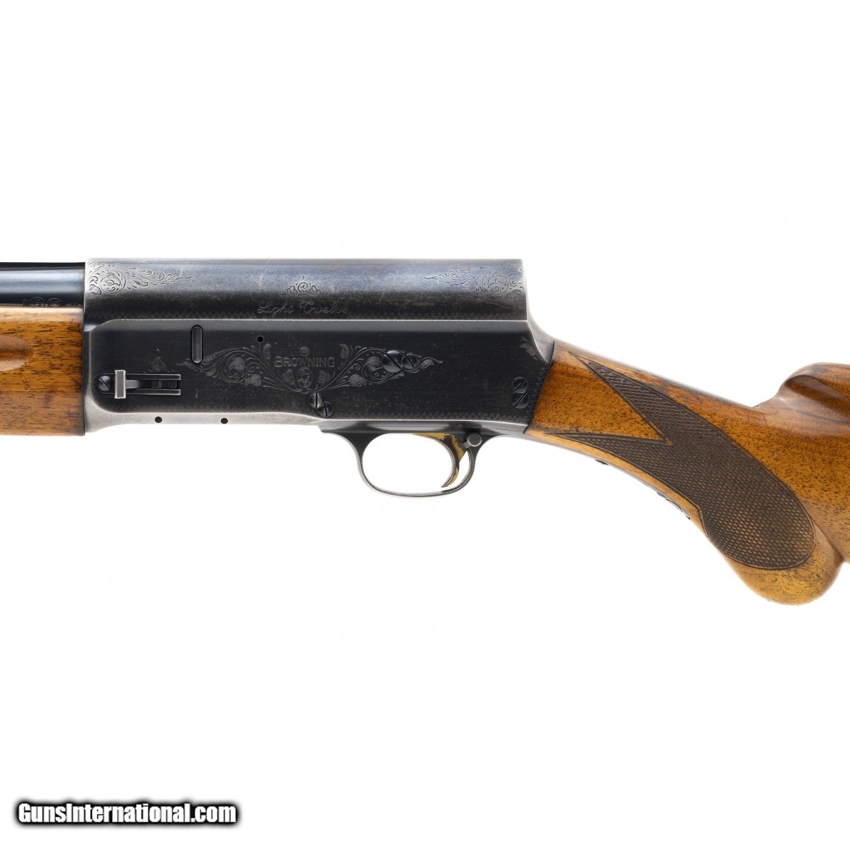 Belgian made lightweight semi auto shotgun with 27.5"" vent rib barrel, choked Mod. Made circa 1966 and the serial is 6G26973. The metal has approximately 60% of its original finish remaining. The forend is in very good condition and the stock is in good condition with handling wear and a mark in the left of the stock. The LOP is 15"" over a Pachmayr recoil pad. Overall fair to good condition.
