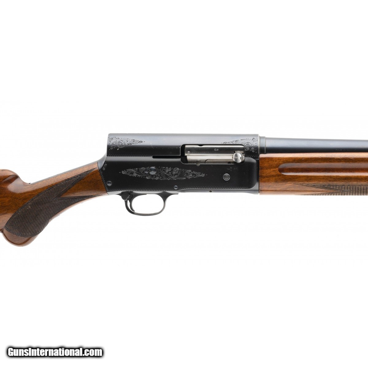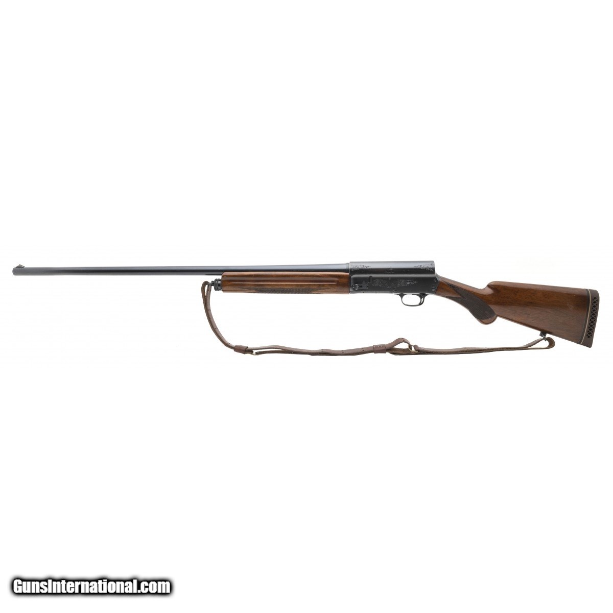 Description: " SN: 9V7790. Circa 1959. 12 gauge with a 32"" barrel, bore is excellent. Belgian made semi automatic shotgun with 99% bluing, engraved humpback receiver, blued finish, full choked barrel and checkered walnut furniture. Overall very good condition with light handling wear on forend and stock. Comes with leather sling. SOLD |