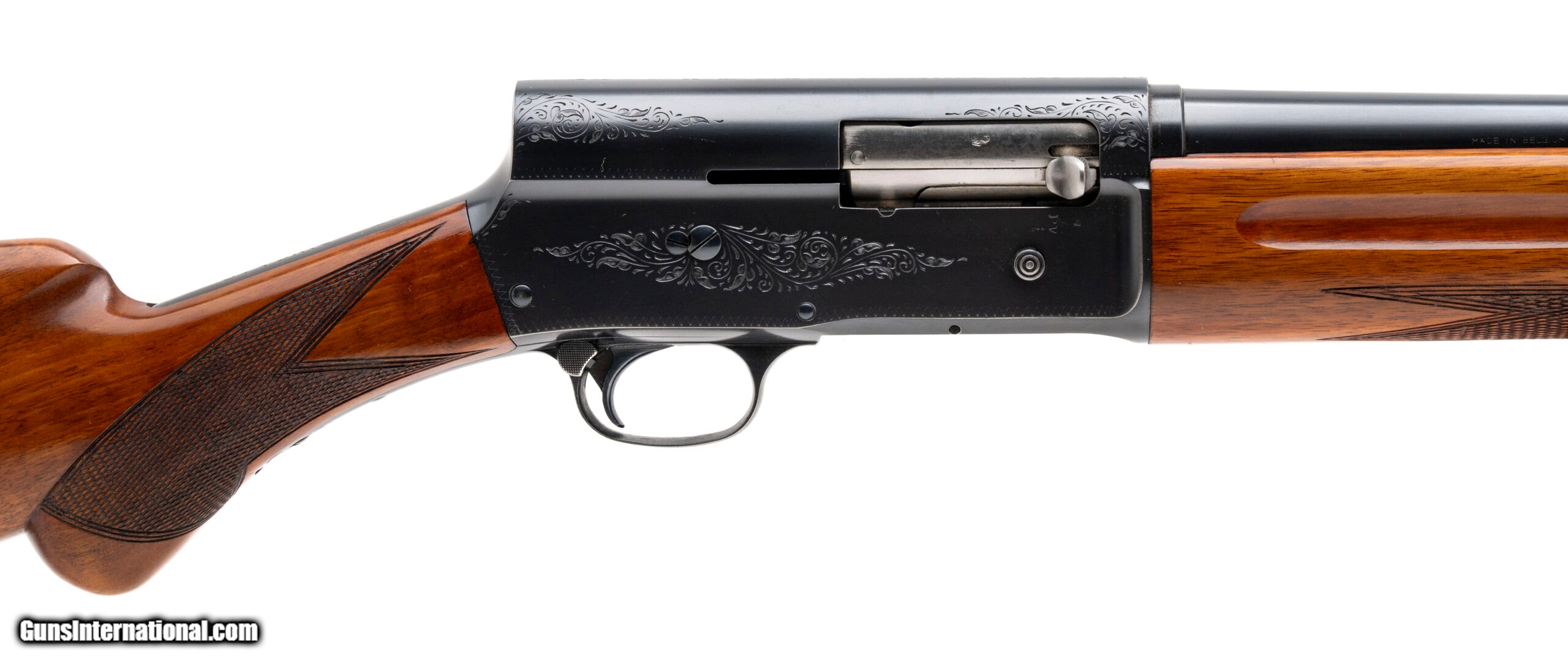 Description: "SN: R75436. Made in 1957, 16 gauge with a 26"" barrel chambered for 2 3/4"" shells w/Poly Choke Deluxe muzzle device. Bore is very good. Belgian made semi-auto field shotgun with engraved blue finished receiver & barrel, and checkered wood stock with a 14.25"" LOP. Stock shows handling wear. Overall condition is very good. SOLD Curio/Relic: Yes |