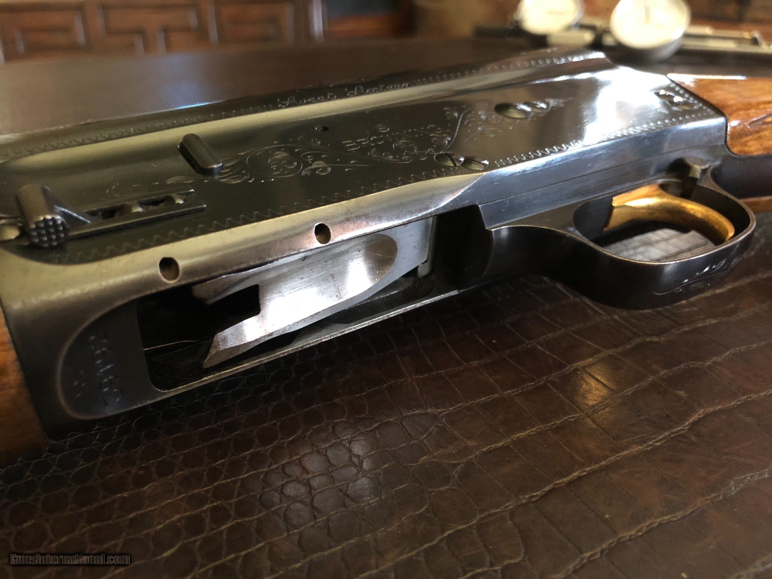 Description: *SALE PENDING* Browning A-5 - 16ga - Belgium Made “SWEET 16” - ca. 1965 - Round Grip - FN Butt Plate - Long Tang - LIKE NEW - 26” Barrel - Modified Choke - SN: 5S39192 - Fabulous 16ga! Manufacture Date: 1965 - 14 1/4 X 1 1/2 X 2 1/4 X 7 lbs 2 ozs - Carries like a 20ga and kills like a 12ga! There is one spot on the end of the barrels with some blue wear showing... other than that, excellence! *****SPECIAL NOTE***** 1. I am a reasonable man – I encourage you to make reasonable offers on my listings. At times, there is some flexibility in pricing – other times there is not. I have been collecting guns since 1988 – so I have amassed quite a covey of what I consider to be some very fine guns and some utility guns. Feel free to call me, unlike most gun dealers – I am easy to talk to and will answer the phone on weekends and late evenings (not after 9PM CST). 2. I DO NOT ACCEPT TRADES 3. I do provide LAY-A-WAY plan, please inquire about my terms if you have a need – glad to do it when I can. 4. My collection consists of many guns that were bought from individuals – that means **I BUY GUNS** but I only buy clean used guns with collectibility. In particular - **I BUY SHOTGUNS** 5. ALL OF MY TRANSACTIONS ARE DONE THROUGH MY FFL with whom I have a very solid relationship. If you buy a guns from me, you’ll pay them, they will ship to your FFL of choice and all dealings will be with them post receipt of funds. They are a high end boutique gun dealer in the Texas Hill Country and can accommodate the entire transaction. If you live in Texas and want to drive to see one of my guns, reach out to me to discuss making an appointment with my FFL – I do not show guns at my home nor do I meet guys at public locations for viewings or sales. ALL GUNS ARE LEGALLY TRANSFERRED through my FFL – there are NO EXCEPTIONS. 6. Certified funds are preferred – if you send a personal check for payment the FFL ships one week after receipt. Certified funds payments – shipments are done next business day. NO CREDIT CARD payments are accepted. 7. I encourage you to shoot the guns you buy from me – so during your 3 day inspection – shoot the gun. Make sure it is operating in the manner you expected. If you are not happy – return the gun for a full refund except shipping costs SOLD |
