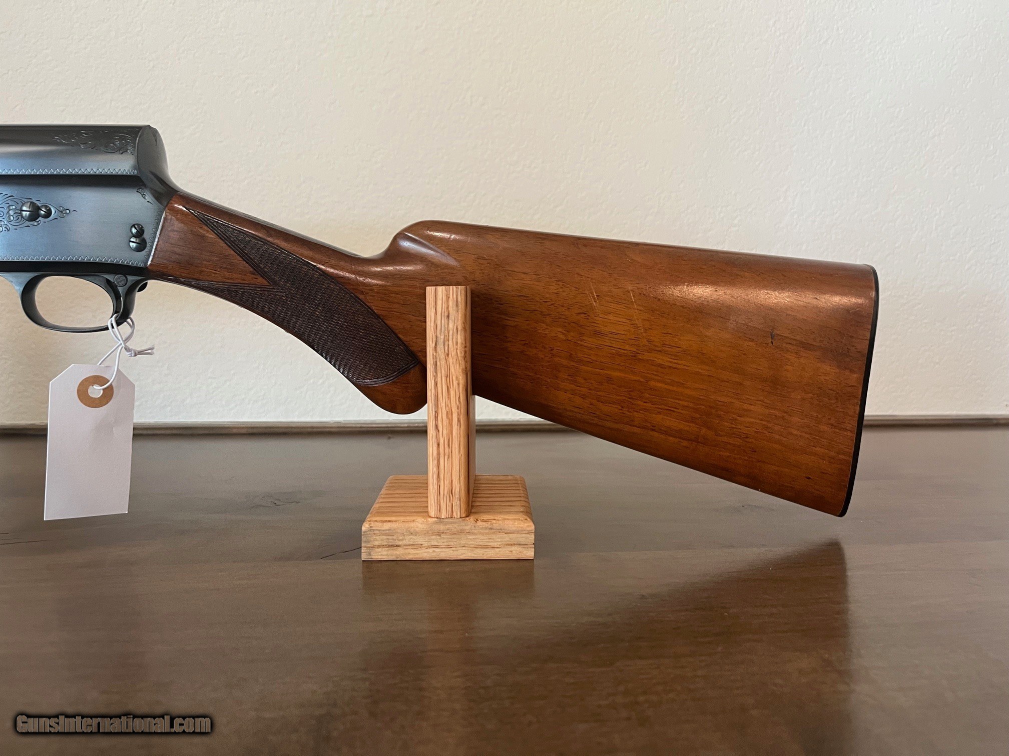 Description: Manufactured in 1957 in Belgium, this is a pre-Sweet Sixteen standard weight auto 5. This firearm is in exceptional condition for its age operates flawlessly. Very few handling marks in the metal and the bluing is in outstanding condition. Wood has some pressure indents from normal hunting use but no deep scratches or marks and NO CRACKS in the forearm. This 16 gauge is chambered with 2 3/4 inch plain barrel and has a fixed full choke on 28 inch barrel. Take a real close look at the pictures and you will see this gun to be in excellent shape. Make an offer! All serious offers will be considered! SOLD Shotgun Gauge: 16 Gauge Manufacturer: Browning Model: Auto 5 Serial Number: R 95012 Barrel Length: 28 Chambers: 2 3/4 Condition: excellent Metal Condition: excellent Wood Condition: excellent/very good Bore Condition: excellent Barrels: plain Action: semi-auto Butt Pad: original Rib: none Finish: Factory Manufacture Date: 1957 Chokes: Full |