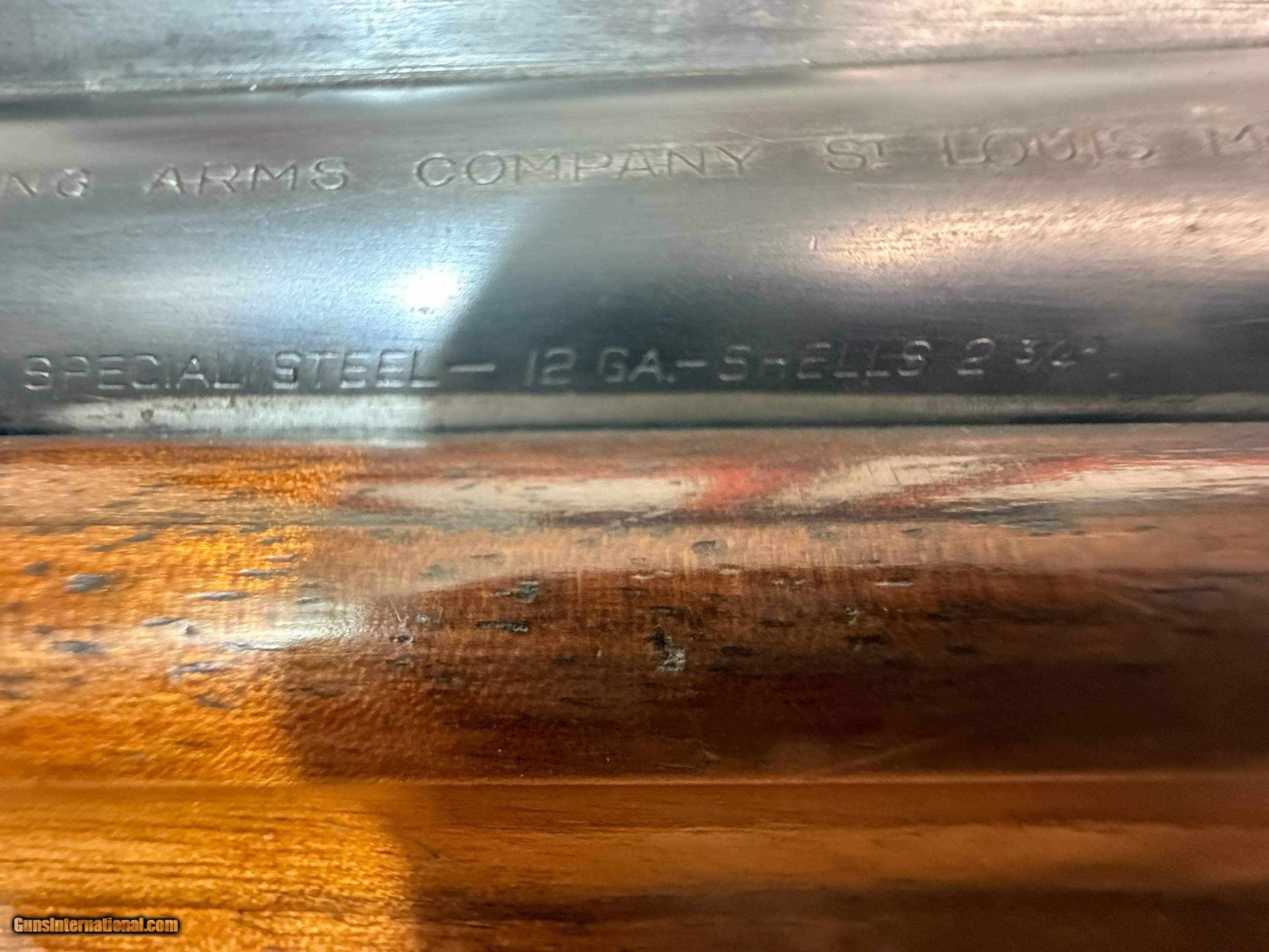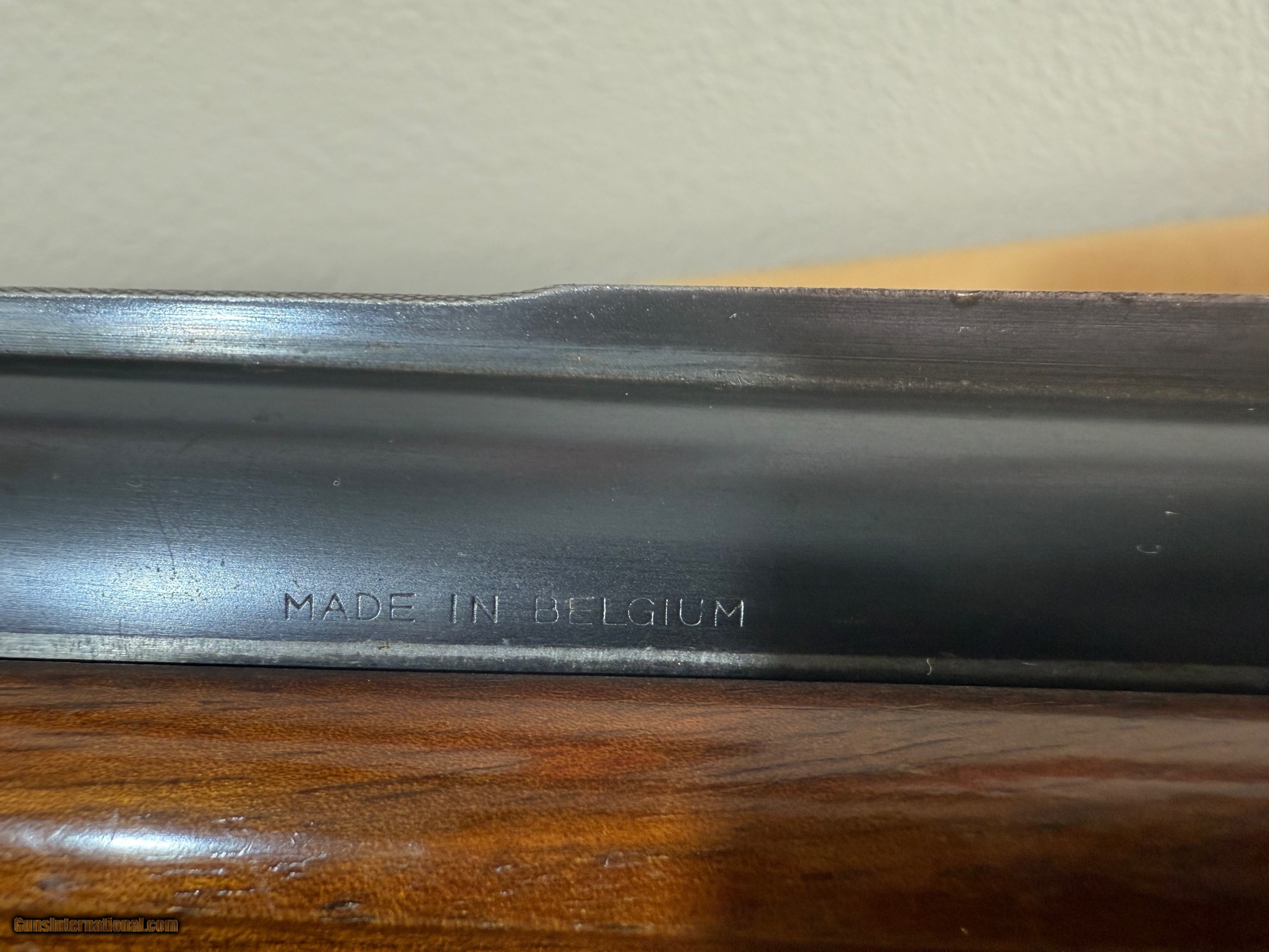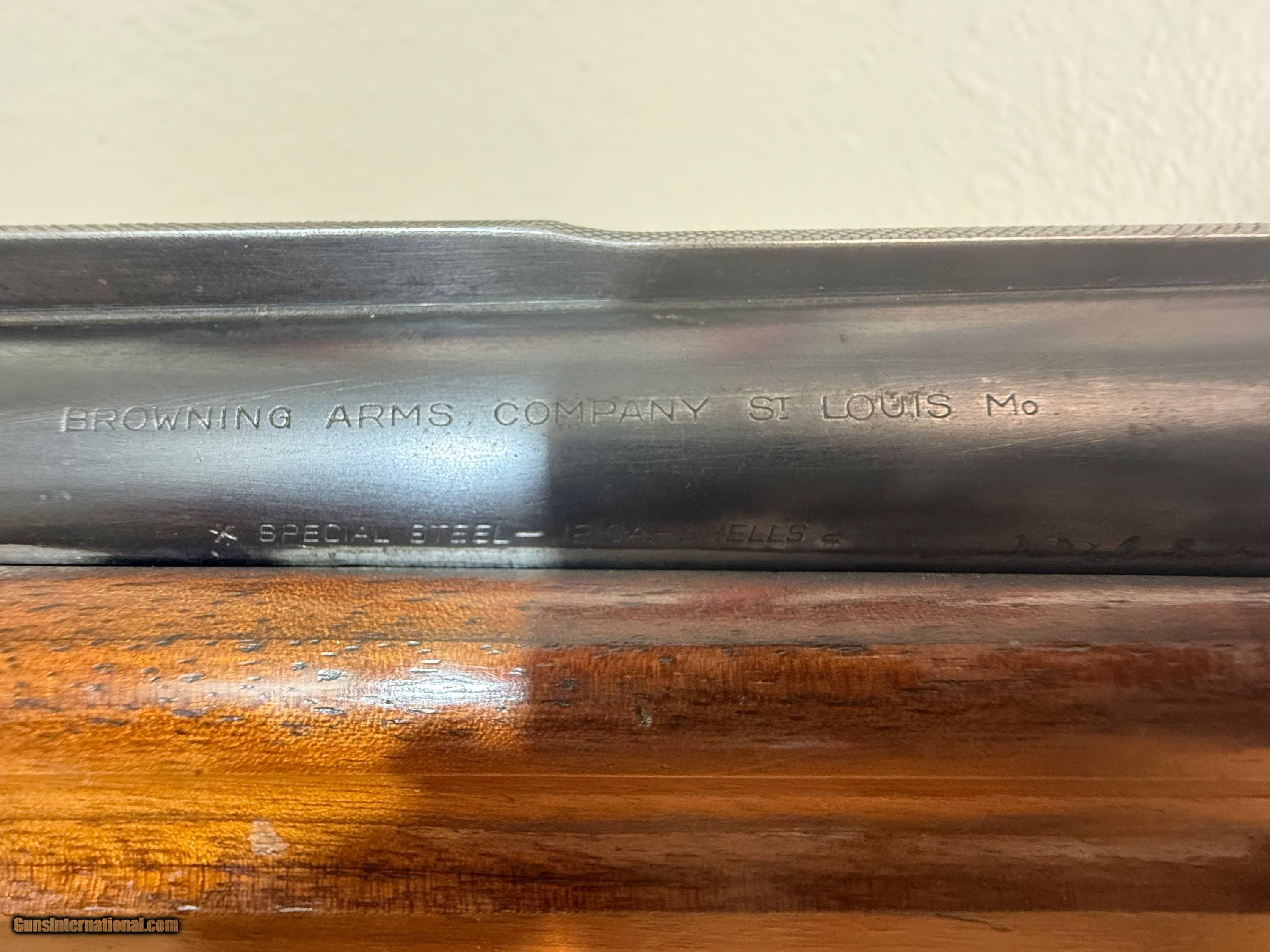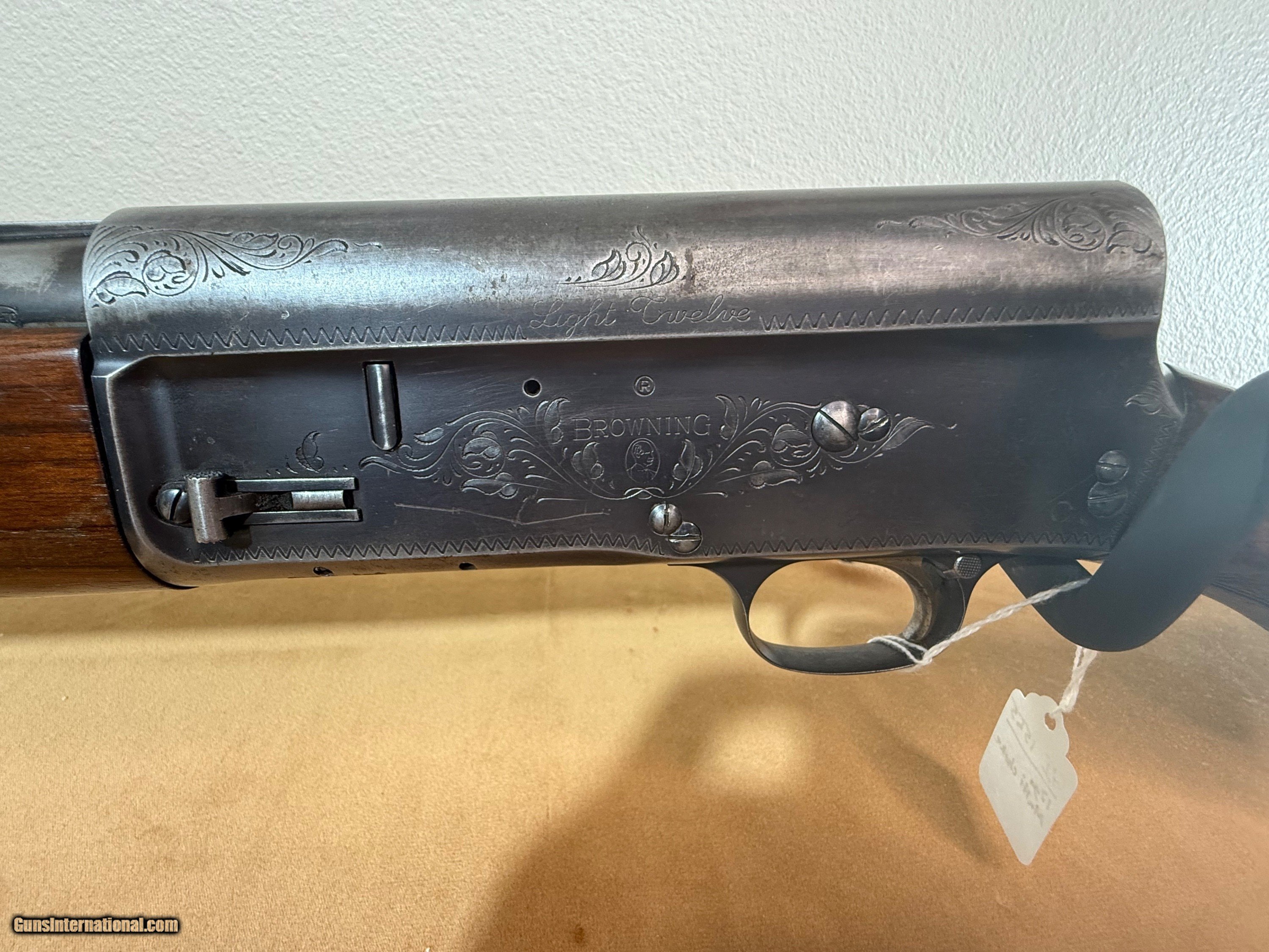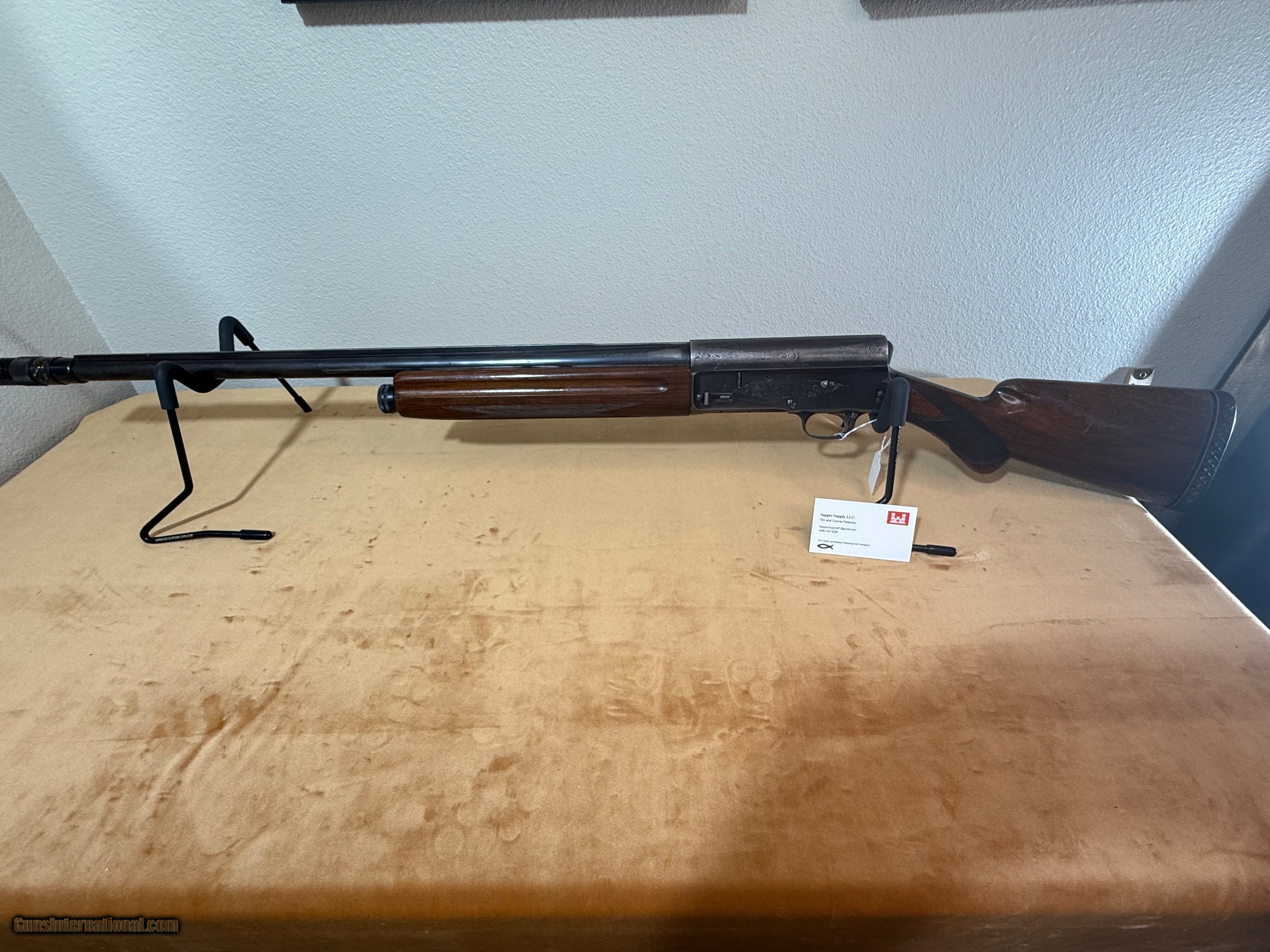 Description: Just a good, old, solid FN Belgian Browning Auto-5 in hunting condition with no cracks or chips in the stock or forend. This Browning A5 has a 28" barrel (24 1/2" to the choke), it has a multi-choke that you dial in what you want and a butt pad which is a nice addition that is usually not seen on a 12 gauge Light. This Automatic 5 is ready for the duck blind or the field. s/n - G 72953