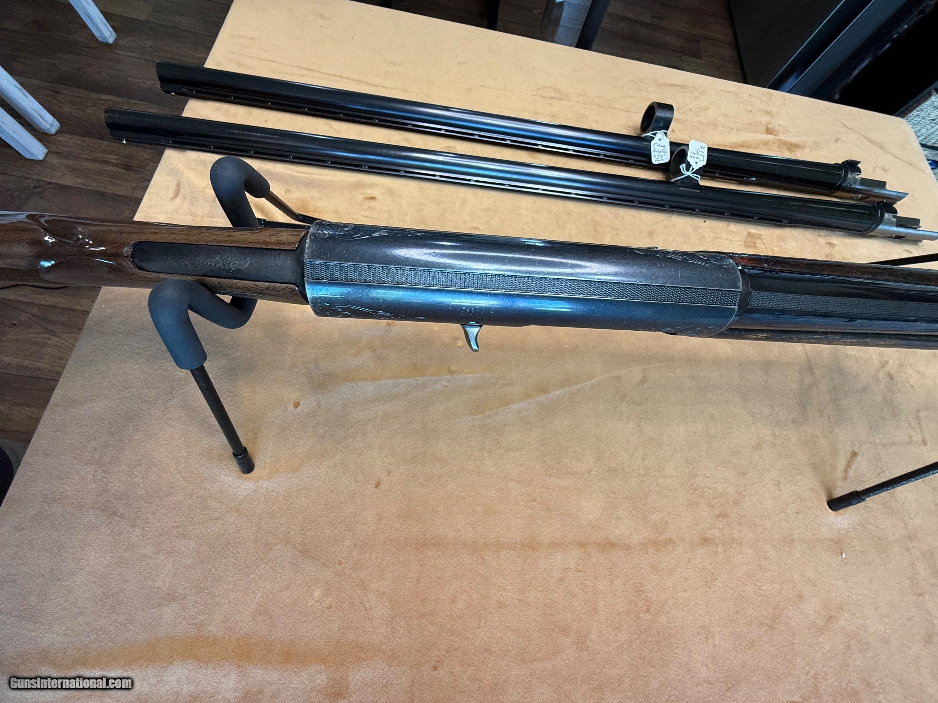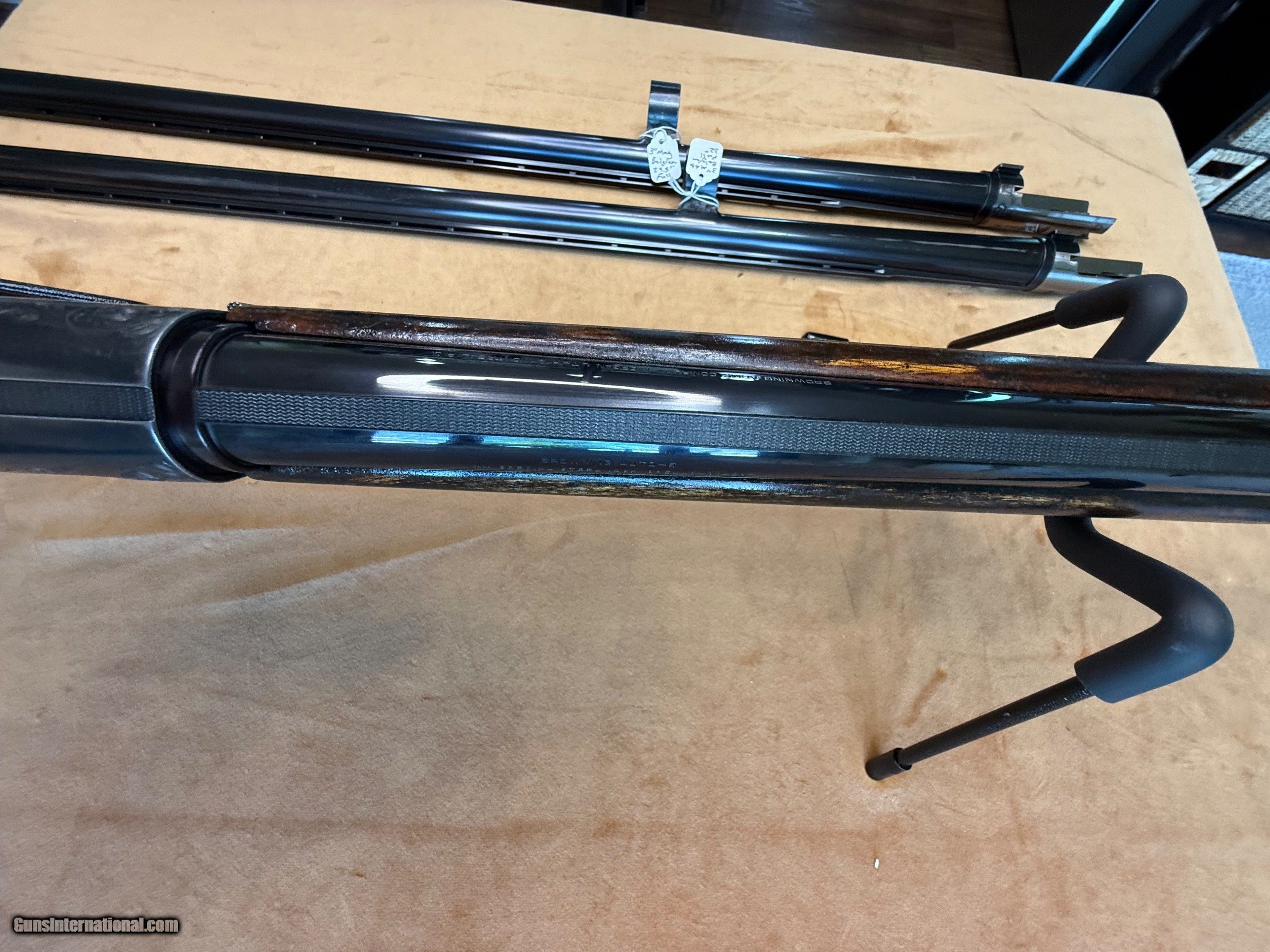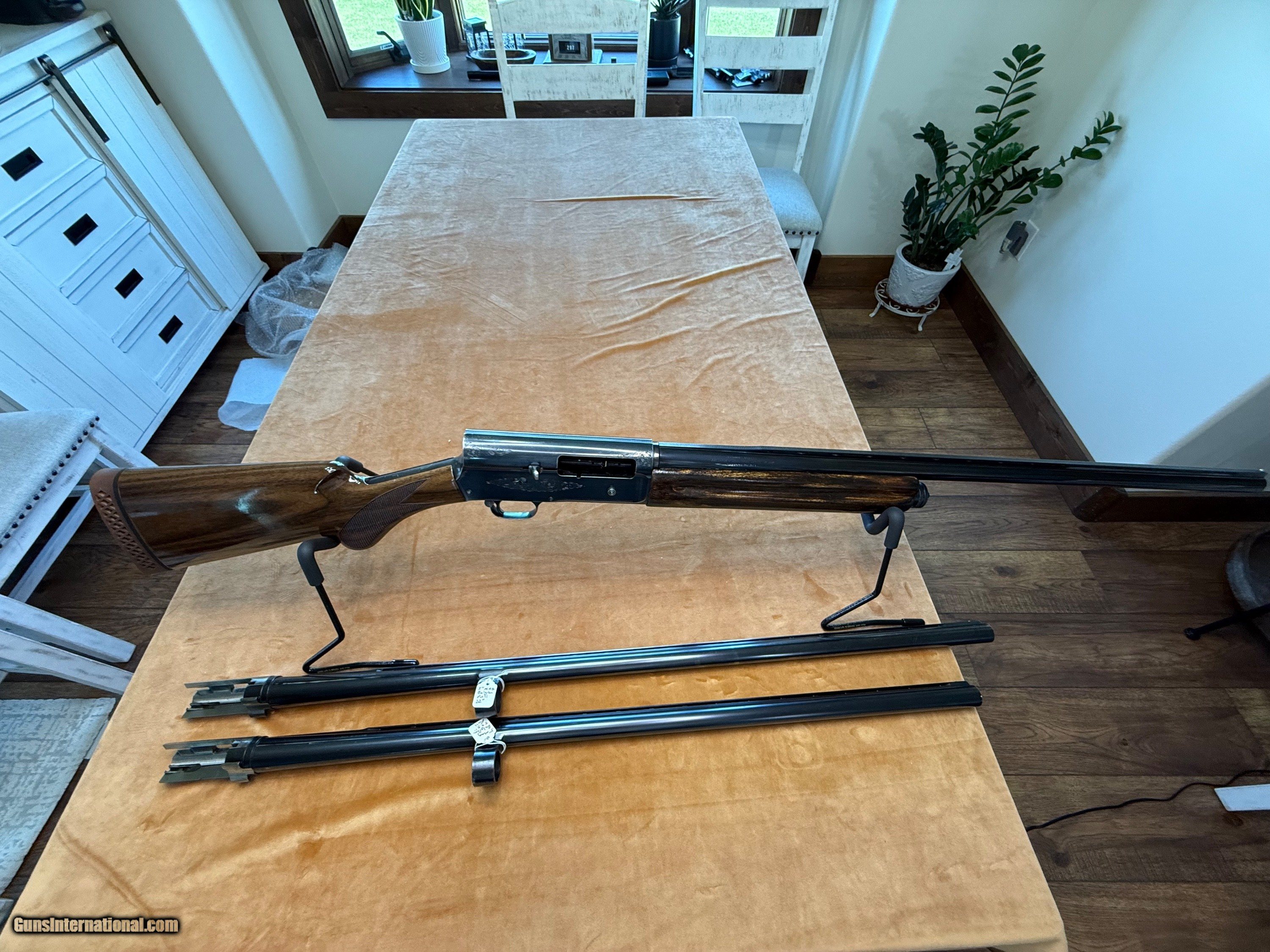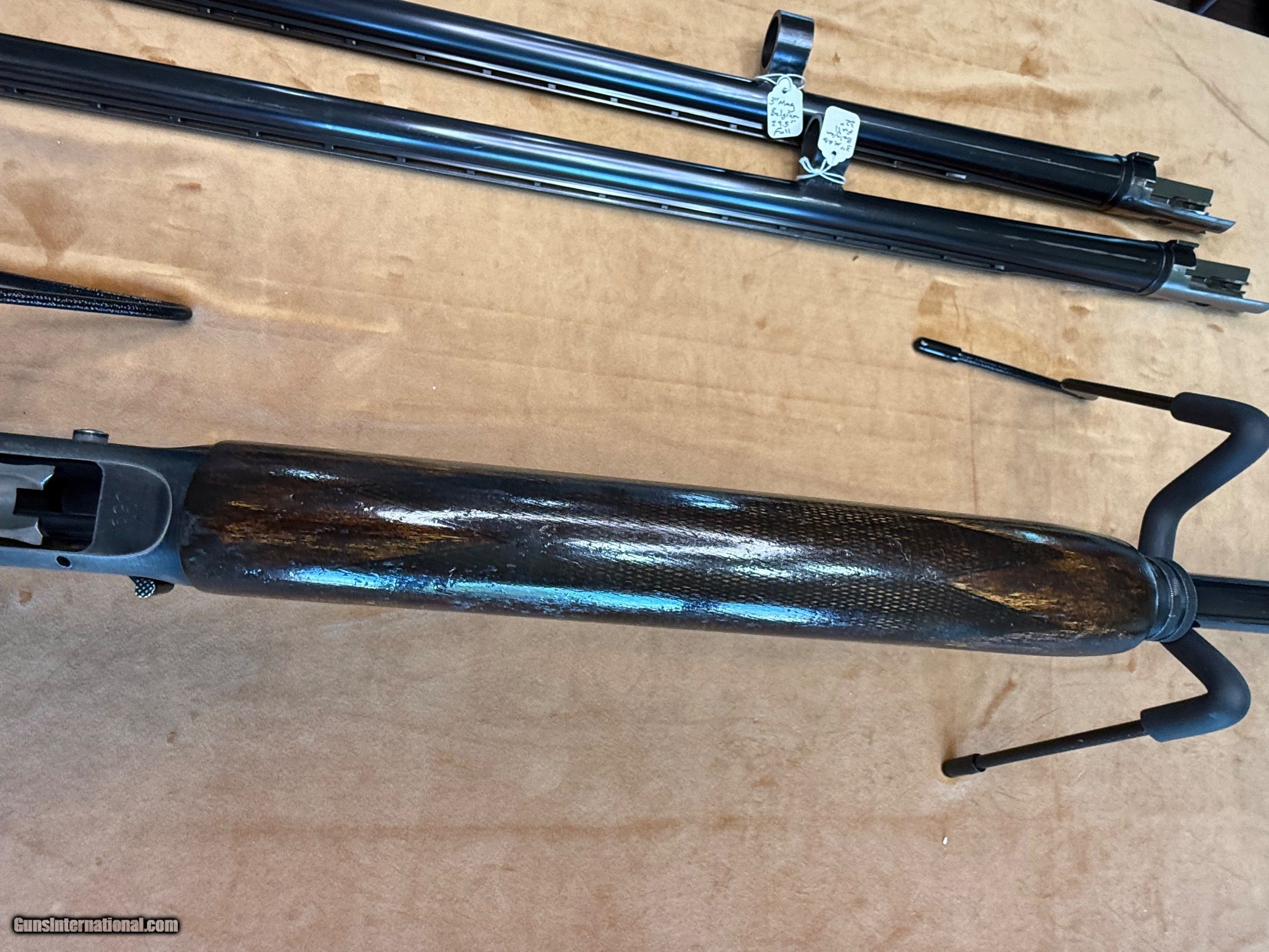 Description: Nice FN Belgian Browning Auto 5 Mag 12 gauge. No Cracks or chips in wood. You choose the Barrel: Attached in the pics is a Miroku Japan 28” Vent rib barrel. You can also choose a Belgian Vent Rib 30” or 32” barrel as seen in the pics. Price is $950 as pictured with the Jap barrel or subtract $100 if you want to replace that barrel with Belgium Full choke. If you want the Jap MOD and also a Belgian Full choke then the price goes to $1,250. SOLD Curio/Relic: Yes Shotgun Gauge: 12 Gauge |