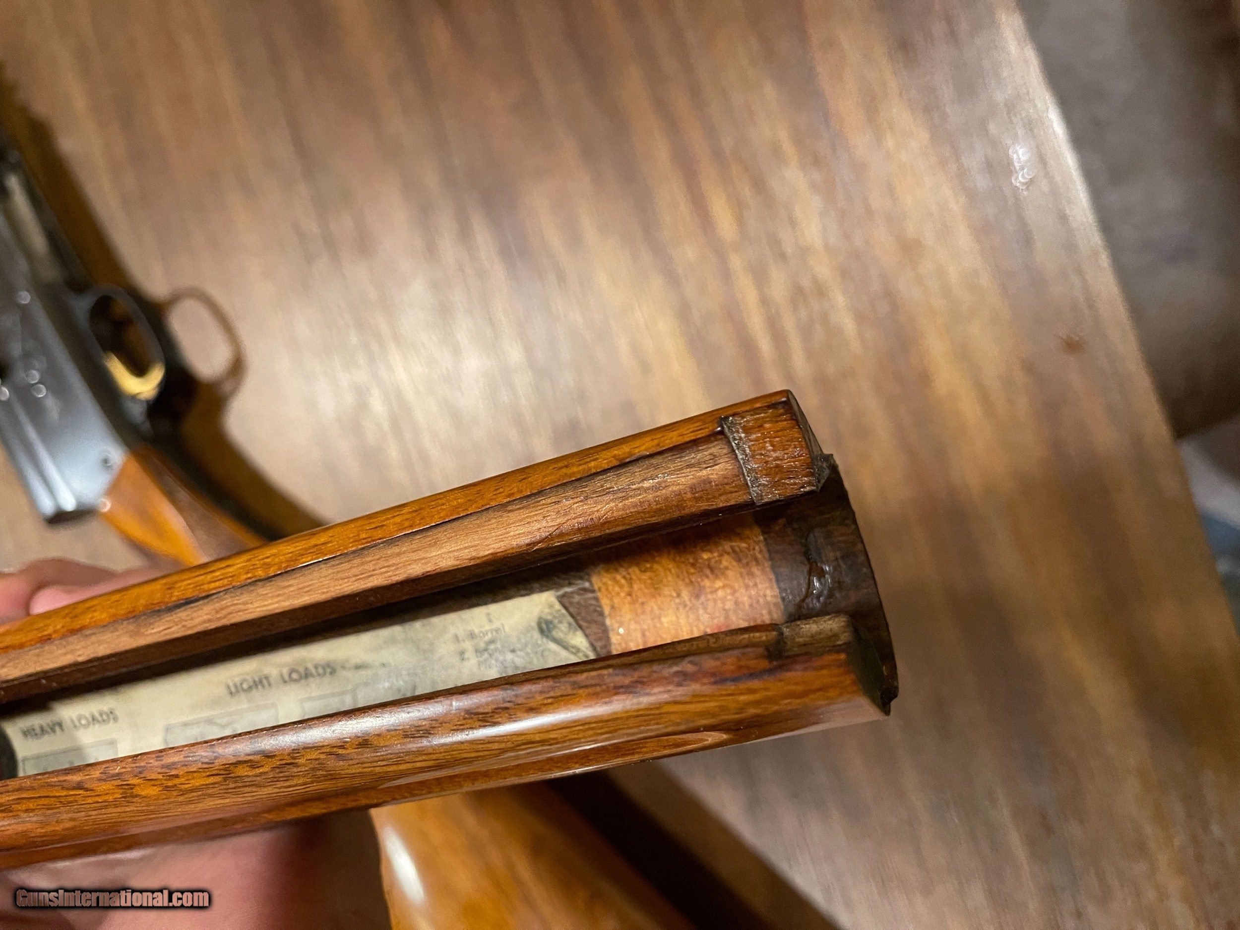 Description: 27.5" barrel, very clean, all original. No wear in bluing and wood is also in very good condition. There is a imperfection in forend. I'm not sure if it's the grain or an old repair. I believe it's a 1961 model. Serial is 3z 61xxx Barrel is stamped with one star for choke. $40 insured shipping SOLD Shotgun Gauge: 20 Gauge |