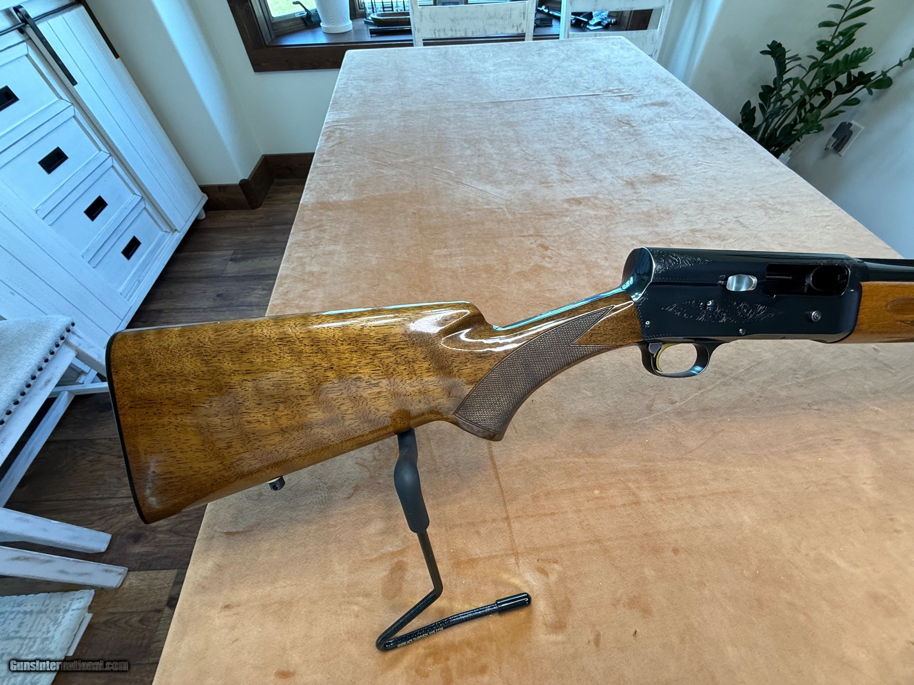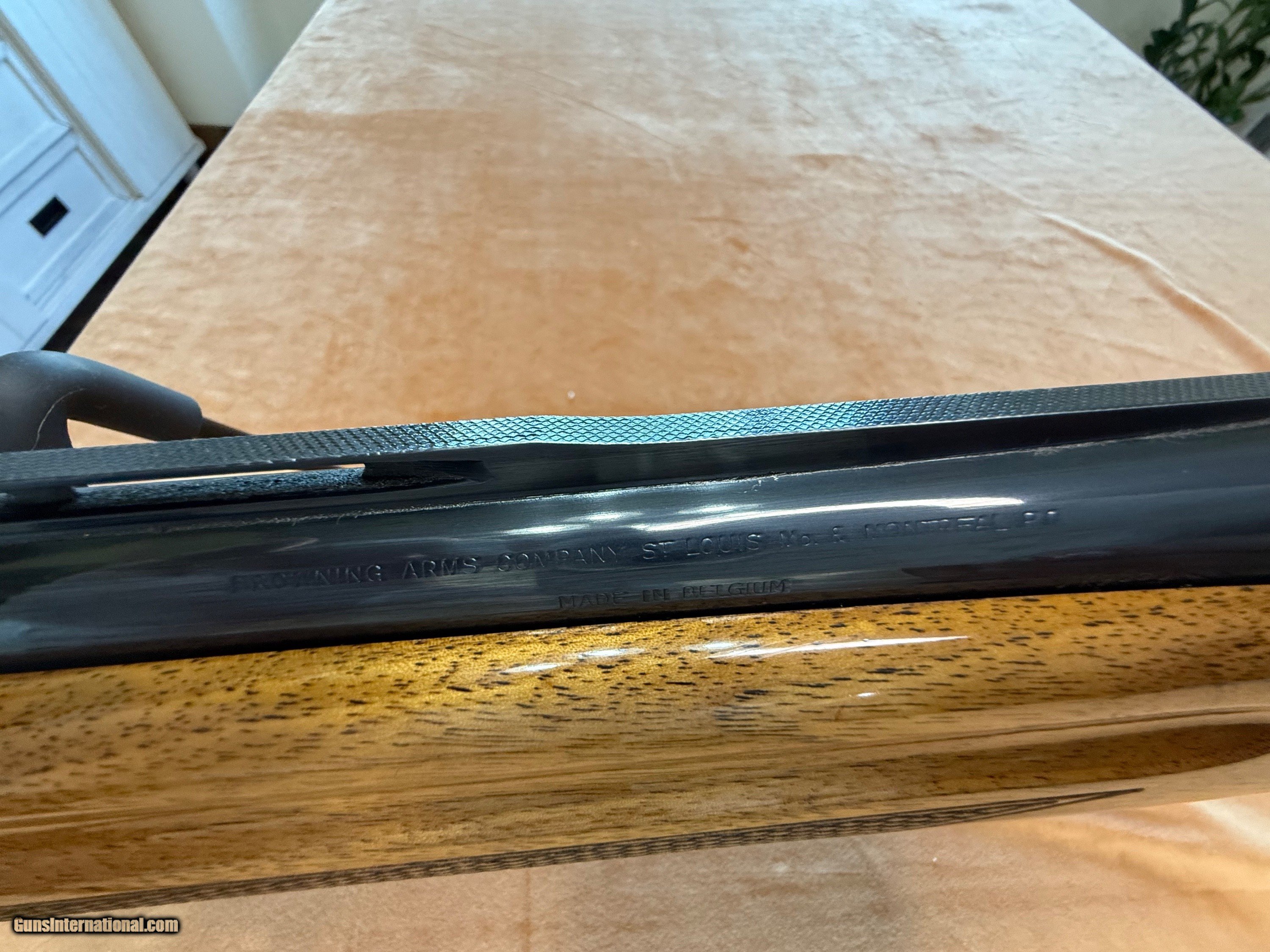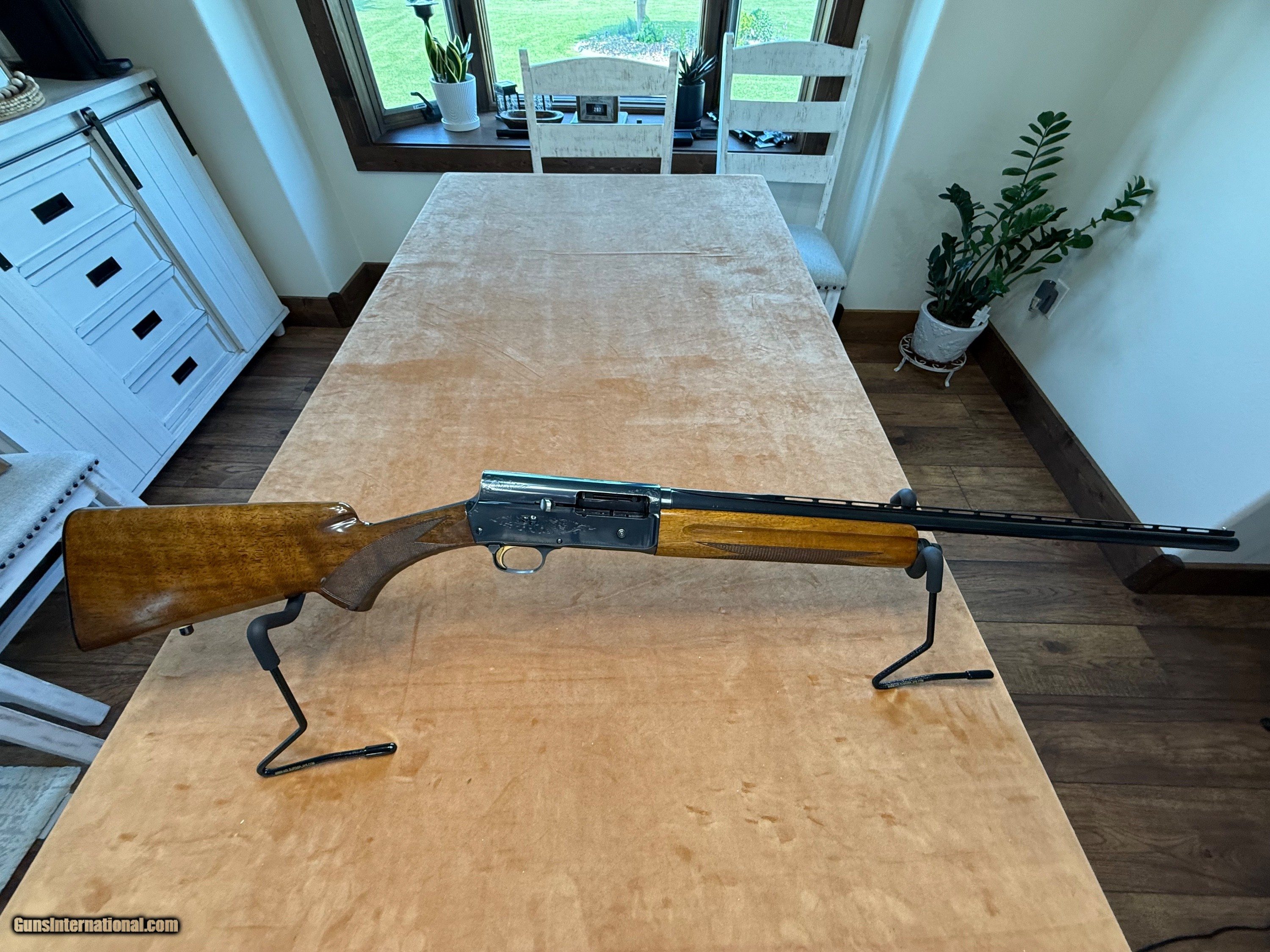Description: Truly exceptional 1969 FN Belgian Browning 20 Gauge Auto 5 Mag for 3” or 2 3/4” shells. Also exceptional is finding this Magnum version with a 26” fixed Improved Cylinder choke. Pics tell the story and this one is as nice an Automatic 5 Fabrique Nationale beauty as you will find. SOLD Curio/Relic: Yes Shotgun Gauge: 20 Gauge |