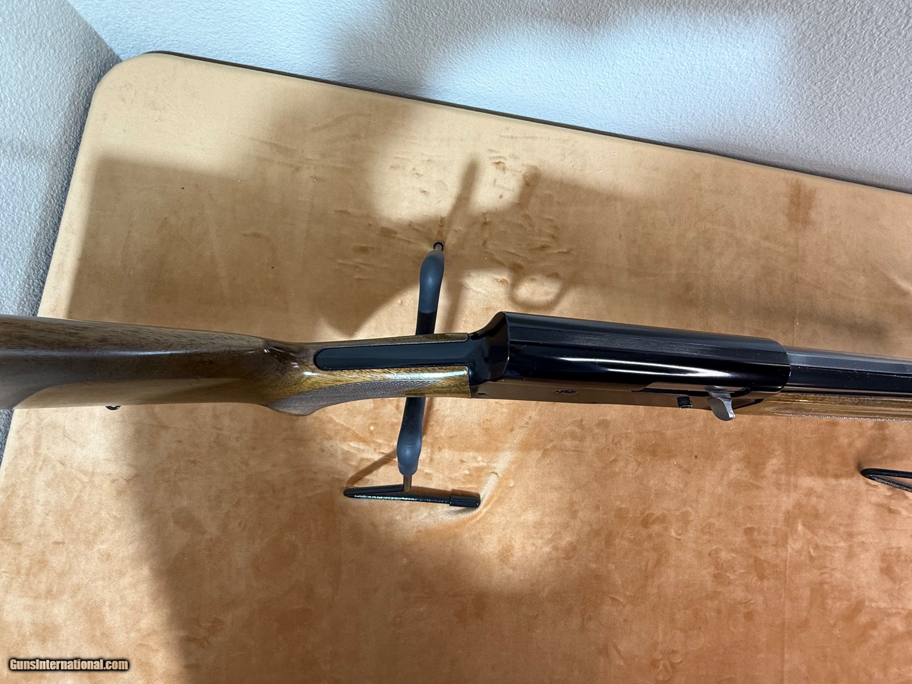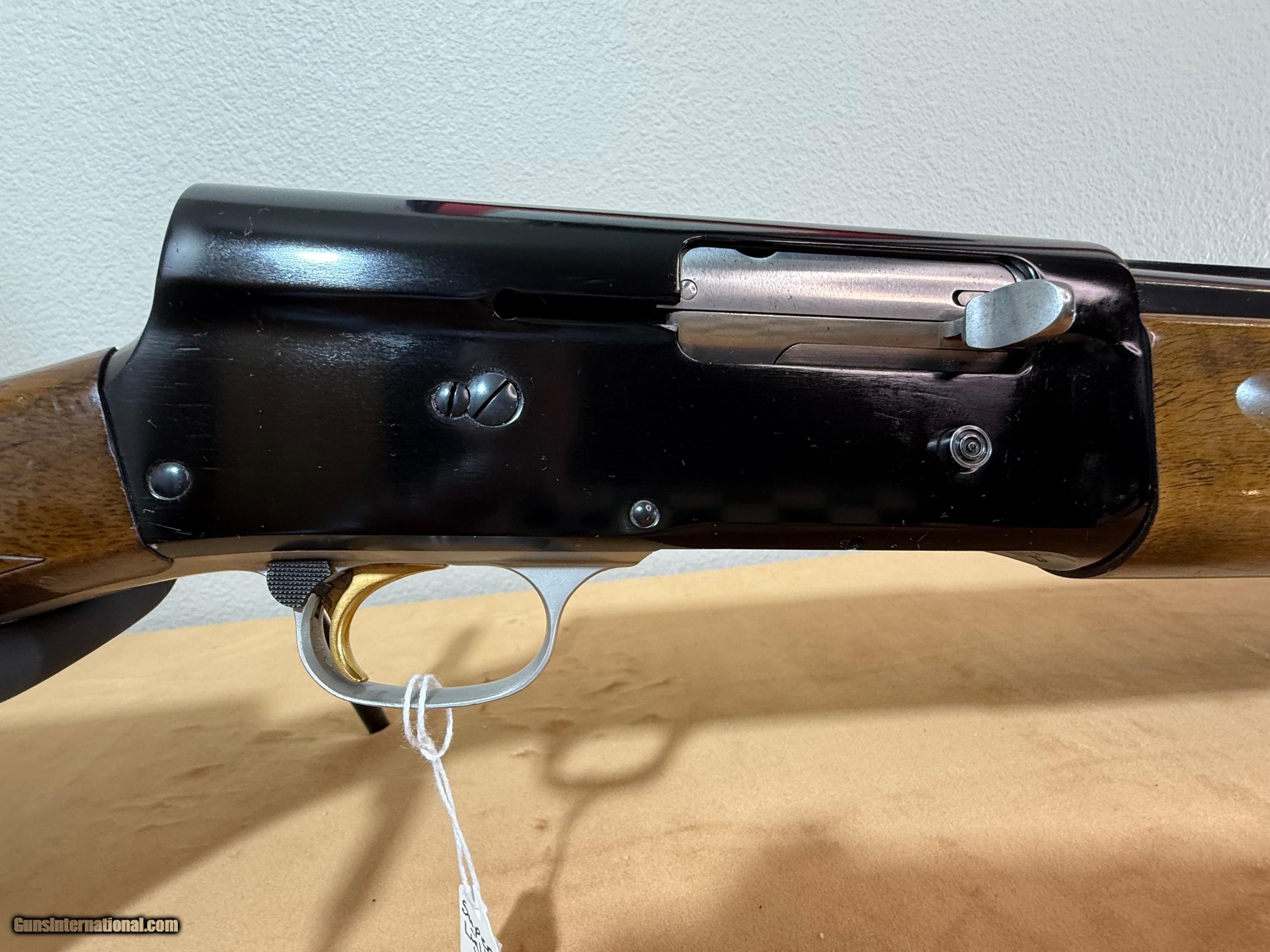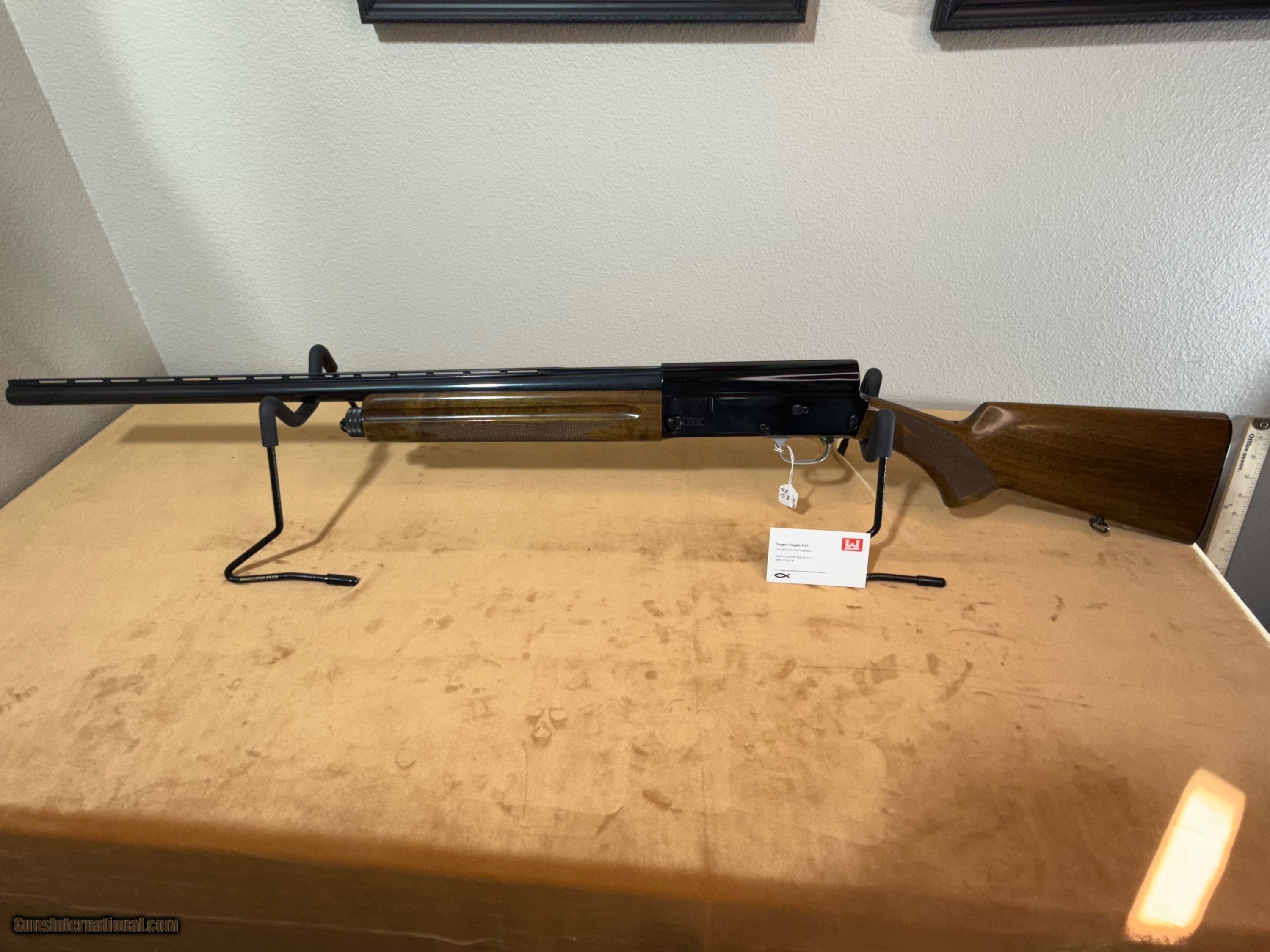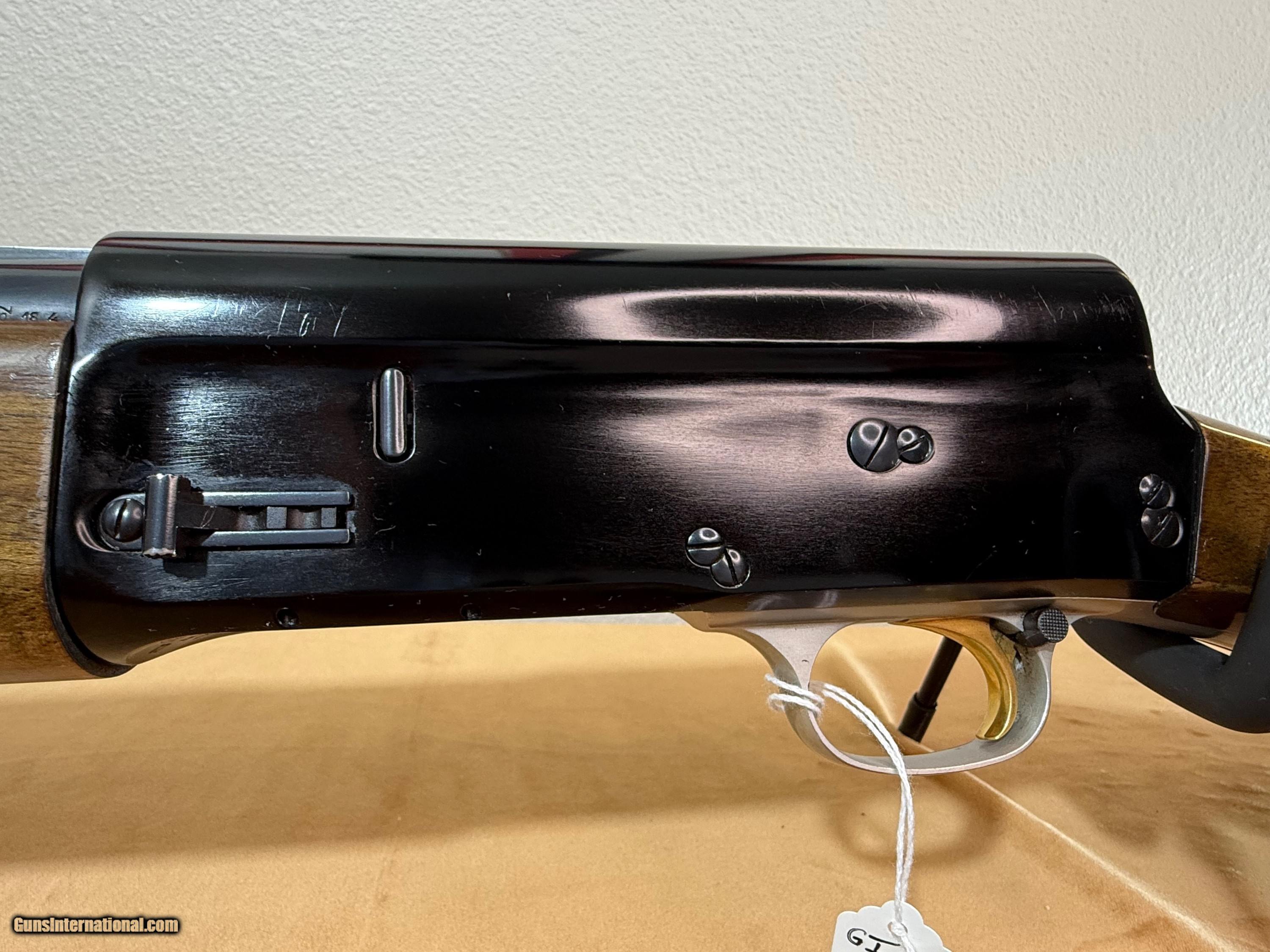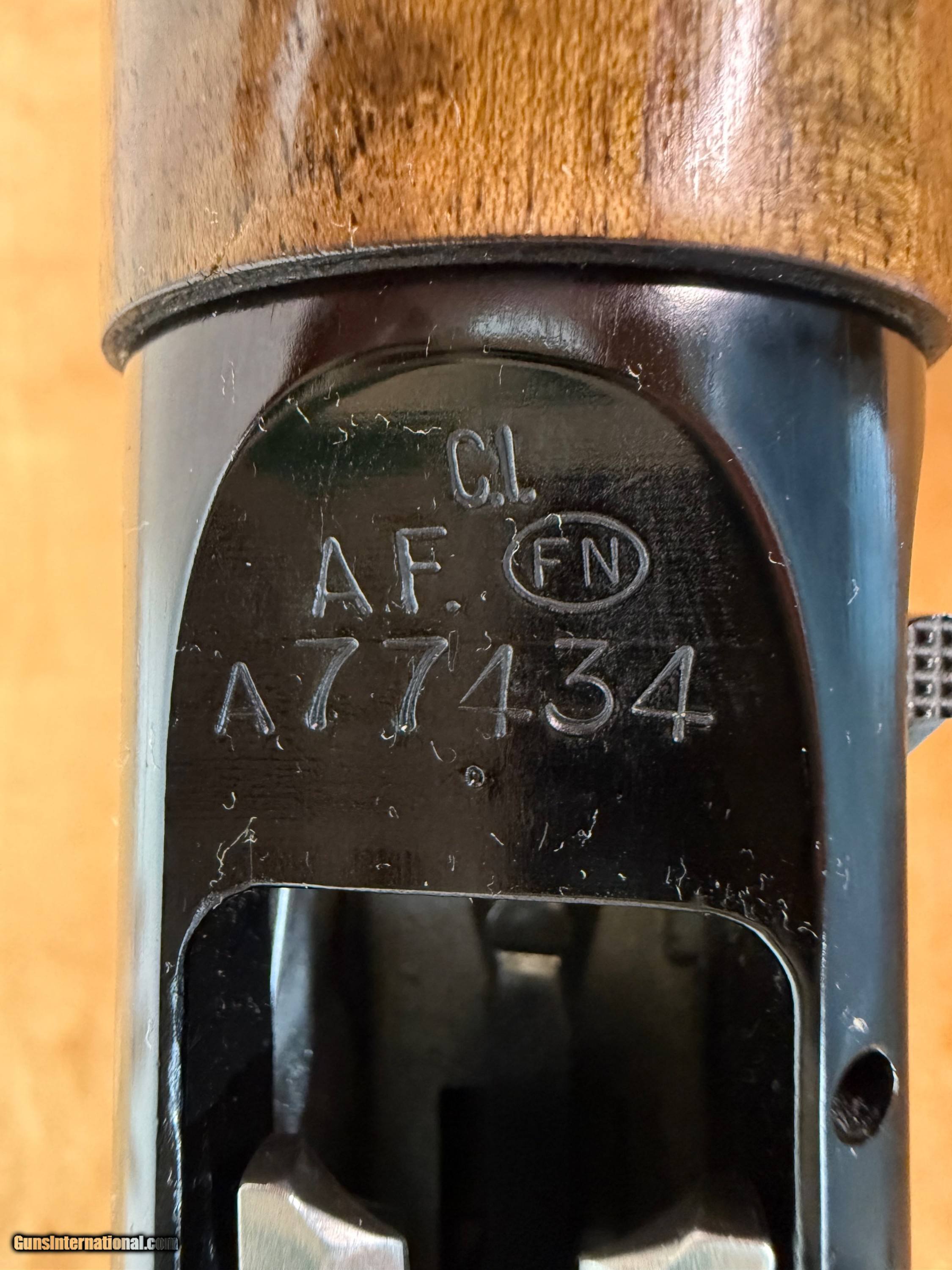 Description: It's hard to pin down the details of these unique Lightweight Auto 5 shotguns as they were not sold in the United States with these markings. Here are some highlights: Offered here is a fine example of the iconic Browning Auto 5, manufactured in Belgium by FN Herstal. This is the classic 12-gauge semi-auto that set the standard for reliability and innovation for generations of sportsmen. Chambered for 2.75" shells and fitted with a 25.5" vent rib barrel choked Modified, it is as versatile as it is timeless. The lightweight alloy receiver retains 99% of its factory protective coating, while all of the original finish remains intact. It is accented with a gold trigger and silver-tone trigger guard, giving it a handsome contrast. The blued steel barrel retains 99% of its original high luster blue and presents beautifully. Mechanically, the gun remains in excellent condition with a smooth cycling action, a crisp trigger, and a clear bore. The walnut stock and forend show minimal handling marks typical of use, but the checkering remains strong and defined. It still wears its FN/Browning buttplate, completing the classic look. At just 6 lbs 13 oz, the gun is light, quick, and would be a pleasure to carry afield. This is what's known as a World Market or European Market FN Belgium Browning Automatic 5. Since it was marketed overseas and is either a Lightweight or Super Lightweight, it has nothing at all on the receiver. The only word in English is "CROME" on the barrel, instead you see: FABRIQUE NATIONALE D' ARMS DE GUIRRE HERSTAL BELGIQUE. ACIER SPECIAL rather than SPECIAL STEEL appears on the ventilated rib barrel. Every Automatic 5 lover should have at least one of these babies just because of their uniqueness. Absolutely beautiful wood and bluing on this Auto 5 and VERY little wear on the gold trigger testifying to the limited use this lovely girl had. These unique Auto-5s just don't come along very often so you have a rare opportunity here to make it yours... s/n - CL-AF-FN- A77434