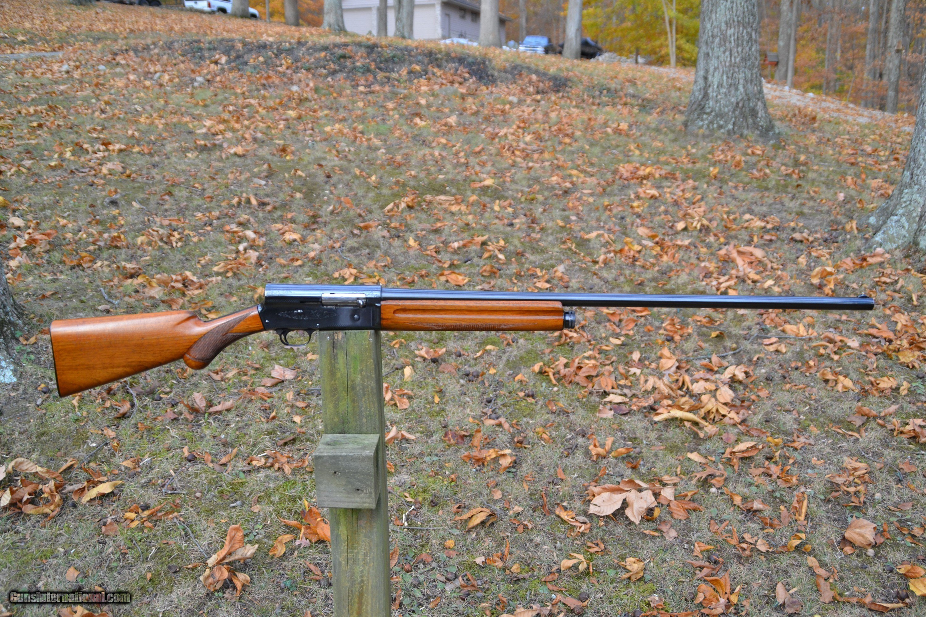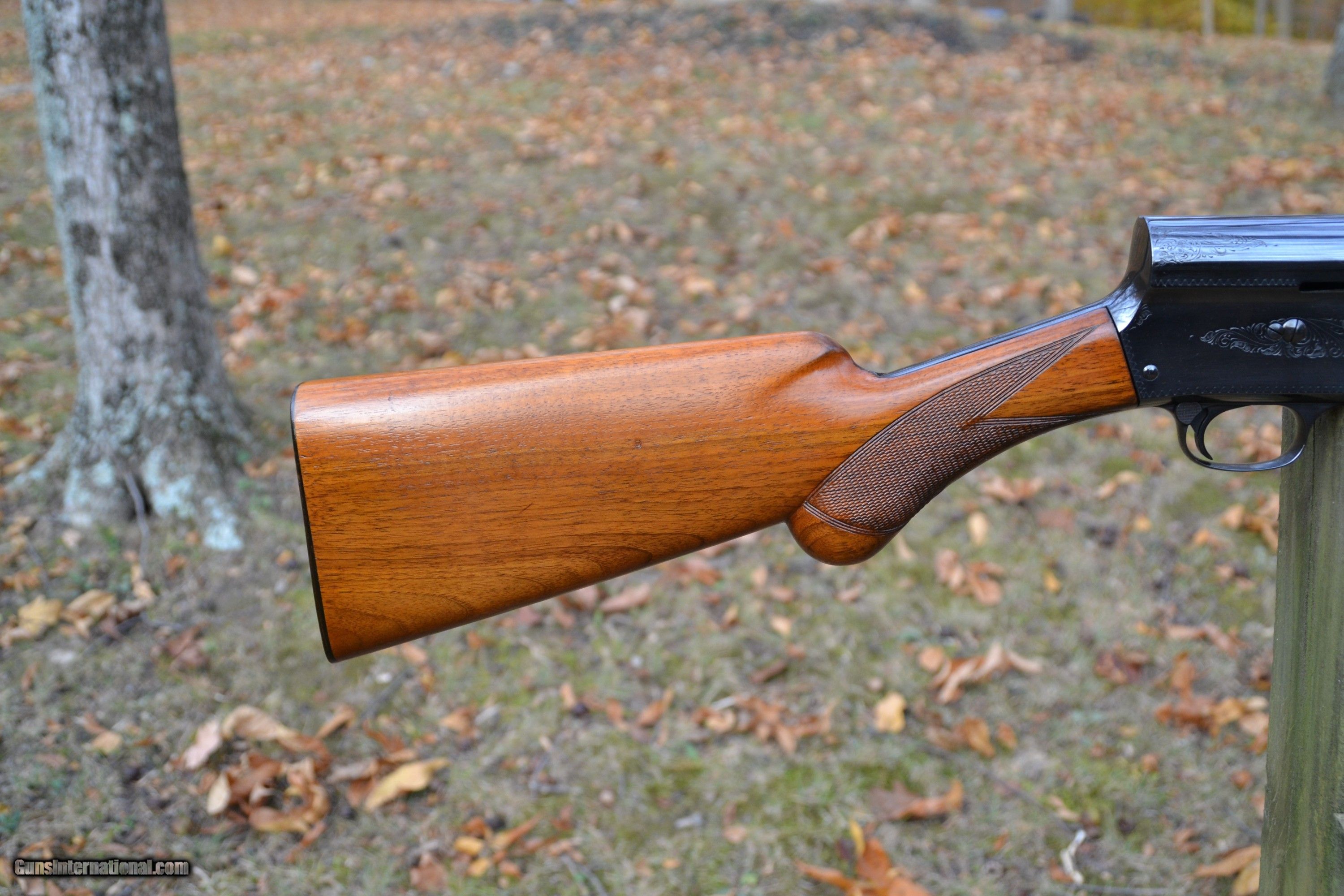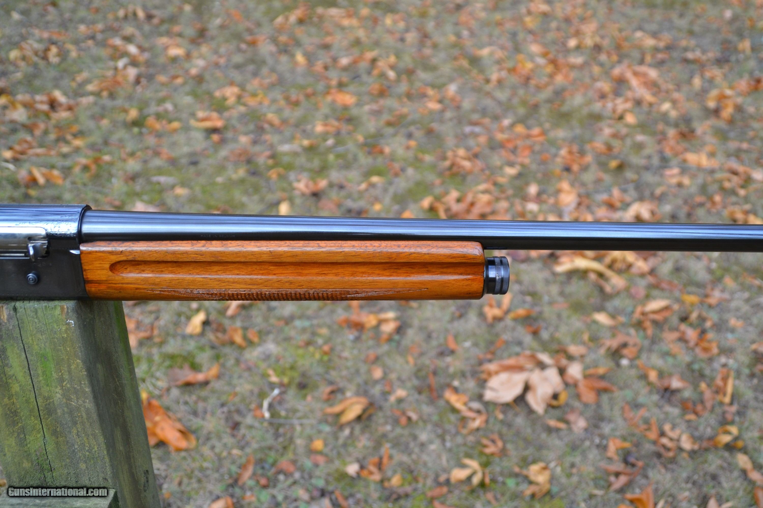 Description: This is a 1960 Belgian A-5 12 gauge stndard weight that is in fantastic shape for its age. There is some wood shrinkage as you would expect in a 64 year old shotgun, but the bluing is excellent. The gun features a 30" full choke barrel. Buyer pays insured shipping. SOLD |