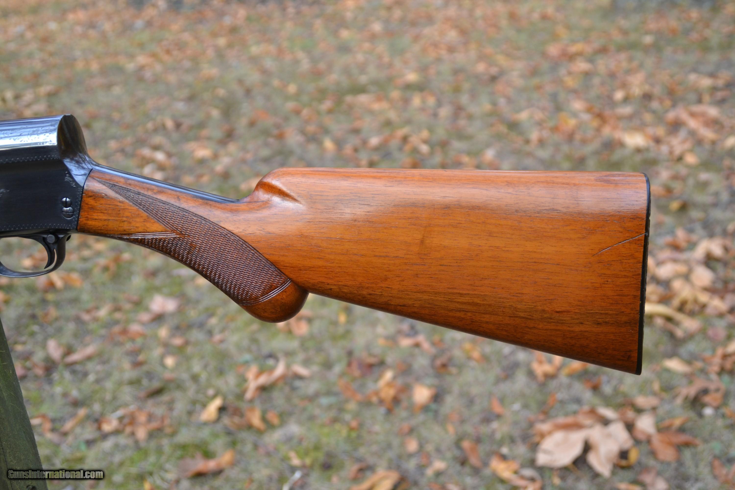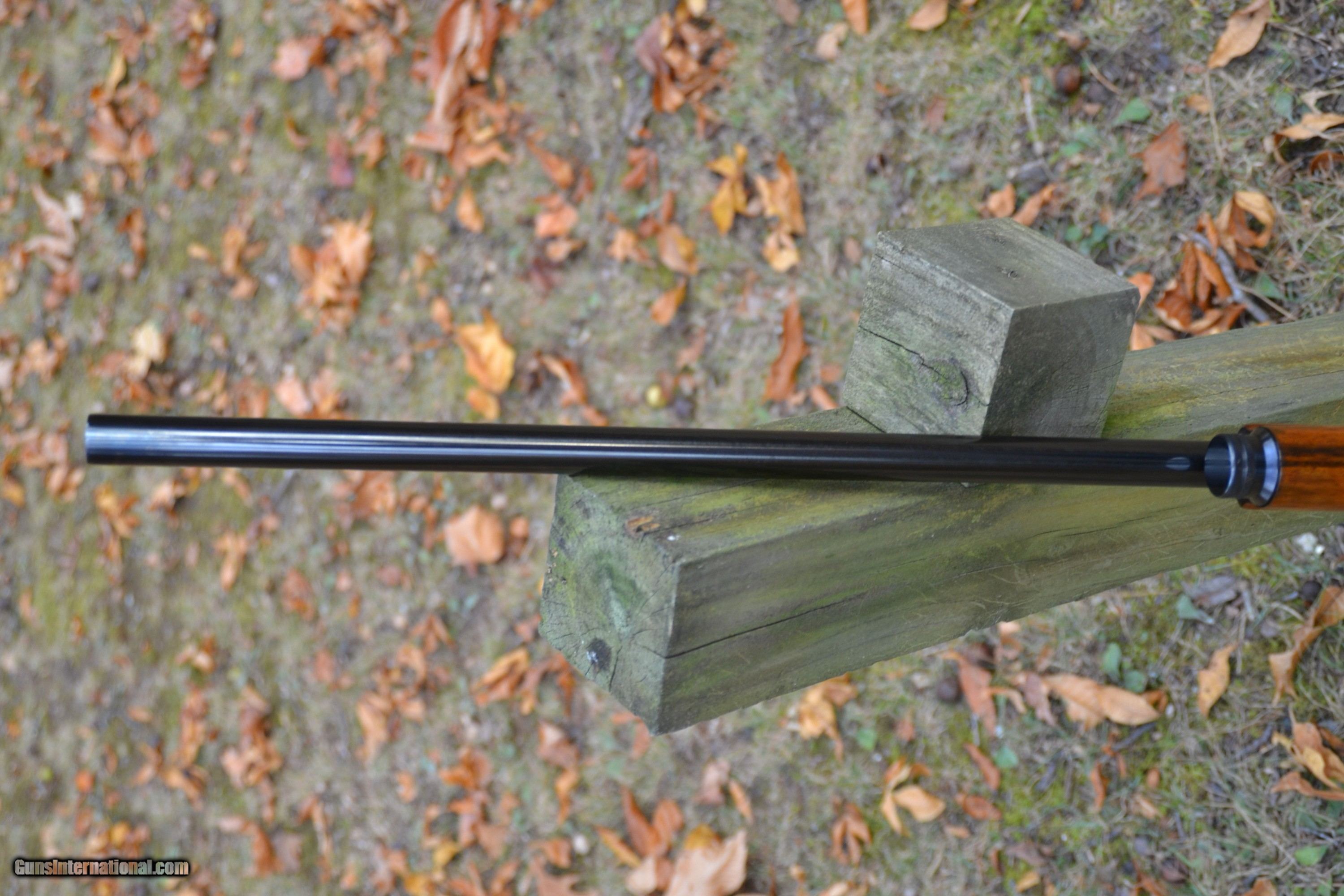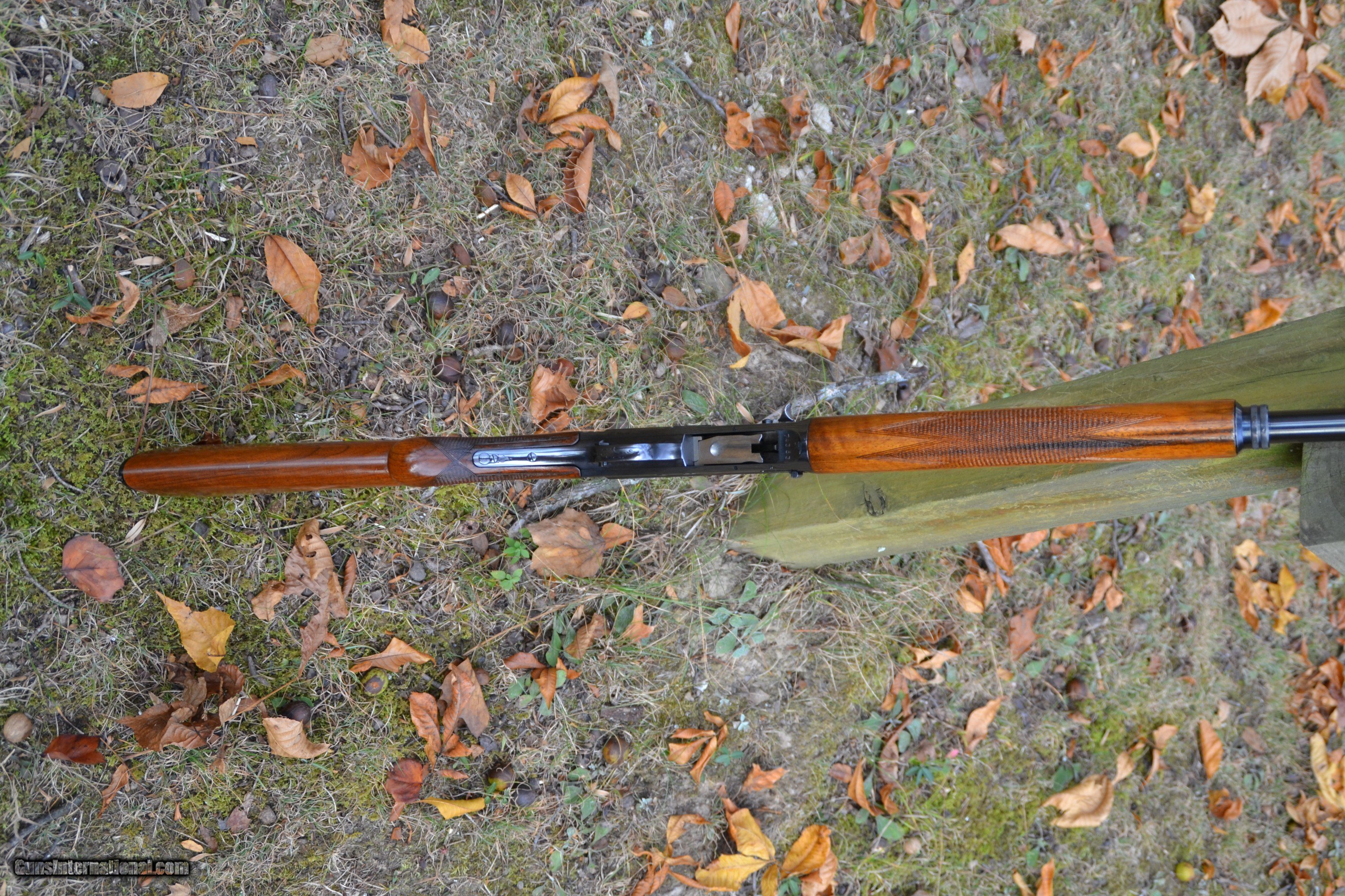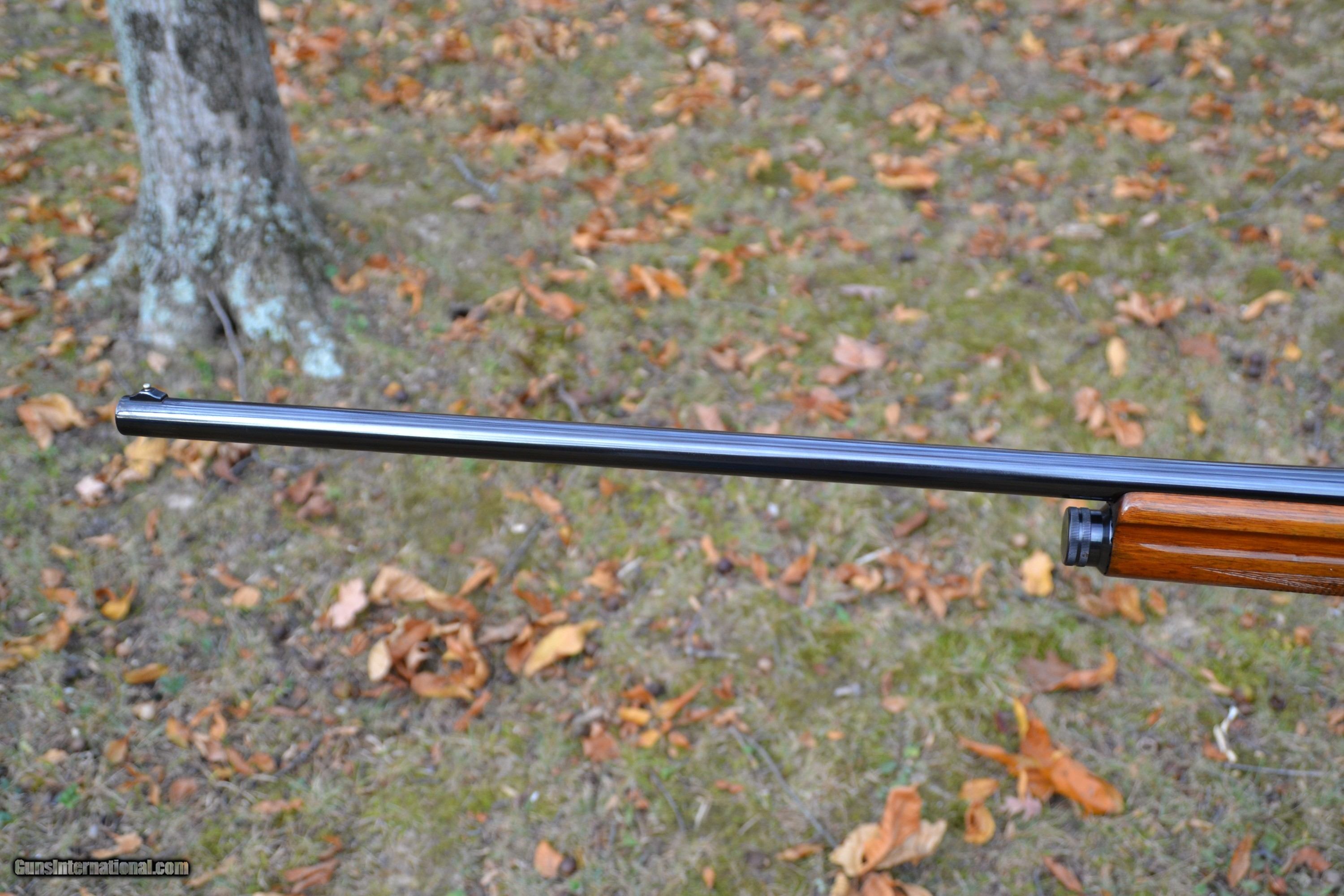 Description: This is a 1960 Belgian A-5 12 gauge stndard weight that is in fantastic shape for its age. There is some wood shrinkage as you would expect in a 64 year old shotgun, but the bluing is excellent. The gun features a 30" full choke barrel. Buyer pays insured shipping. SOLD |