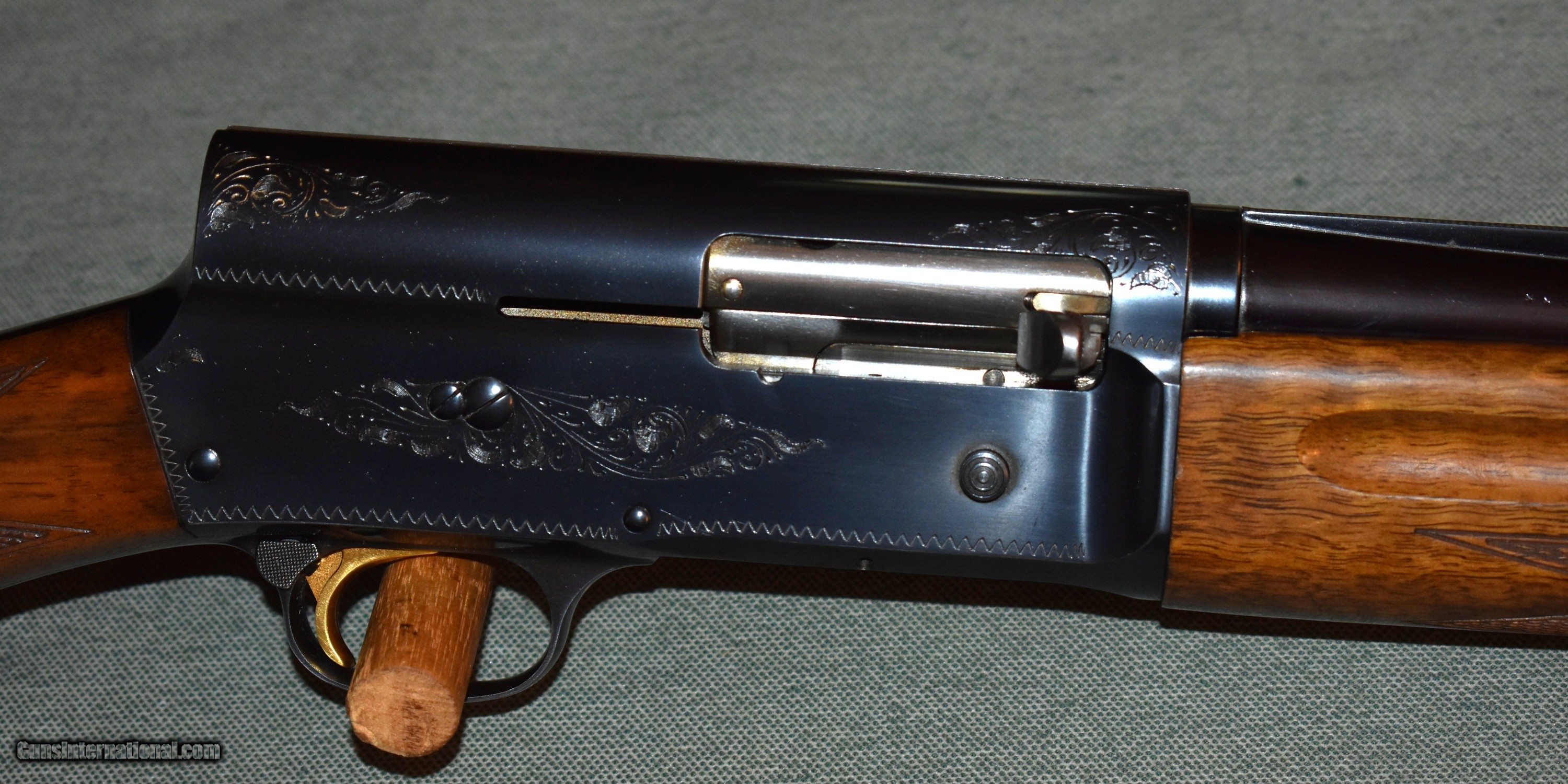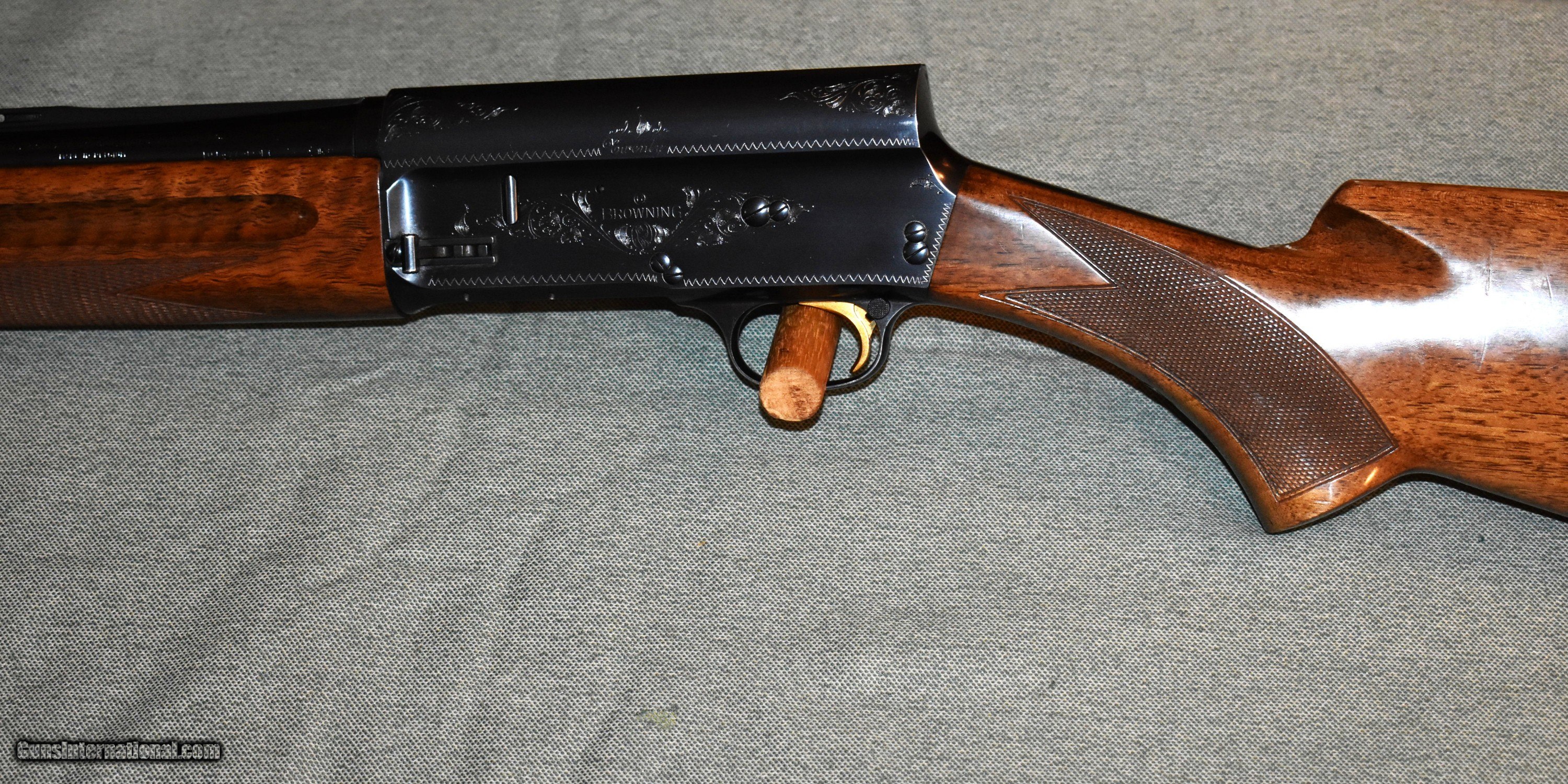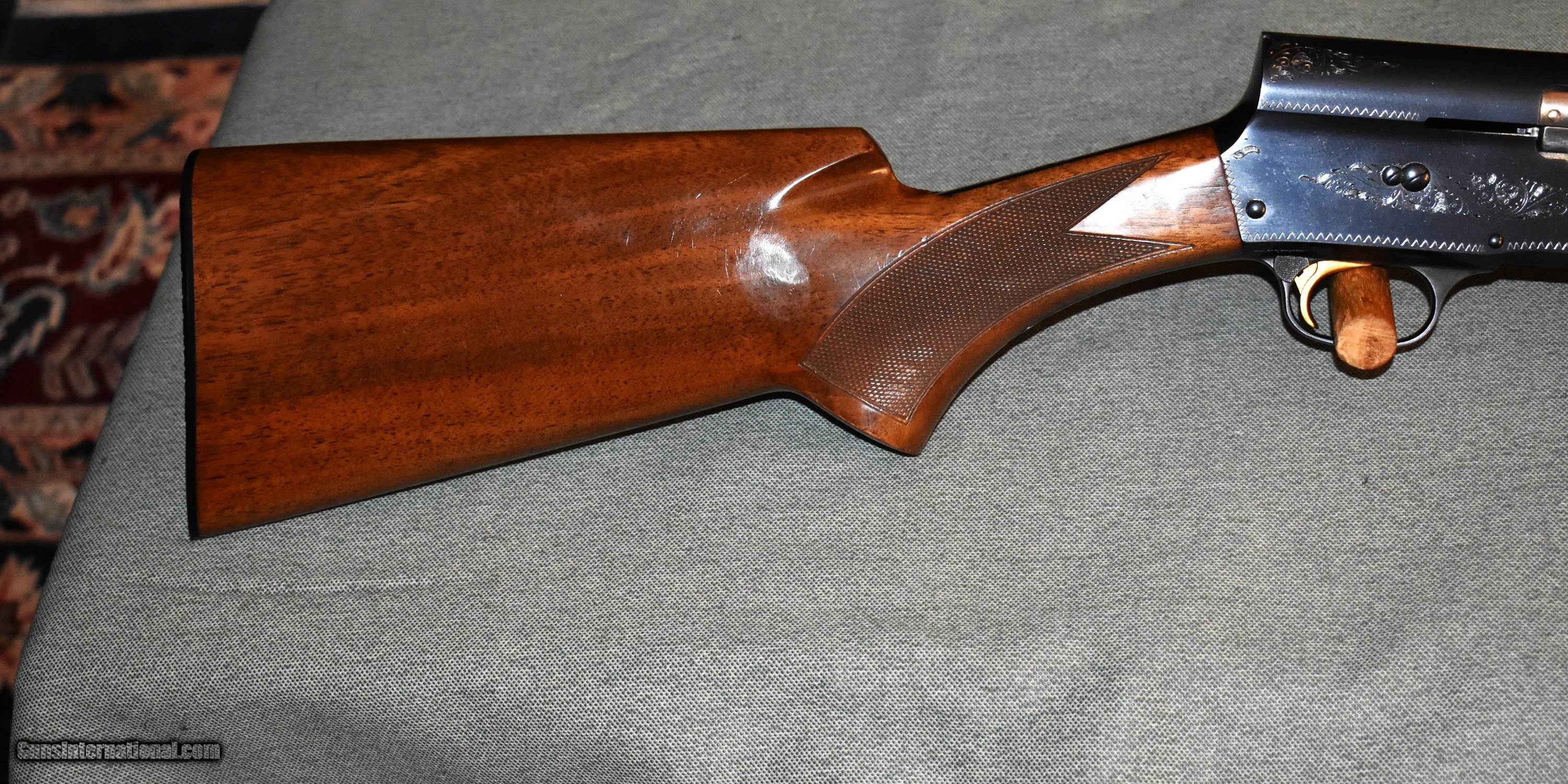 Description: Belgian Browning 20 gauge A5 built in 1972. This gun is in excellent all original condition. It retains 99% of the original blue and wood finishes. It has a 26" vent rib barrel choked improved cylinder. The stock retains the original Browning buttplate. A fine classic Belgian Browning in the hardest to find gauge. C&R eliglbe. Price includes shipping to your FFL. SOLD Curio/Relic: Yes Shotgun Gauge: 20 Gauge Manufacturer: Browning (FN) Model: A5 Twenty Serial Number: 72Z72264 Barrel Length: 26 Chambers: 23/4 Condition: excellent Metal Condition: excellent Wood Condition: excellent Bore Condition: mint Barrel Type: Browning Special Steel Action: Semi Auto Butt Pad: Factory Buttplate Rib: Ventilated Chokes: Improved cylinder |