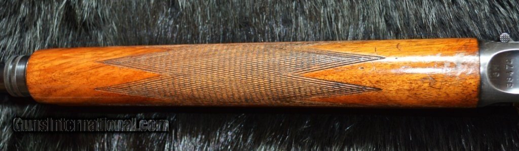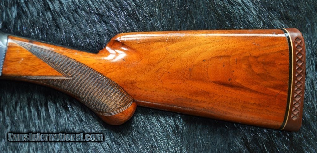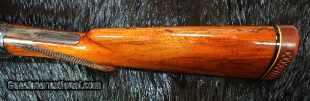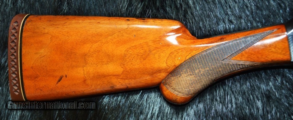Description: This is a 12 gauge Browning Auto-5 made in 1958. It has the original 28" Skeet choked vent rib barrel with a gold bead at the end. It has the typical 4 shot magazine with the magazine cutoff, a checkered pistol grip stock and forend with a Pachmayr recoil pad. The bluing is a beautiful deep rust blue. The 2-3/4" chambered bore is bright and shiny. The wood has nice color and figure and the stock and forend have no cracks, splits or gouges and is 14-1/4" to a recoil pad. Just some light handling marks. These guns were all hand engraved and hand checkered in Belgium. Curio/Relic: Yes Manufacturer: Browning Model: Auto-5 Serial Number: 8M 38472 Barrel Length: 28 Chambers: 2-3/4 Action: Recoil operated Stock Dimensions: 14-1/4 Rib: Vent rib Manufacture Date: 1958 Chokes: Skeet Price: $975.00 Buy Now Contact Seller |