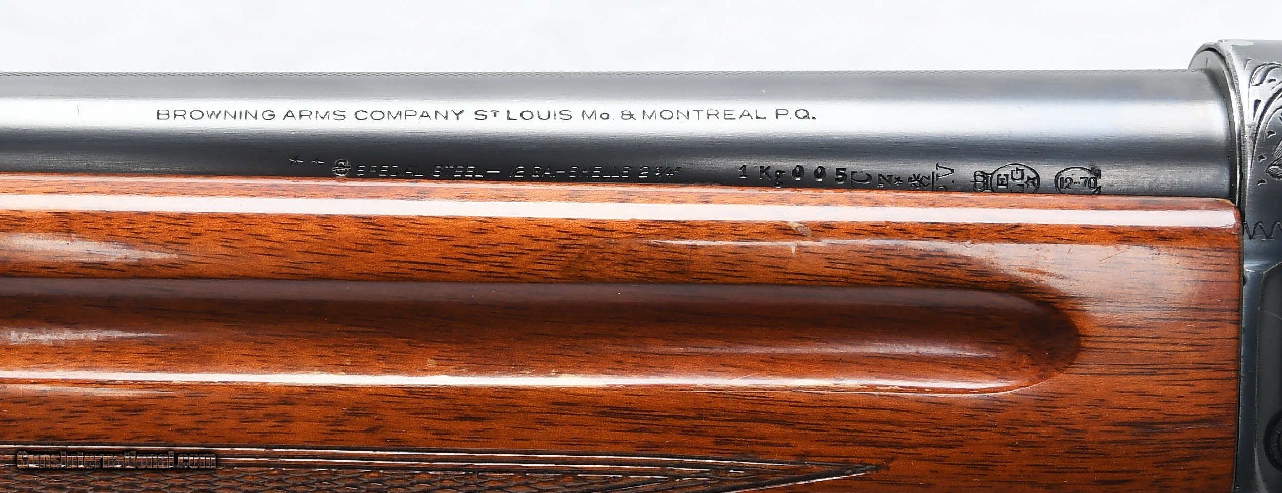 Description: Belgian Browning Auto 5 Light Twelve made in 1963. 26” plain barrel choked IC/Skeet. Nice original gun; barrel finish is 95%, frame finish is 95%, wood finish is 95%. $750.00 SN: 3G7831 SOLD |