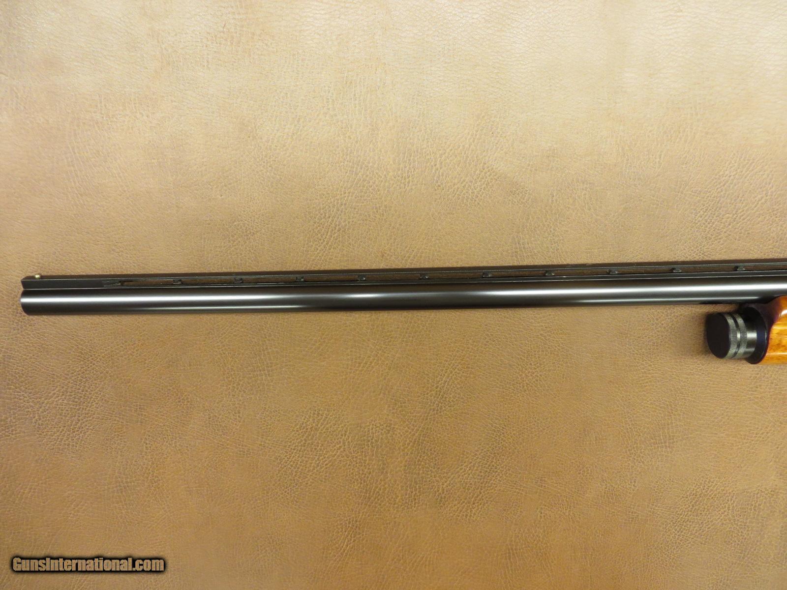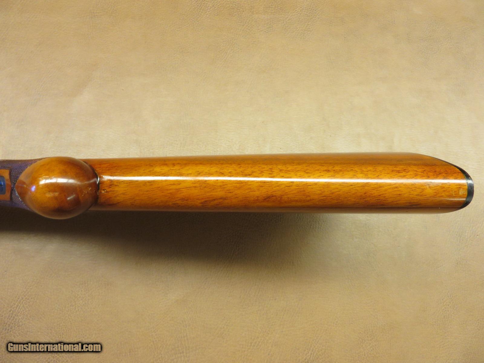 Description: 20 ga. 2 3/4 inch has 27 1/2 inch full choke vent rib barrel. Made in Belgium in 1961 serial number 1Z 46xxx. Engraved receiver with gold trigger. Checkered walnut round knob stock with original butt plate. Blue and forend finish are 99%+. The stock has a couple of safe dings so about 97% on it. SOLD |