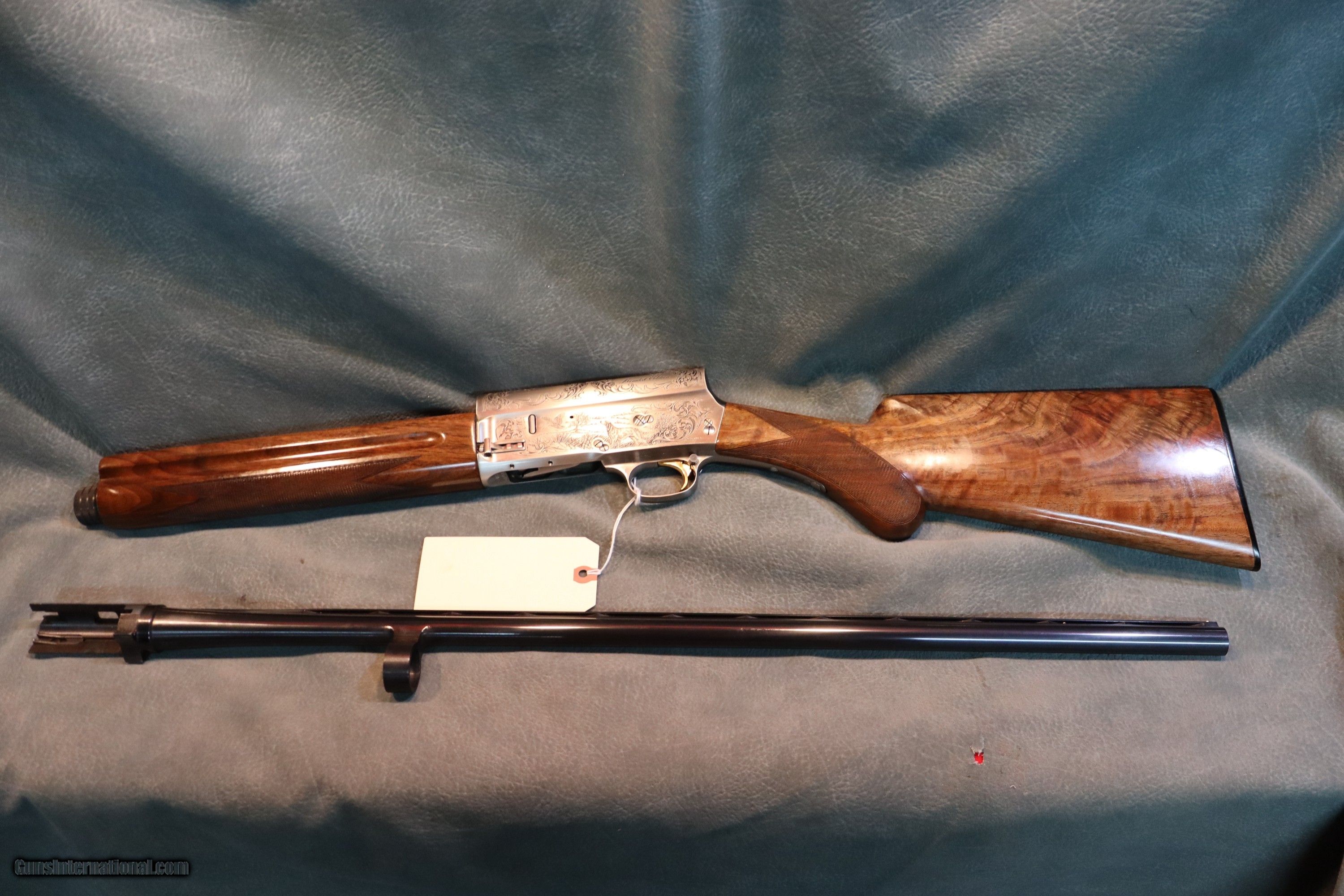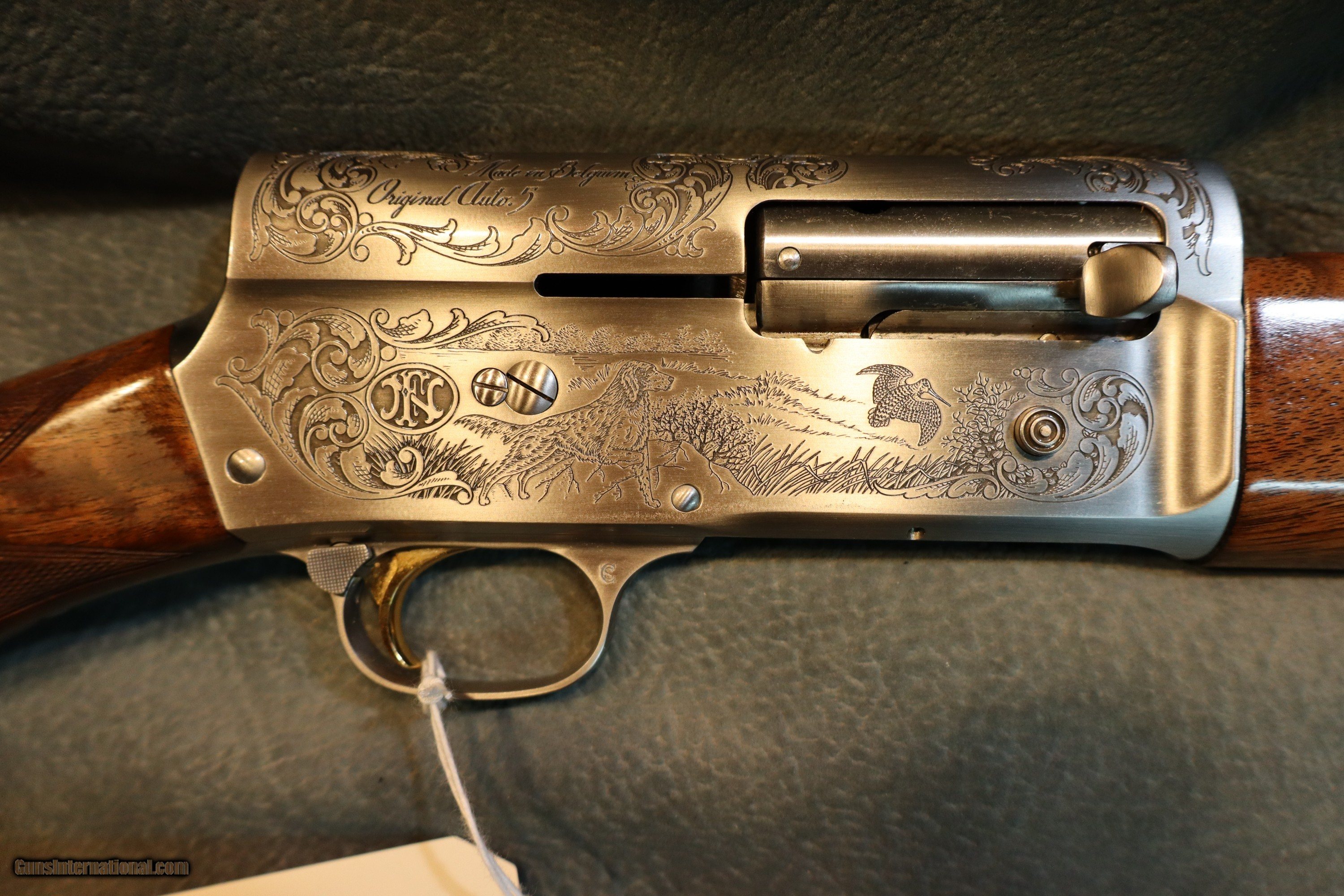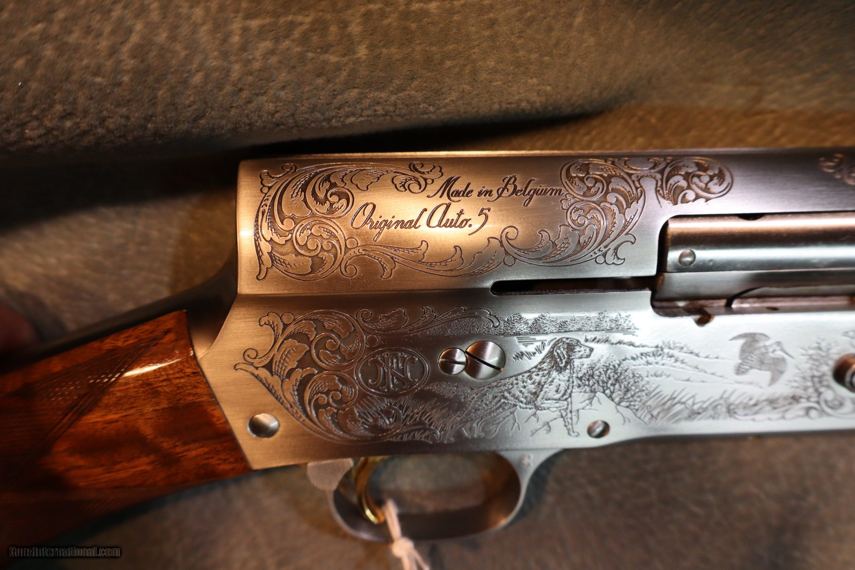 Description: Belgium Browning Auto 5 20ga Limited Edition,2 3/4" 28" IC vent rib barrel,silver engraved receiver,outstanding feather crotch round knob stock,new unfired in the original stock. SOLD |