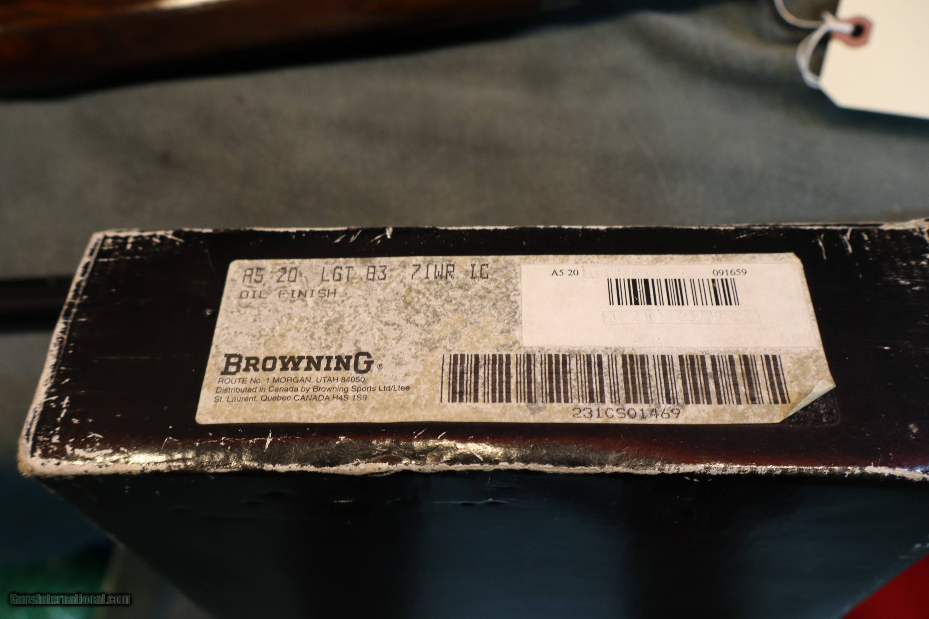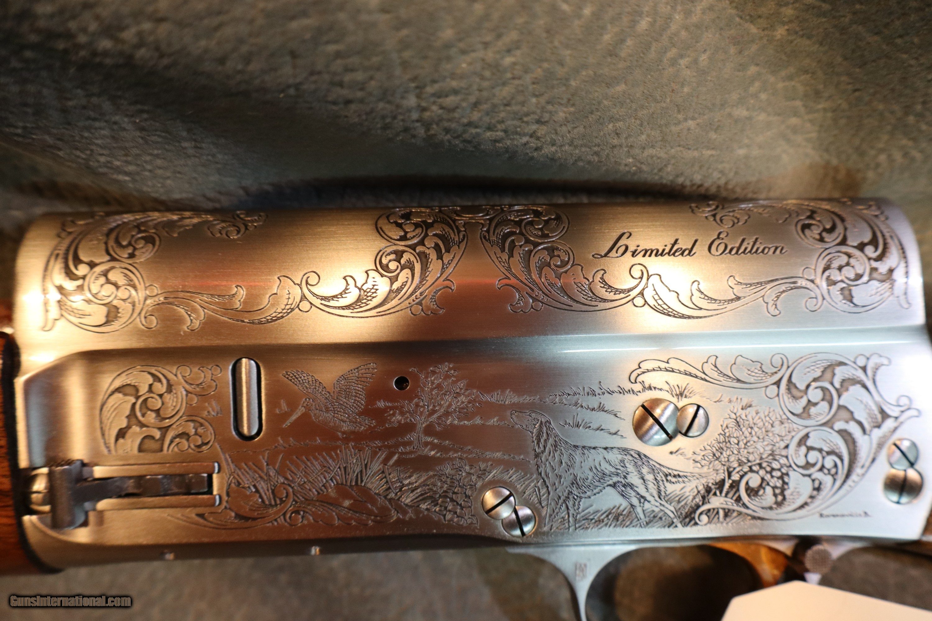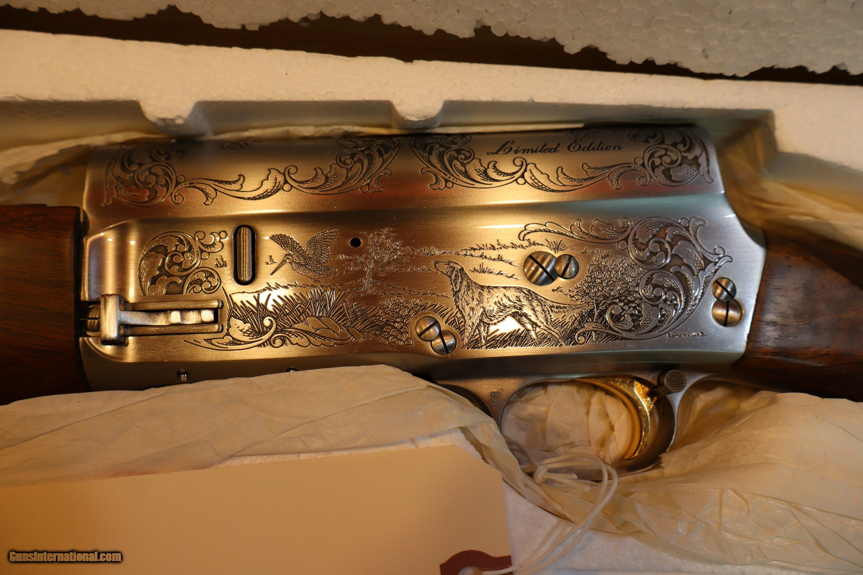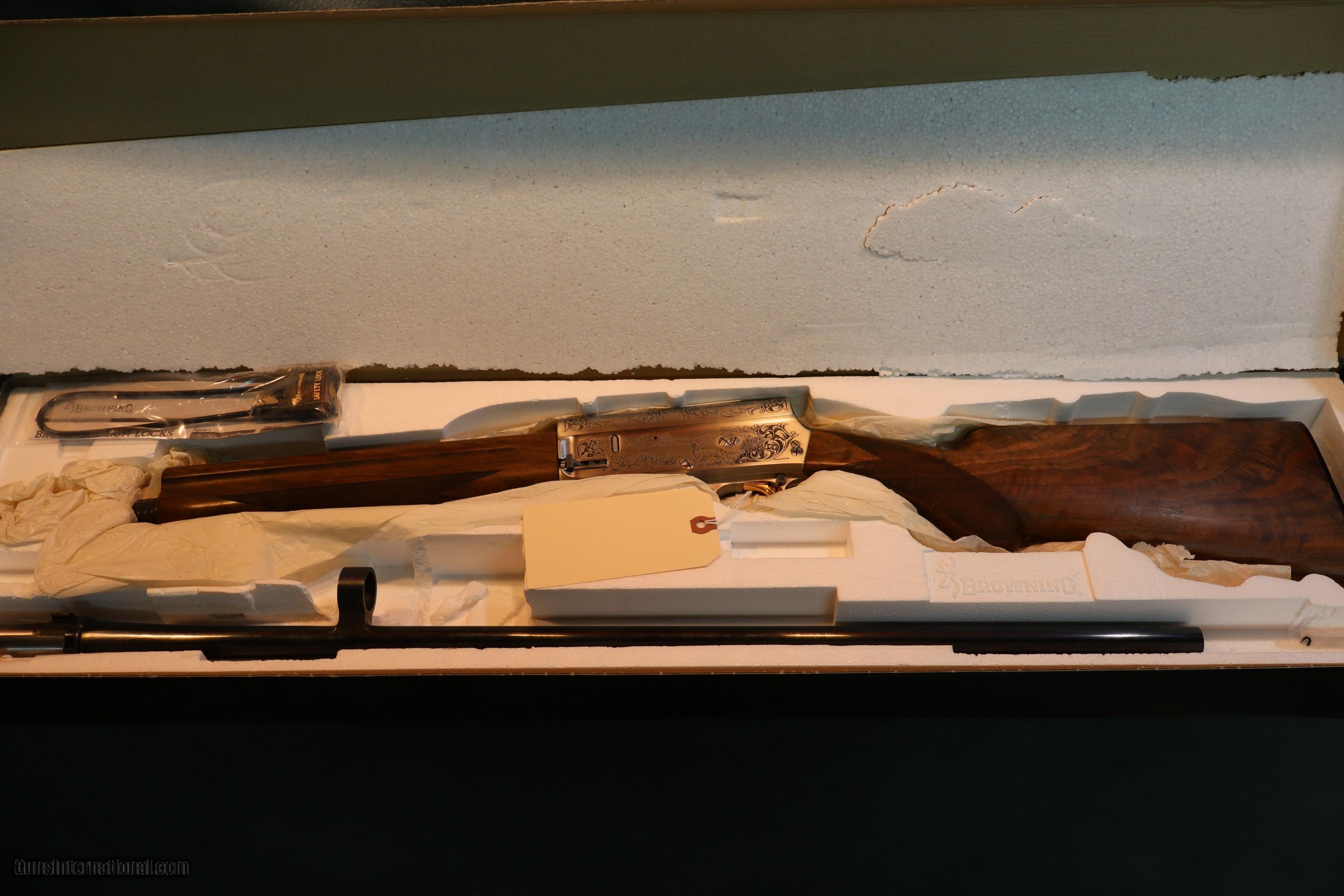 Description: Belgium Browning Auto 5 20ga Limited Edition,2 3/4" 28" IC vent rib barrel,silver engraved receiver,outstanding feather crotch round knob stock,new unfired in the original stock. SOLD |