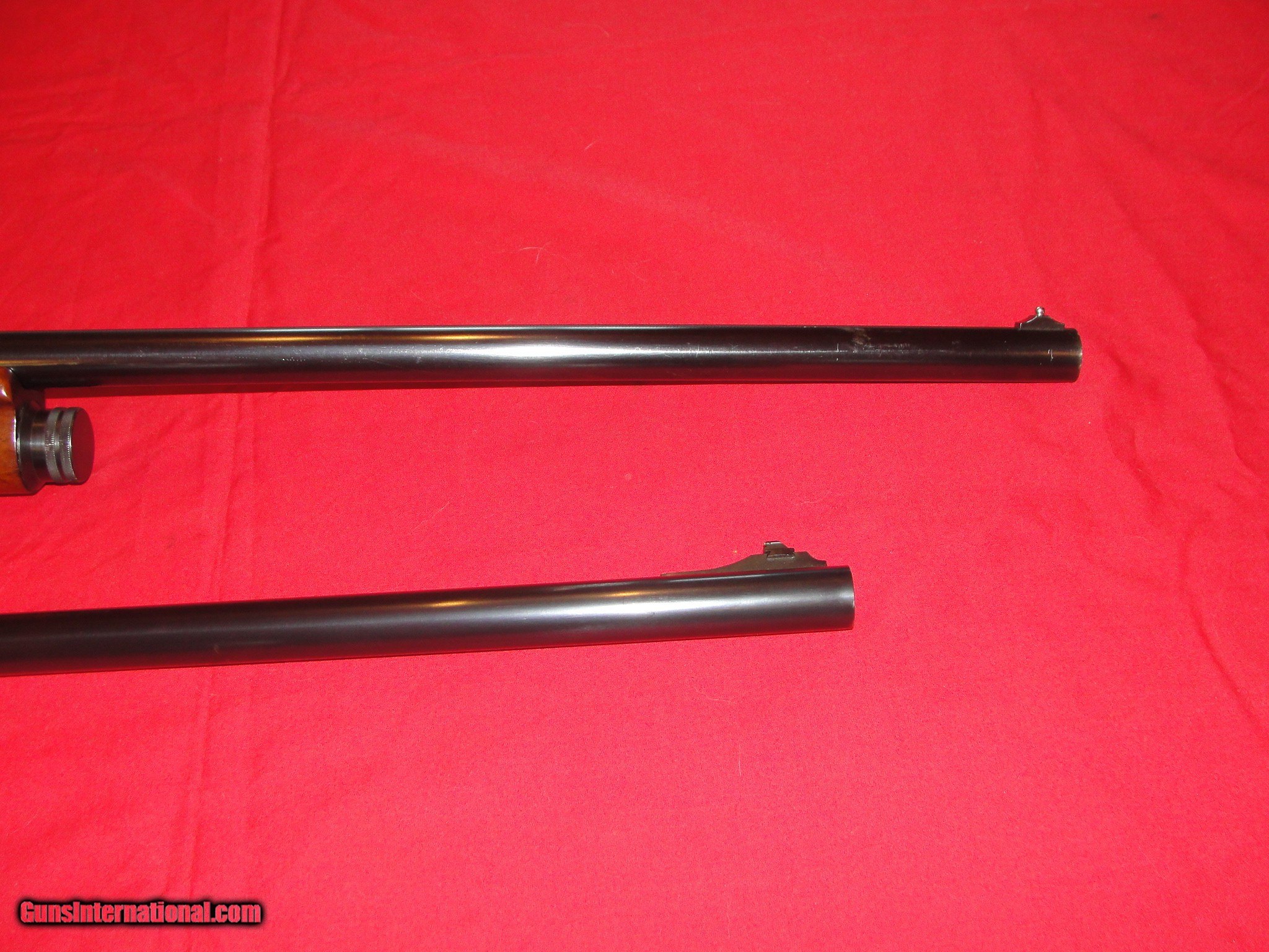 Description: Belgium browning light 12,12 ga.2 3/4" 28" mod. choke,with extra 24" slug bbl made in Japan, bores very clean and brite on both Bbls,sn G 67472,LOPi3 3/4" W/ pachmayr recoil pad,gun cleaned function checked and test fired both Bbls,looks like original owner scribed his own ID #'s on left side of trigger guard,fore end has a crack running length of it ,cond.fair-good for a gun this age,any questions please call 845 657-6330,$50 SH&Insur.in the lower 48,payment by MO or CC,CC add 4%,will ship within 5 business days SOLD Shotgun Gauge: 12 Gauge Manufacturer: BROWNING Model: A5 Light Twelve Serial Number: G 67472 Barrel Length: 28 Bore: VG clean,brite Chambers: 2 3/4 Condition: good Metal Condition: good Wood Condition: fair-good Bore Condition: very good,clean,brite Barrel Type: special steel Action: semi auto Triggers: gold plated Stock: walnut Fore End: walnut- crack in it Butt Pad: pachmayr LOP: 13.75 Engraving: gold plating in them Item Location: Olivebridge NY |