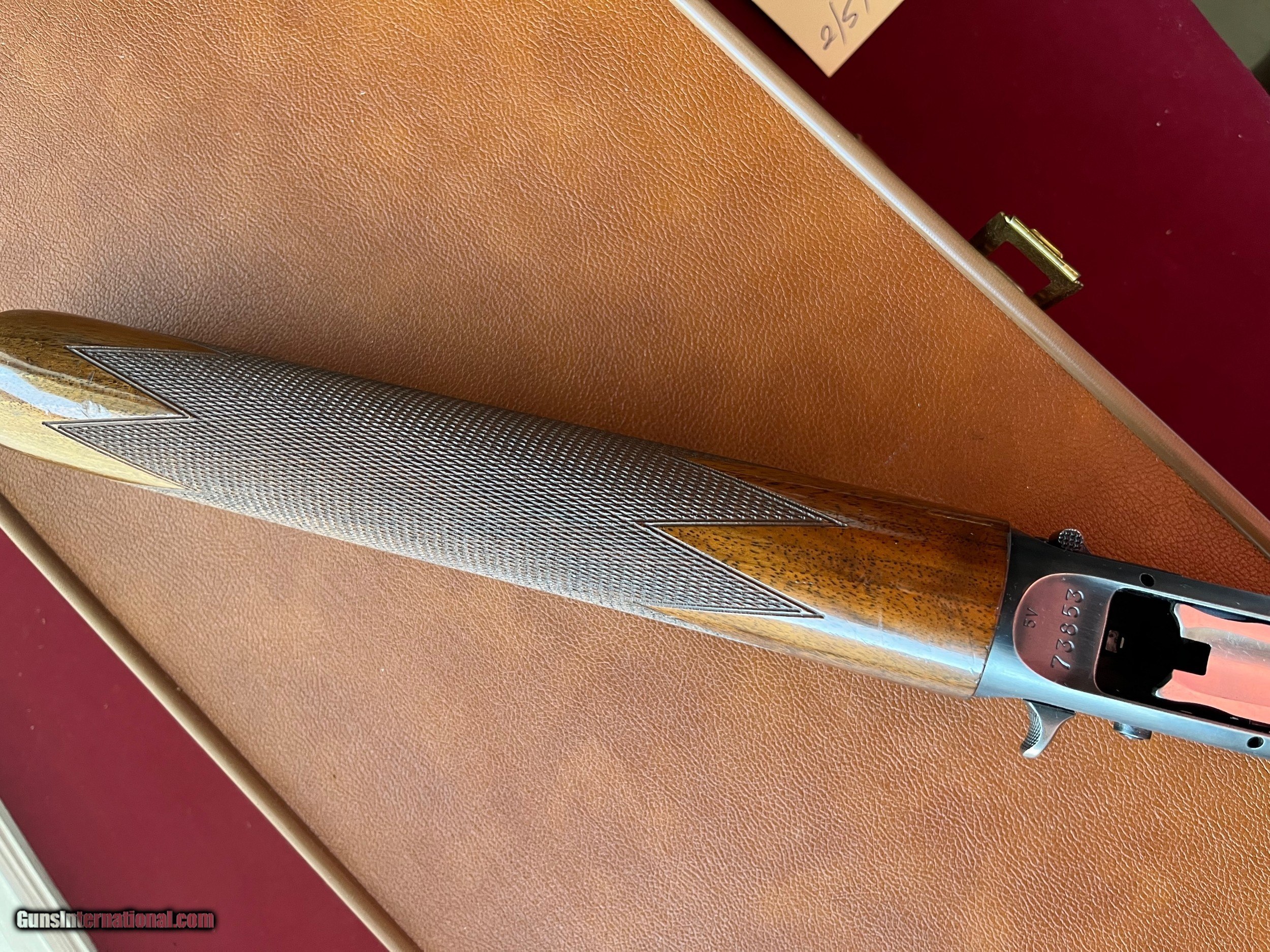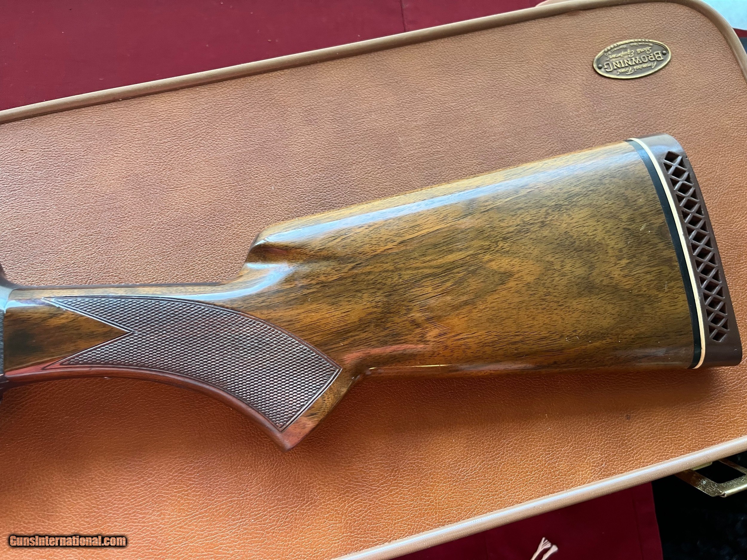 Description: MADE IN BELGIUM . SER# 5V 73853 ( MADE IN 1965) . VERY GOOD ORIGINAL BLUE FINISH WITH THINNING ON THE EDGES. VERY NICE WOOD WITH A LITTLE LIGHT HANDLING. 13 3/4" LOP OVER A BROWNING BUTT PAD . COMES WITH A 29 1/2 VENT RIB BARREL WITH A 3" CHAMBER AND A 23 1/2" BUCK BARREL WITH RIFLE SIGHTS 3" CHAMBERED .GUNS IN VERY NICE CONDITION AND COMES WITH A BROWNING SUITCASE. EASTERN BRANCH FIREARMS ADD 85.00 SHIPPING OPTIONAL INSURANCE IS AVAILABLE AT 1.25 PER 100.00 SORRY NO MORE UPS SHIPPING – THERE POLICY NOT TO SHIP GUN AS OF 8/29/2022 Questions e-mail or call Glen at Eastern Branch Firearms 207-215-5021 TERMS – PLEASE READ BEFORE I DO NOT HAVE A LAYAWAY OPTION ( WE ACCEPT CREDIT CARDS ) -- I GET ALOT OF REQUEST FOR TRADES, I WOULD PERFER NOT TO DO TRADES ON MY INTERNET LISTINGS PAYMENT OPTIONS- We accept money orders, cashier’s checks , bank checks. sorry no personal checks. We accept all major credit cards please add 3% to the ’s cash discount price.(Shipping within the state of Florida - Florida Residents must pay sales tax) .Handguns and long guns do need to be shipped separate. PLEASE do not send payment via FED EX . USPS & UPS are fine. Thank you. We include a signed copy of our FFL with each firearm shipped. SAFTY NOTICE- Buyer is solely responsible for determining that a used gun is safe to shoot. The firearms offered have not been test fired but have been given a visual inspection only for purposes. It is a requirement that every used firearm is inspected by a qualified gunsmith before firing. By , the buyer agrees to hold seller harmless against damages, injury, or death caused by defective merchandise. RETURN POLICY- All firearms come with a 3-day non firing , non messing with ( turning srews ,taking apart,removing parts, scoping. firing, cleaning or messing with in anyway) inspection/return privilege.Inspection is based on a visual review of the gun to confirm the gun is in the condition stated. In the case of a return, buyer pays all shipping charges & if paid for with a credit card buyer absorbs the 3% credit card charges . So please ask questions BEFORE you bid. Thanks for Looking and Good Luck!! U.S. sales only, no exports…this includes antiques. I will ship to third party for exporting SOLD Curio/Relic: Yes |