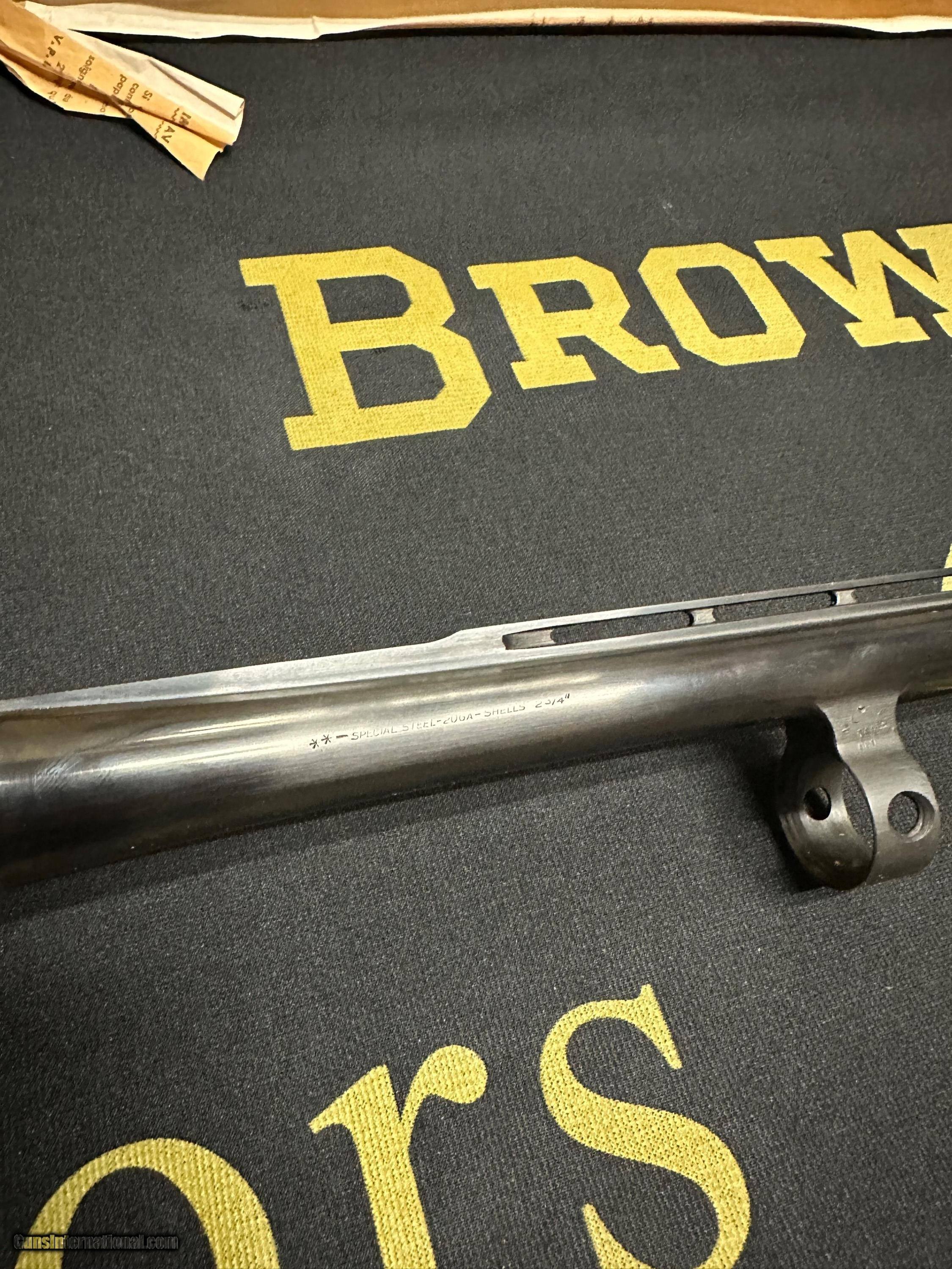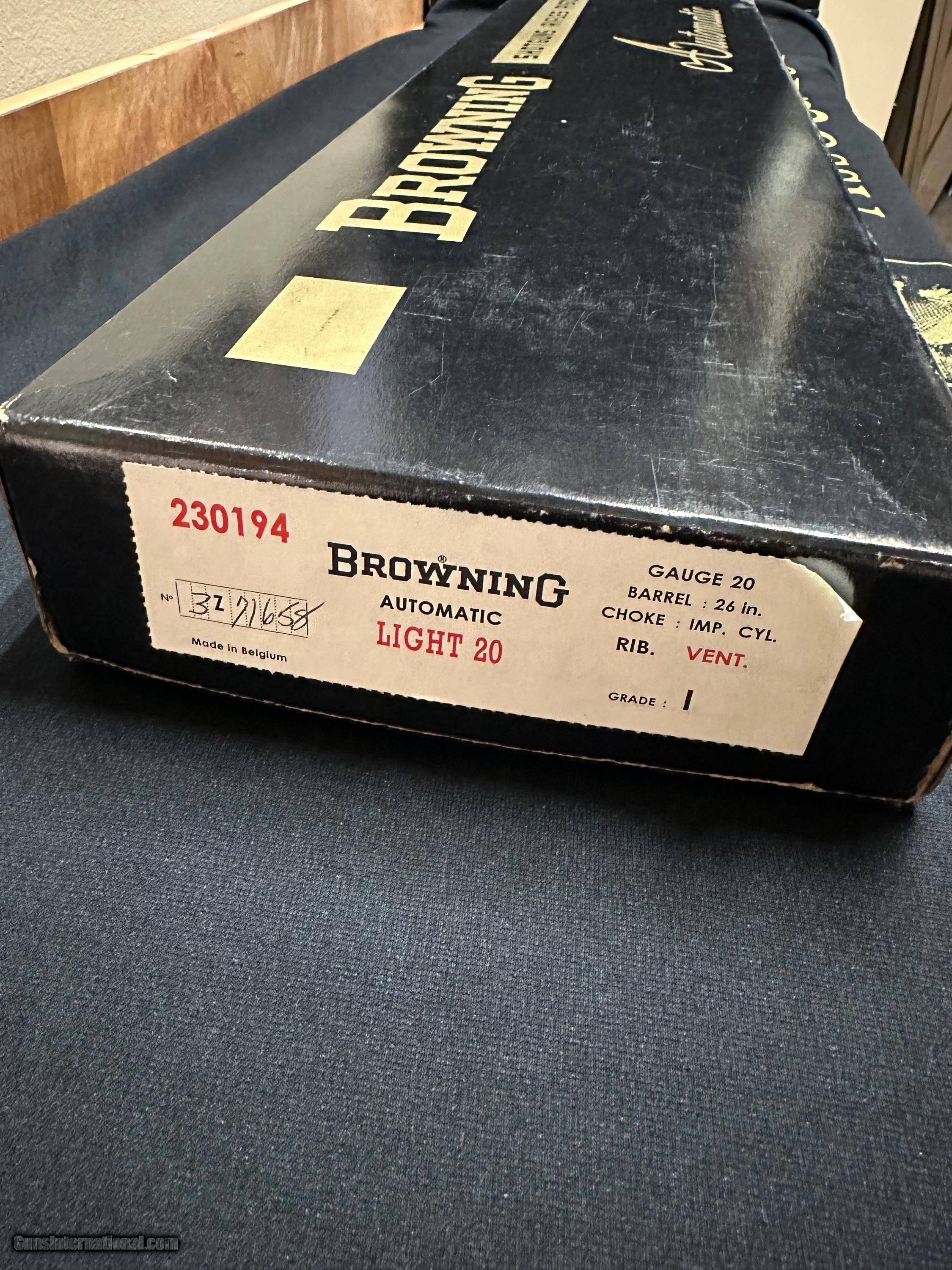 Description: In box fully restored Belgium Browning A5 twenty. 2 3/4" chamber. 26" vent rib IC choke barrel. Round knob made in 1963. For more information about this firearm or for purchasing it we kindly ask that you ((( PLEASE GIVE US A CALL AT ))) 1-(479)-747-9598. We have a store front and emails may be delayed so we kindly ask that you give us a call over the phone. PRICE - $3,000 + Shipping SOLD Manufacturer: Browning Model: A5 Twenty Serial Number: 3Z71658 Barrel Length: 26” Chambers: 2 3/4” Action: Semi-automatic Manufacture Date: 1963 Item Location: Arkansas |