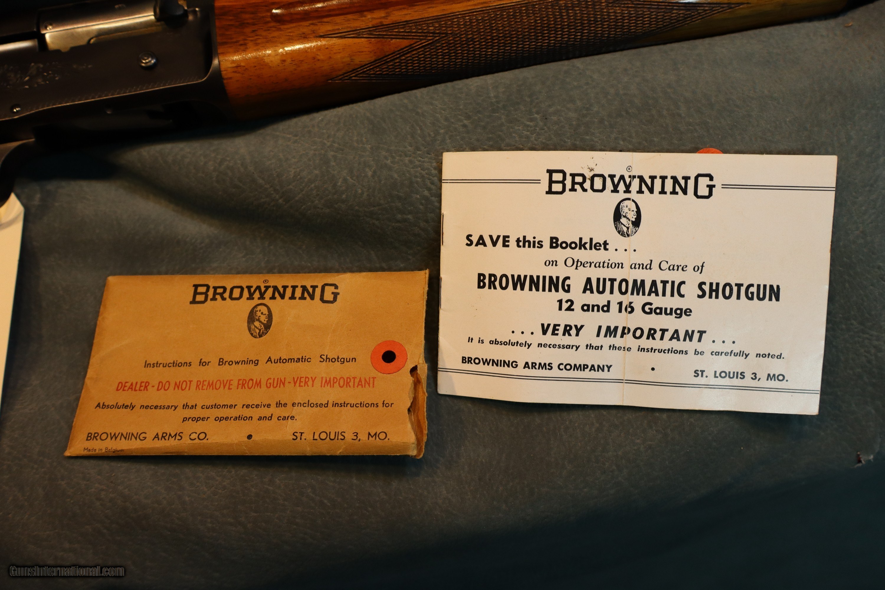 Description: Belgium Browning Auto 5,Sweet Sixteen,16ga 2 3/4" 27" Modified Choke,solid rib barrel,serial #S 86032 made in 1957,horn buttplate,great condition with a box and manual. GUN COLLECTIONS WANTED FOR CASH! We buy, sell, consign and trade new and used firearms. This is our 49th year in business. We offer 90 day layaways with 20% down. No return on layaways. Firearms will need to be transferred through a FFL dealer. Prices reflect a cash discount. There will be 3% added to credit card sales. We trade for gold and silver. THANK YOU! SOLD |