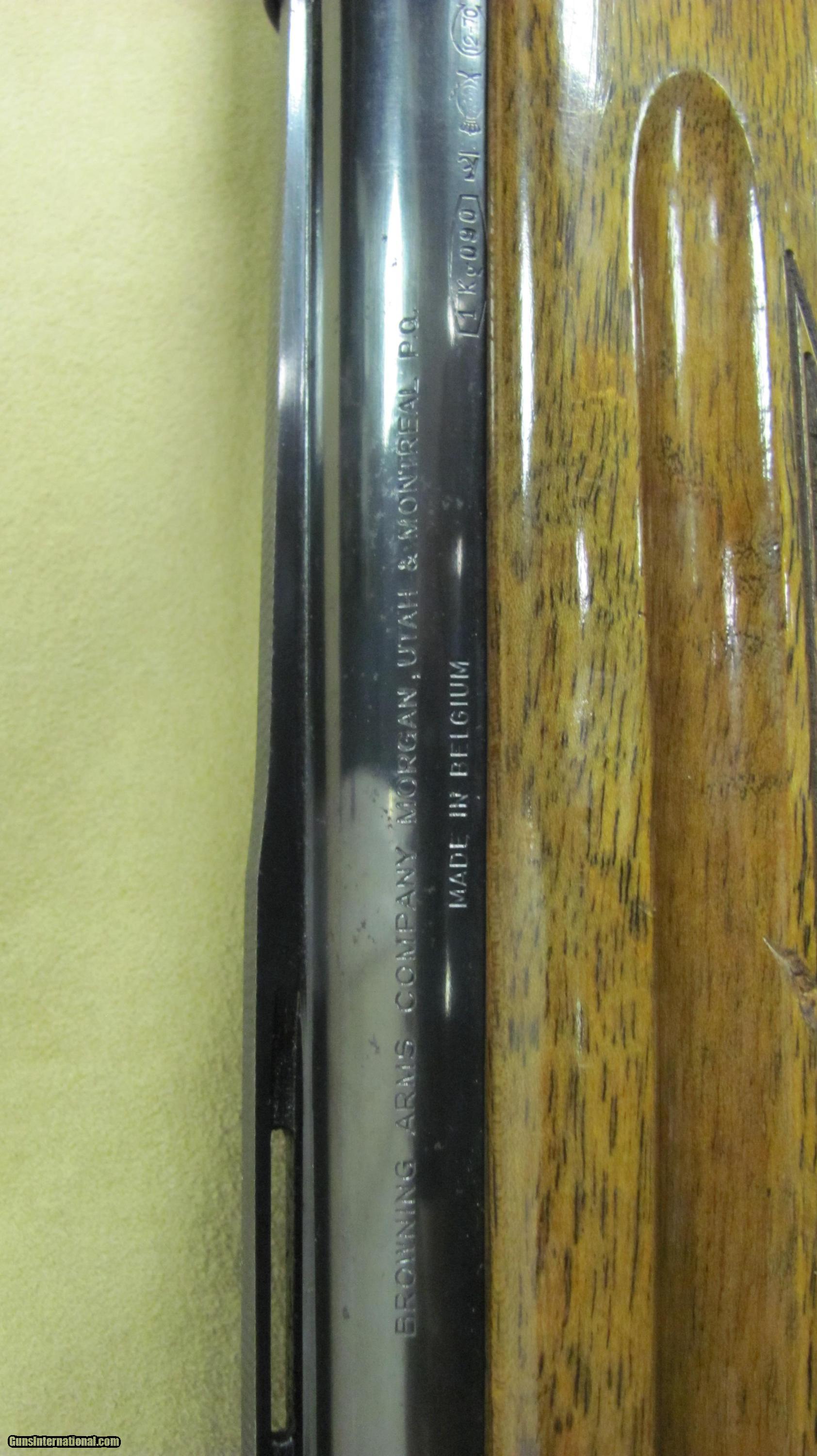 Description: An almost new condition Light 12 Belgium Browning A-5 with a 25 1/2" Imp. Cyl. vent rib barrel. LOP is 14 3/8" and the gun weights 7 lbs. 10 oz. This shotgun was manufactured in 1972 and remains in excellent condition. SOLD Serial Number: 99839 72G |