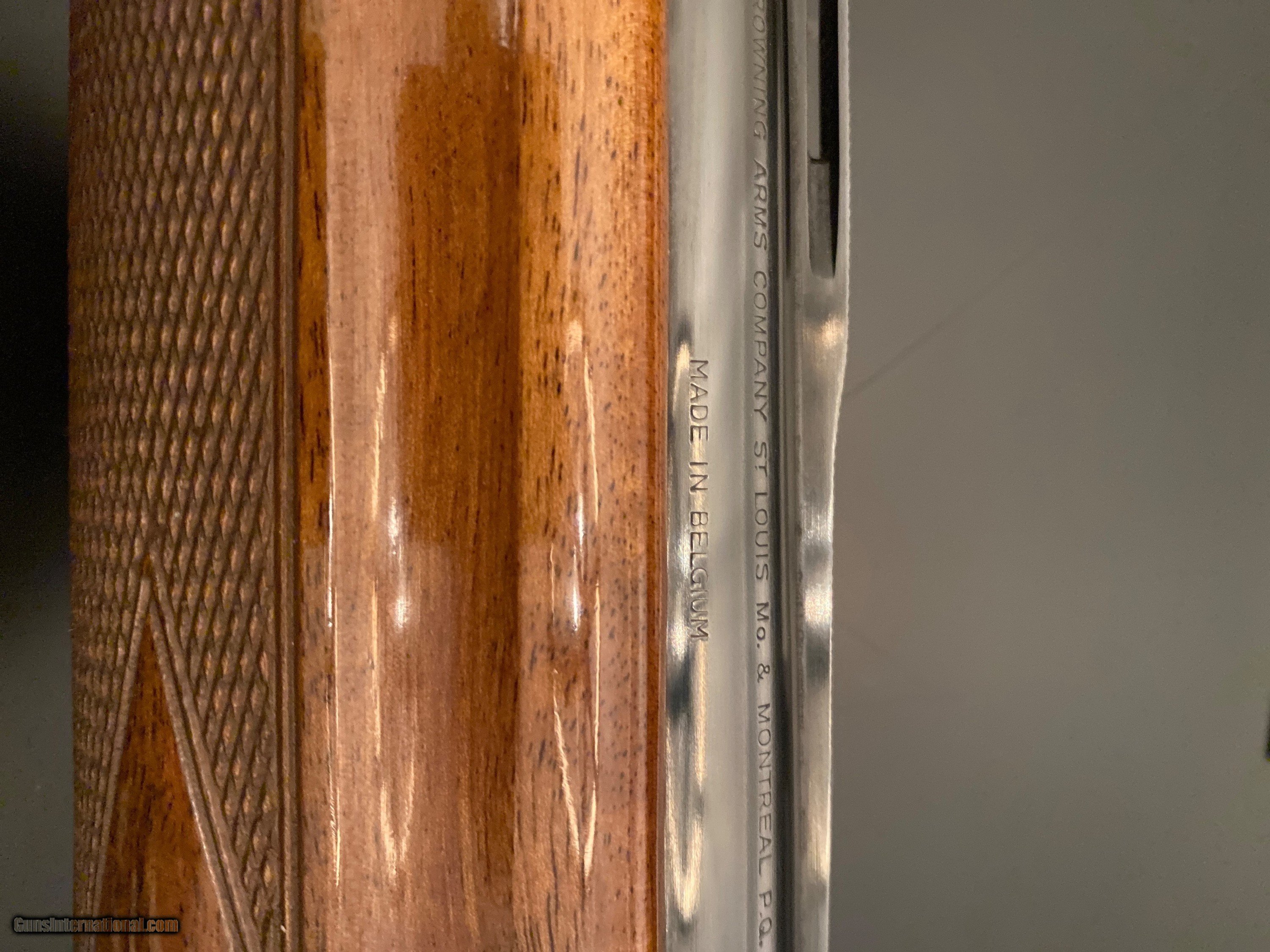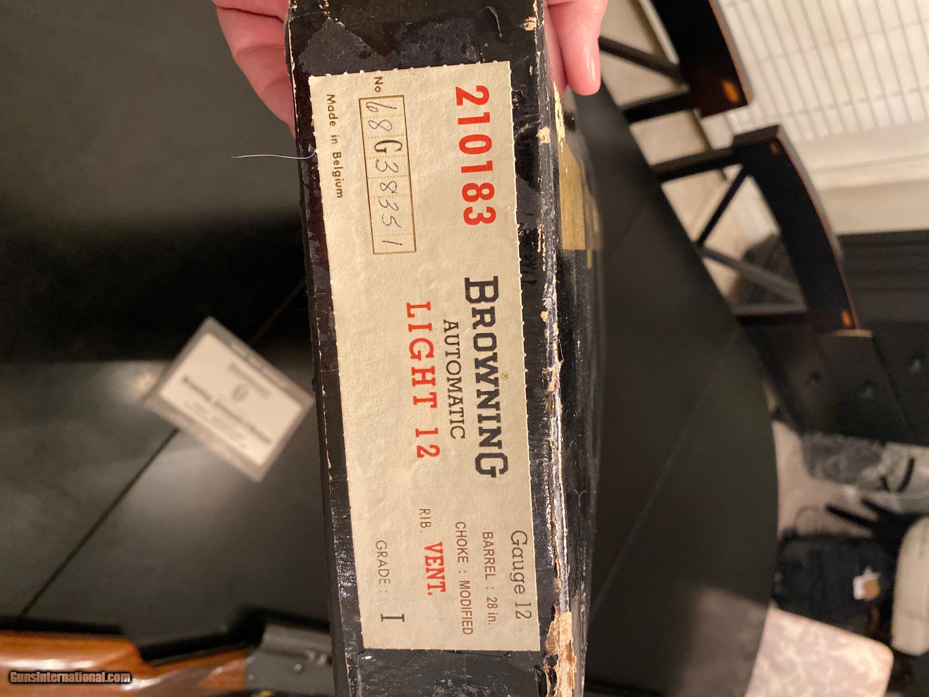 Description: Belgium Browning light 12. Beautiful Belgium Browning. 28" modified. Excellent condition with original box and paperwork. Very light handling marks on wood. Light crazing on finish. Excellent overall gun. Perfect for a collection or to shoot. let me know if you have any questions. SOLD Shotgun Gauge: 12 Gauge Manufacturer: Browning Model: Light 12 Bore: Excellent Chambers: Excellent Ejectors: Clean Condition: Excellent Metal Condition: Excellent Wood Condition: Very good Bore Condition: Excellent Barrels: Clean Action: Semi auto |