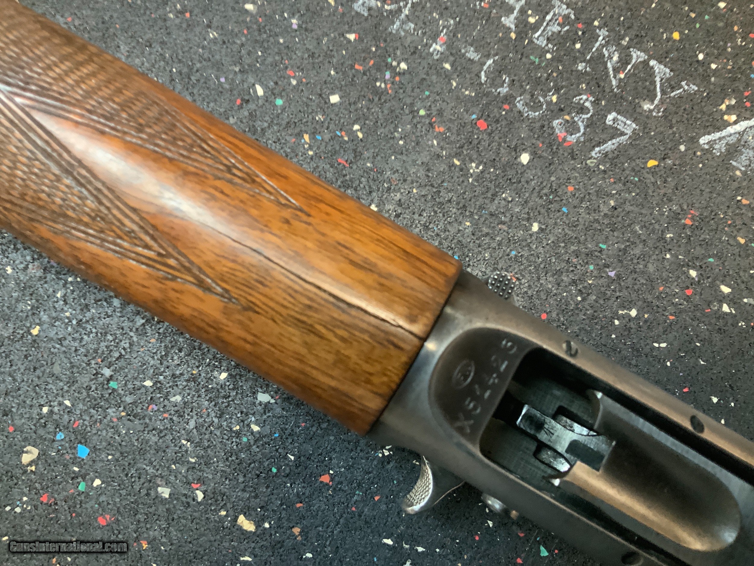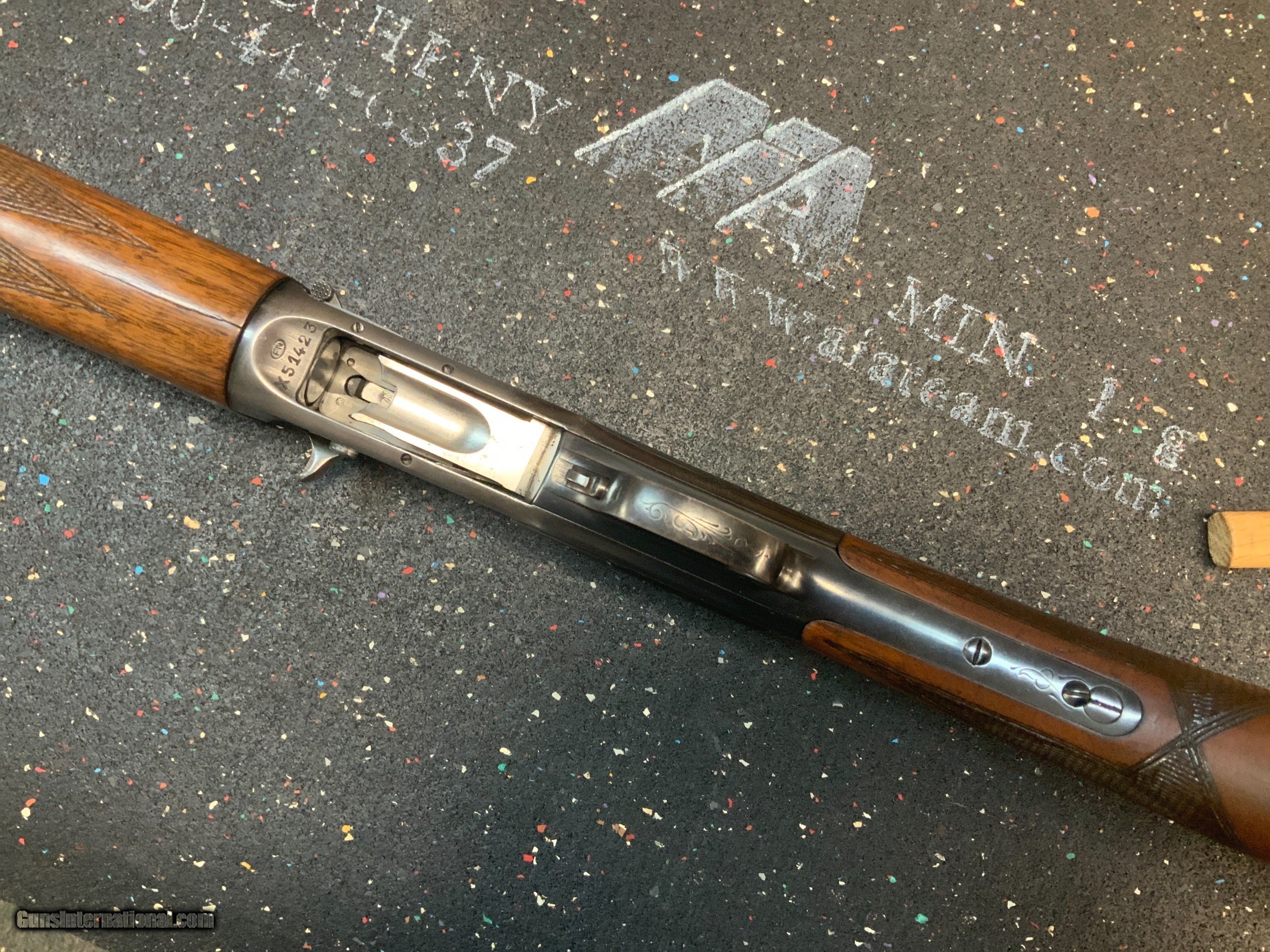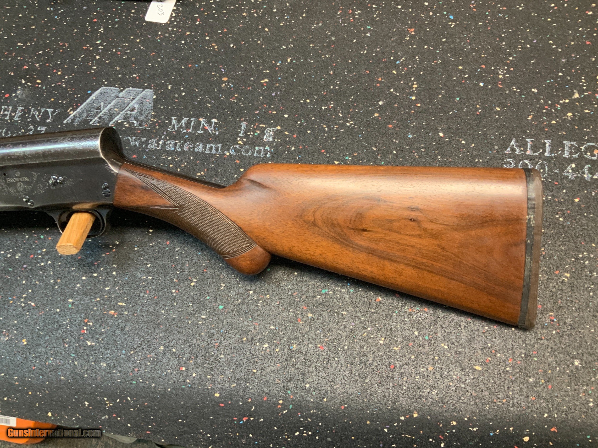 Description: Browning A-5 16 gauge from 1951 in well used condition. Appears to have been re-blued and a plastic vented rib added to the barrel. Split in the forearm wood and varnish added. Great truck gun, beater, parts gun or you use you imagination. Pictures show what you get. Please add $50 for shipping and insurance to your FFL or C&R. SOLD Curio/Relic: Yes Shotgun Gauge: 12 Gauge Manufacturer: Browning Model: A-5 Barrel Length: 27” Condition: Fair Metal Condition: Fair Wood Condition: Fair Bore Condition: Good Action: Semi-auto Manufacture Date: 1951 |
