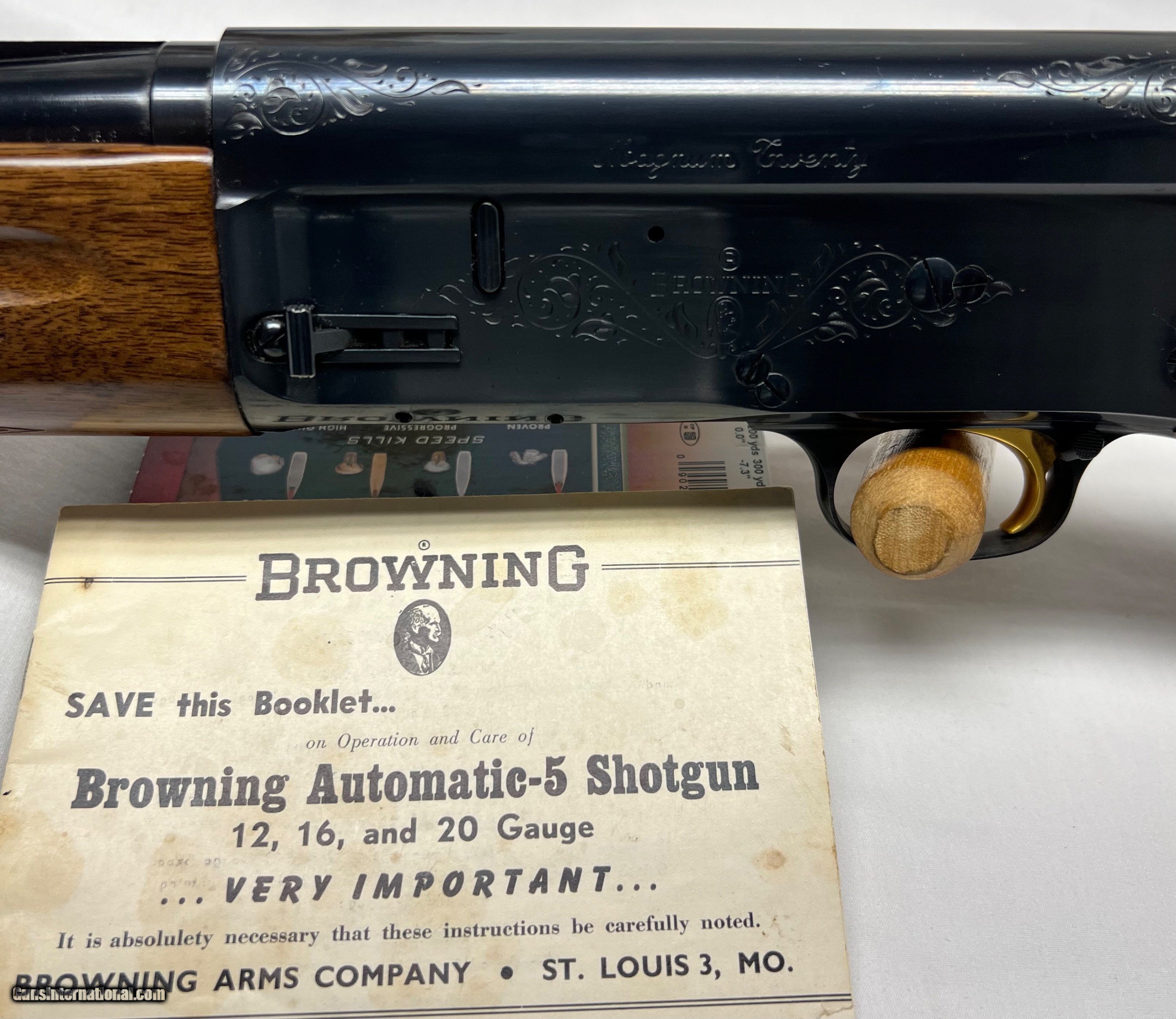 Browning A/5 20 gauge, 3” MAGNUM, Belgium made 1976, Mint Condition