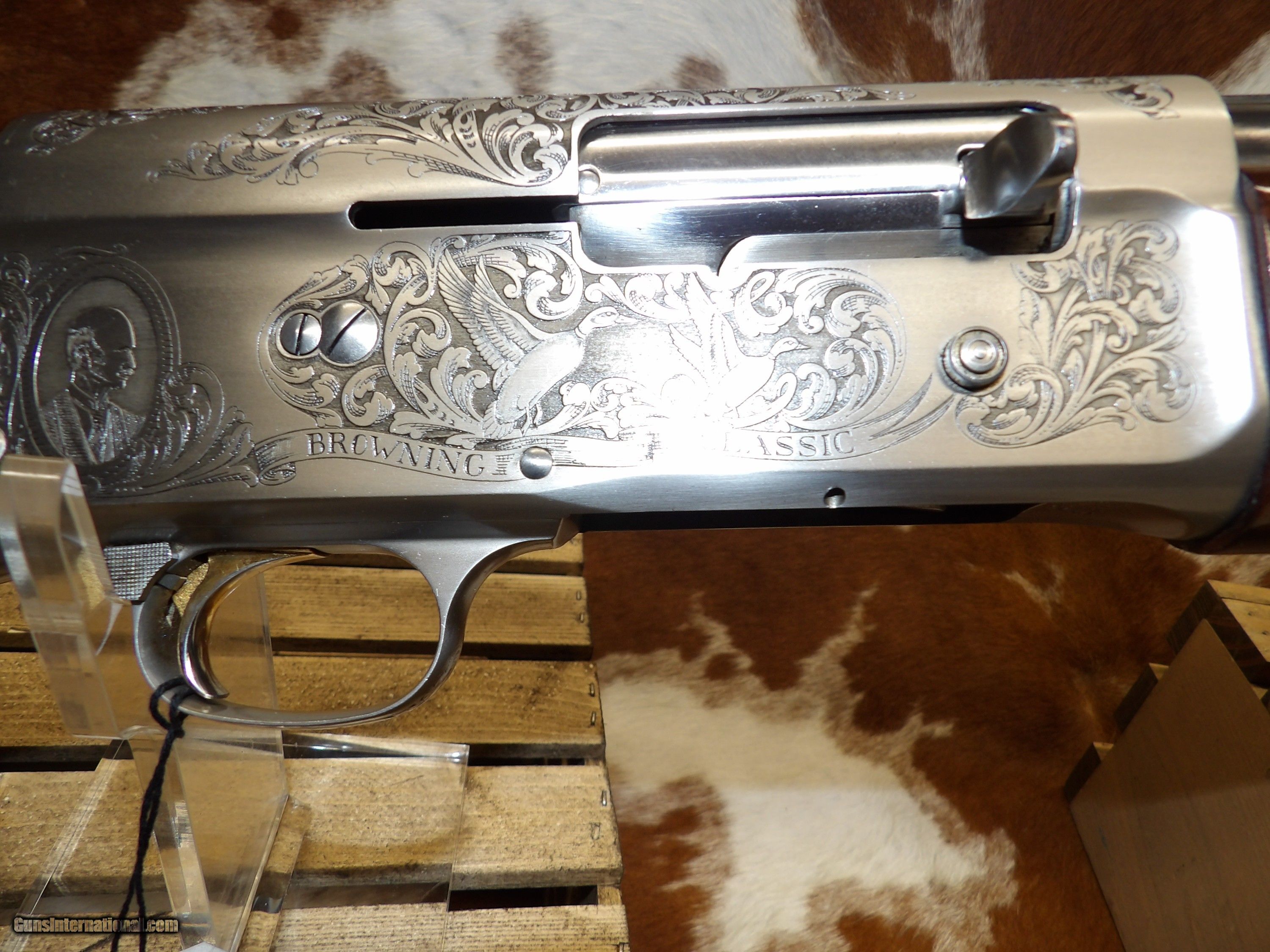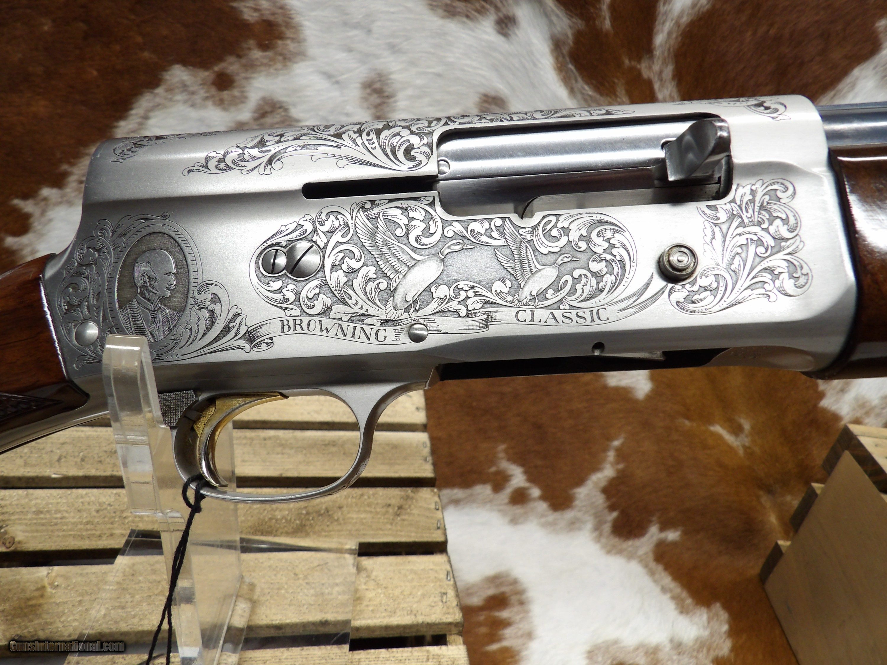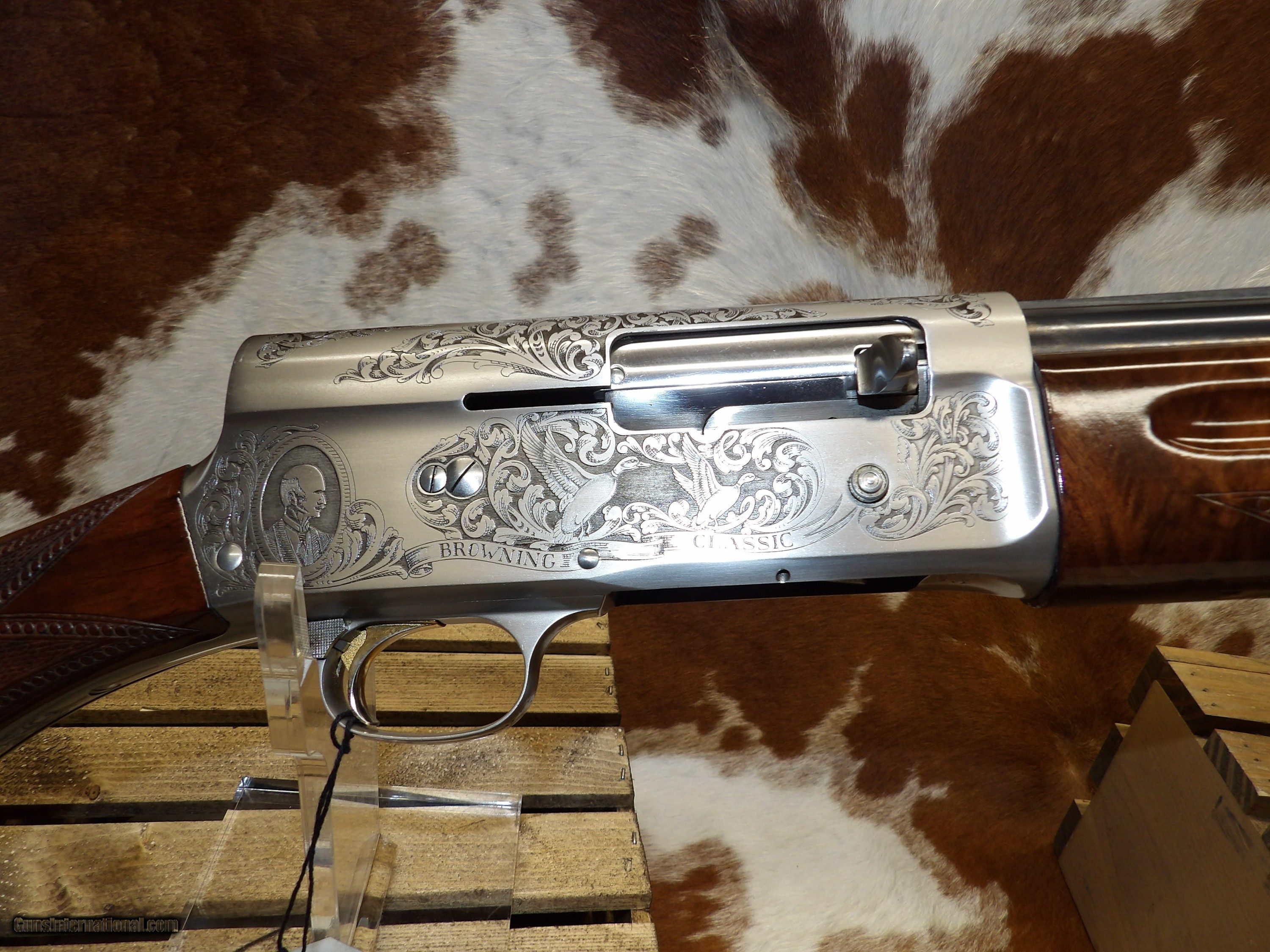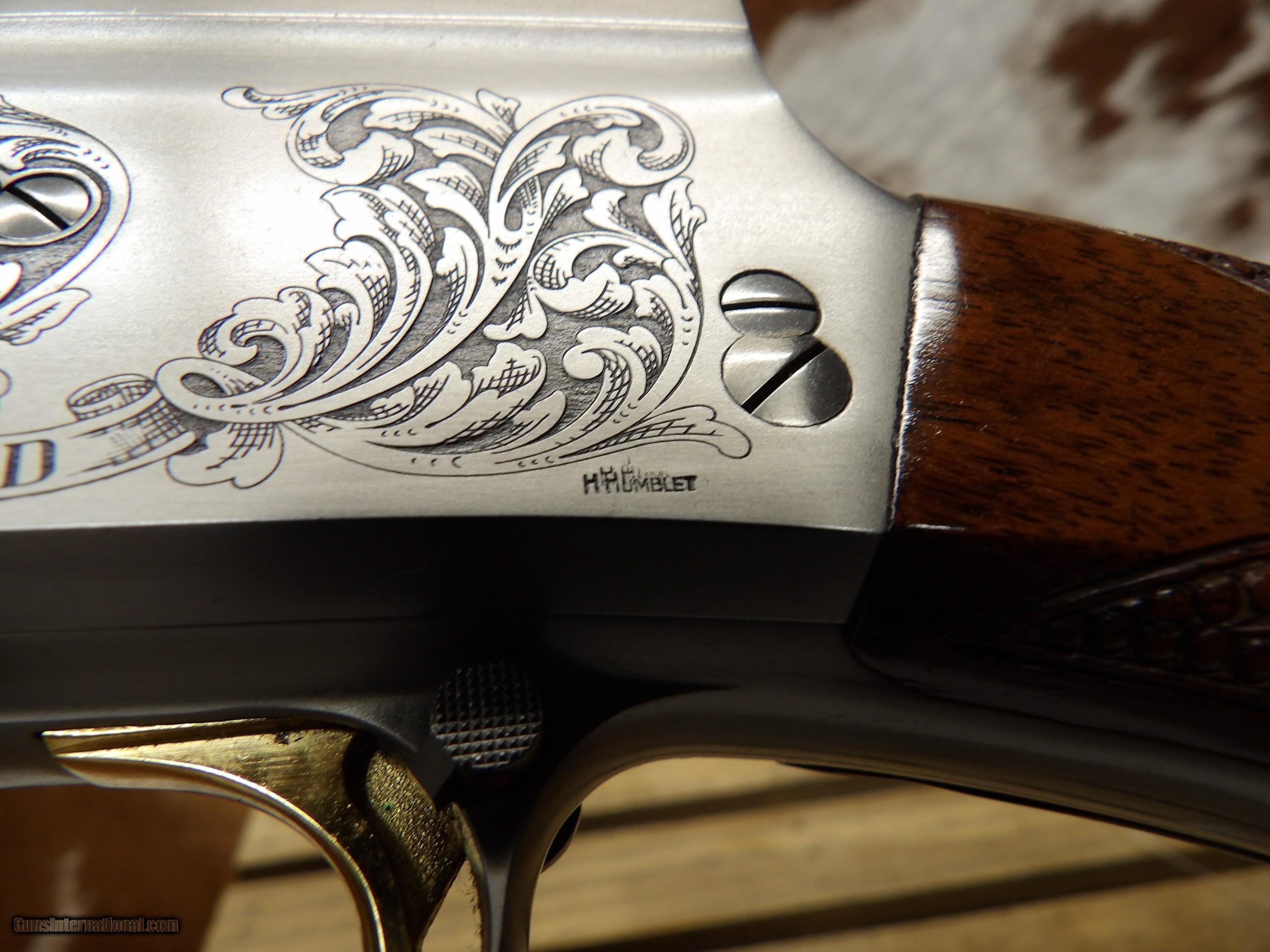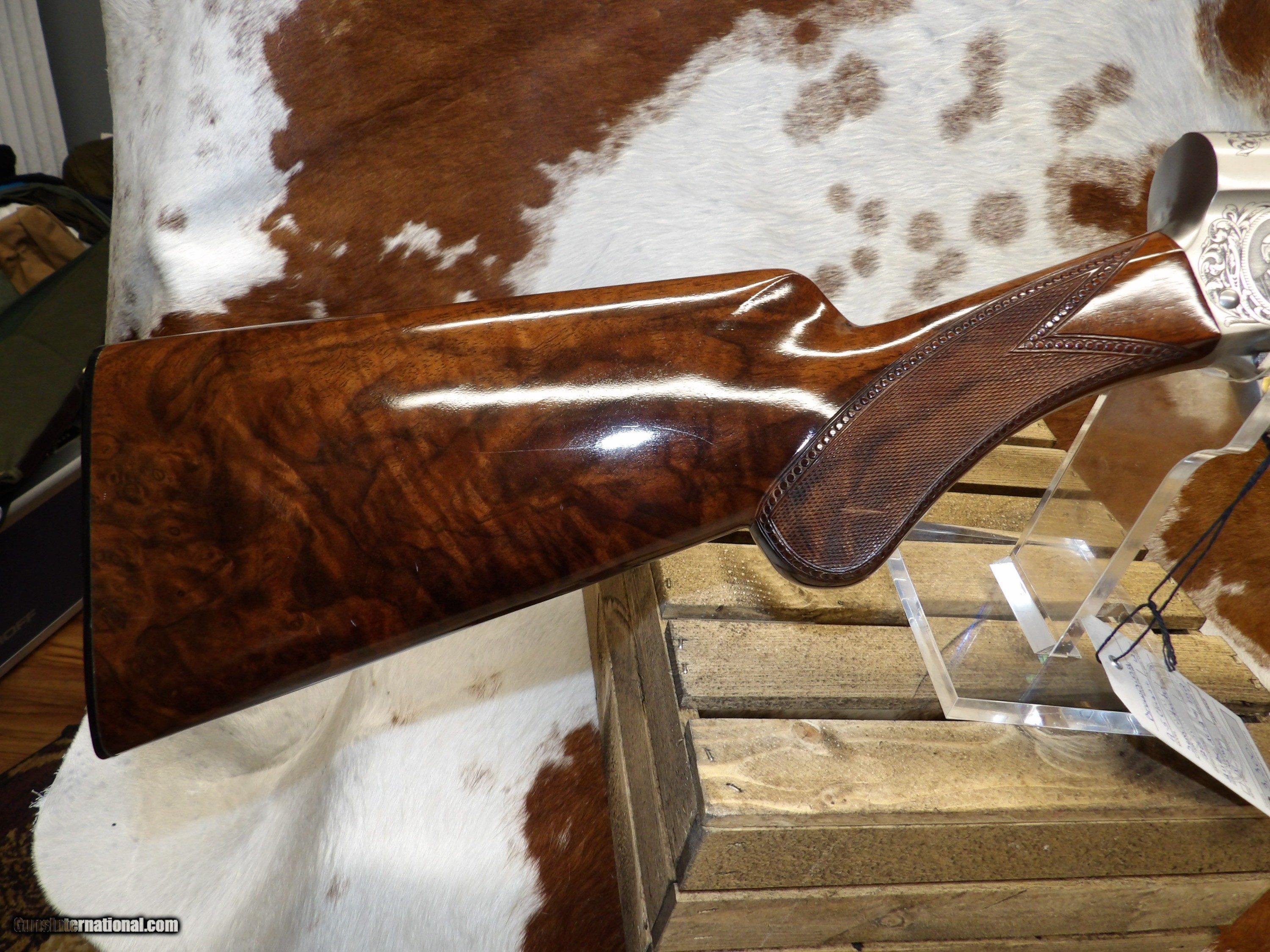Description: Browning A-5 Classic, 1 of 5000 but the only made 2700. Beutiful hand engraving by Remblet at the Belguim Factory of FN. Wood was also added at Belgium with Fine checkering and a unique border., THis gun is gorgeous and only lightly shot.l Come and get it. No box. SOLD Shotgun Gauge: 12 Gauge Manufacturer: Browning Model: A-5 Classic Belgium addorned Barrel Length: 28 Chambers: 2.75 Condition: 95 Metal Condition: 99 Wood Condition: 99 Bore Condition: perfect Barrels: 28 Stock Comb: 1 5/8 Stock Heel: 2.25 LOP: 14.25 Weight: 8 lbs 5 oz Chokes: Mod Case: None |