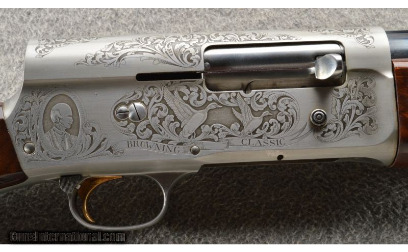 Description: This is an as New In Box Browning A-5 Classic Edition. The shotgun is great looking and remains unfired from the factory. SOLD Manufacturer: 1984 Caliber Info: 12 Gauge. Chambers: 2 3/4 Inch Semi-Auto. Metal Condition: ANIB Wood Condition: ANIB Bore Condition: ANIB Barrels: 28 Inch blue with a vent rib. Triggers: Single gold color. Stock: Grade V walnut with a checkered and carved round knob. Stock Dimensions: 14 Inch LOP. Fore End: Matching checkered and carved walnut with finger grooves. Butt Pad: Browning FN black butt pad. Weight: 8 Lbs 2 Oz. Sights: Single silver color front bead on a vent rib. Chokes: Fixed MOD. Extras: Comes with the factory box, sleeve and booklet. Item Location: Owatonna, MN |