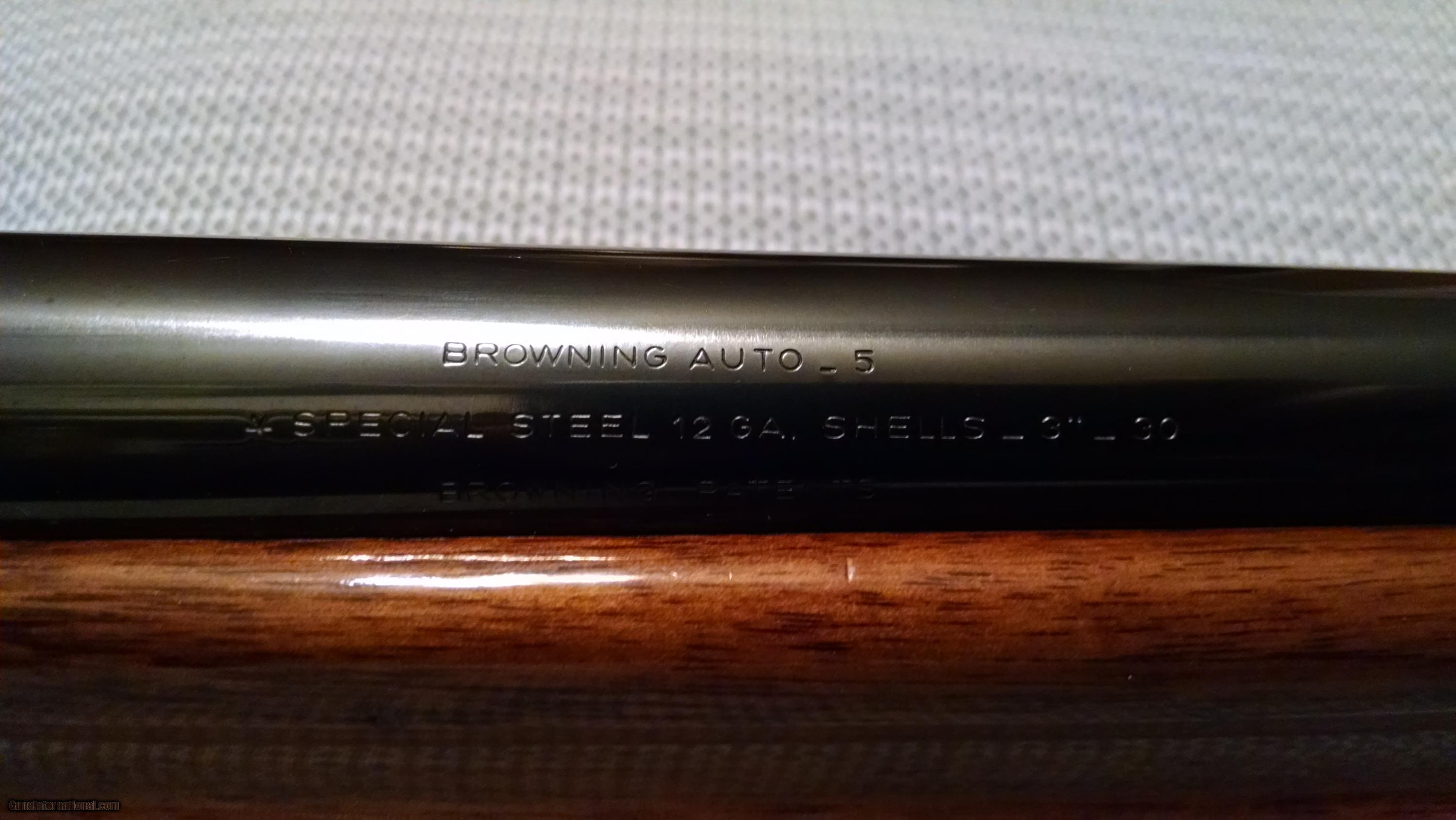 Description: UP FOR YOUR CONSIDERATION IS A BROWNING AUTO 5 MAGNUM. THIS SHOTGUN HAS A 30" BARREL AND WILL TAKE 3" SHELLS. THIS BROWNING IS IN EXCELLENT SHAPE, PLEASE CONTACT ME WITH ANY QUESTIONS. THANK YOU FOR YOUR INTEREST. SOLD Manufacturer: BROWNING Model: A-5 MAGNUM Condition: EXCELLENT Metal Condition: EXCELLENT Wood Condition: EXCELLENT Bore Condition: EXCELLENT Gauge Info: 12GA Stock: FACTORY |