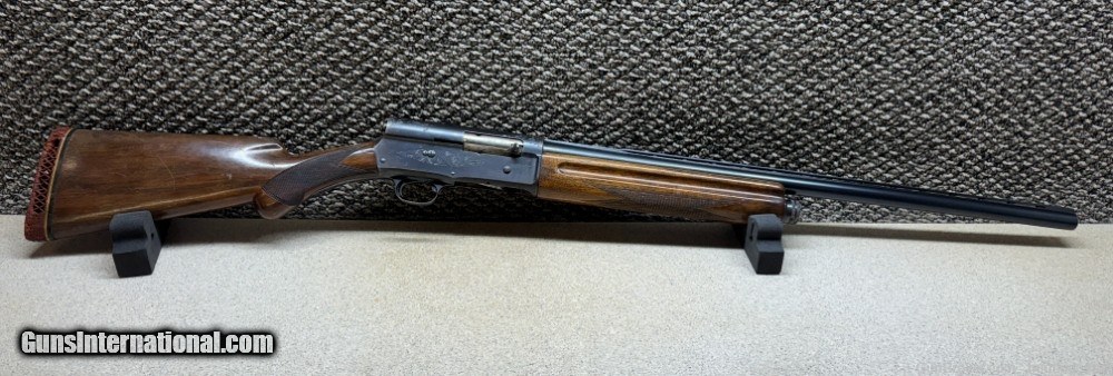 Description: Guns Listing ID: 490299 This listing is for a USED Browning A5 12 GA 2 ¾” Blued Finish Made in Belgium IM 25.5\" BBL 5+1. This is a used gun, it has been fired and will have residue present. This Browning A5 is chambered 12 gauge, it will hold 5 rounds in the magazine tube, and it will chamber up to 2 ¾ inch shells. This shotgun comes with a 25.5 inch barrel, and it has a fixed improved modified choke. It comes equipped with a front bead sight. There are several scratches present across the barrel, receiver, and on the wood furniture. There are rust spots present across the barrel and receiver. There is a small dent on the left side of the rib. The recoil pad appears to be in bad condition. The action appears to be in good condition, the finish appears to be in fair condition, and the bore appears to be in good condition. The serial number matches on the receiver and on the bolt. There are several proof marks on the barrel and receiver. This would be a great addition to your collection. ** DISCLAIMER** THIS FIREARM HAS NOT BEEN TEST FIRED*** SOLD Manufacturer: BROWNING Model: A5 Caliber Info: 12 GA Condition: Used - Non-Certified Barrels: 25.5 Finish: blued |