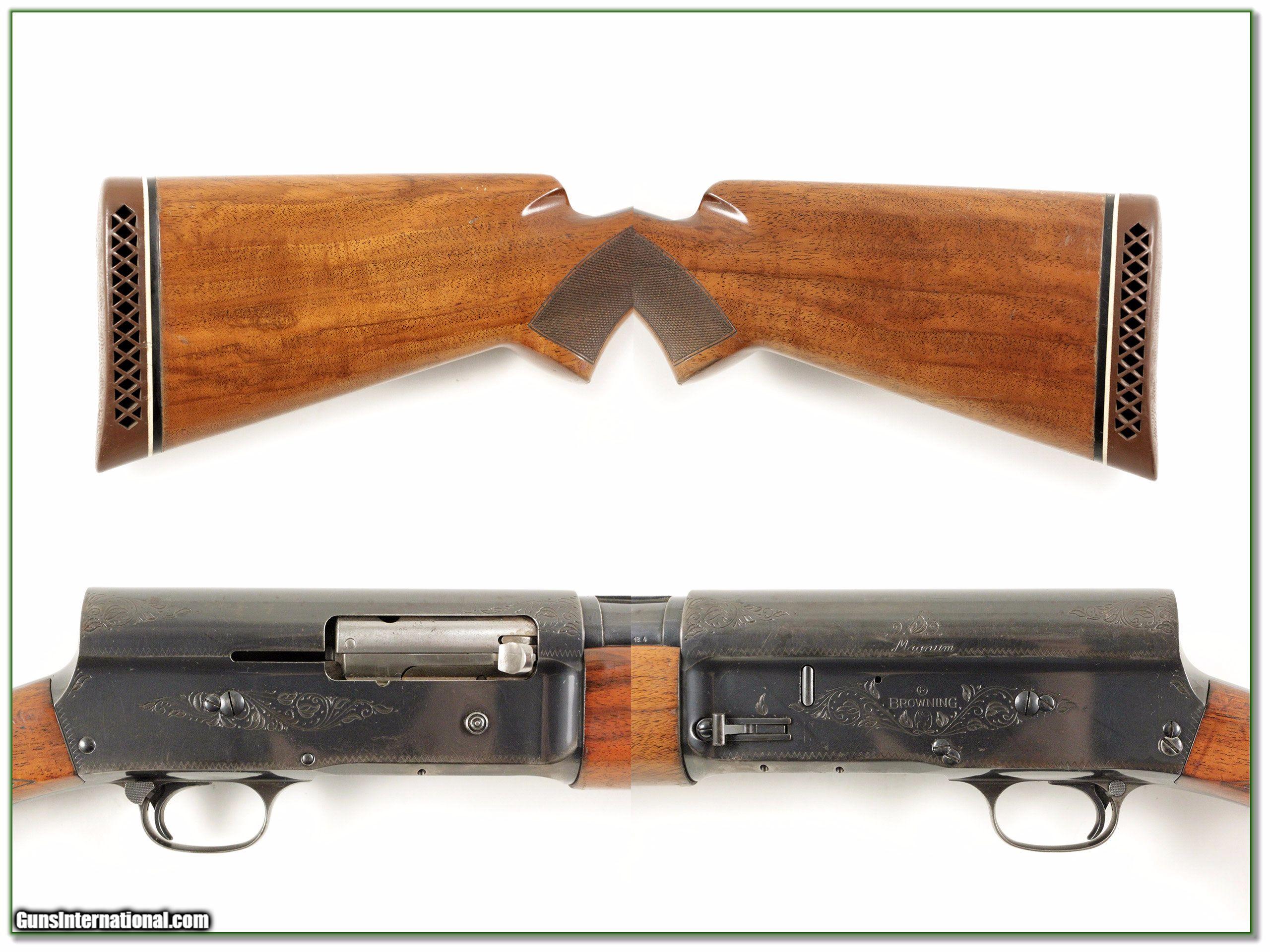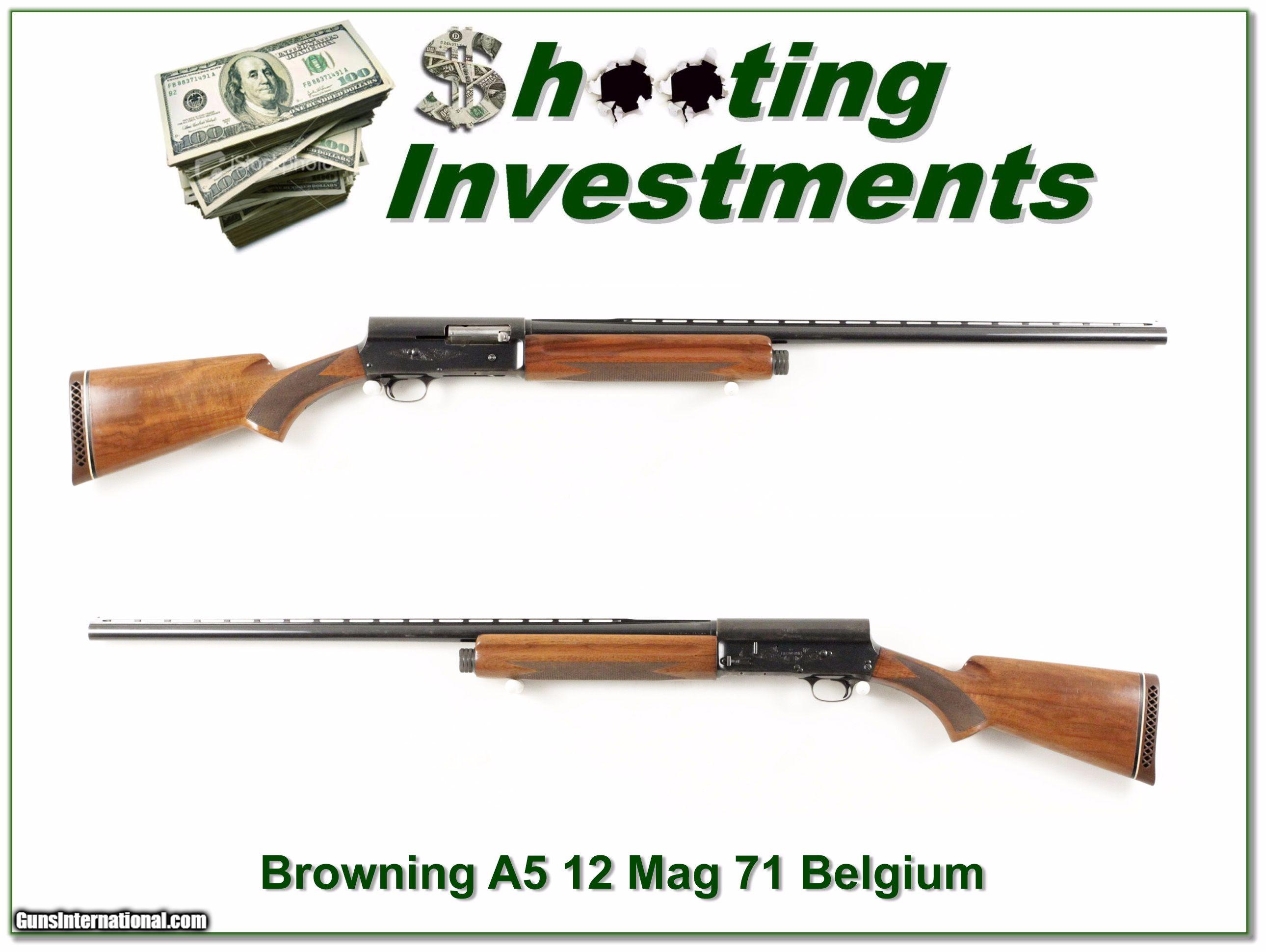 Description: This is 1971 Belgium made Browning A5 Magnum 12 Gauge. It is in very good condition with nice wood grain and a 30 in Vent Rib barrel. It is make a classic field gun that should last several more lifetimes! It is a Shooting Investment. Shipping and insurance is $39. Please email me with any questions or larger pictures. (Consign your quality firearms with Shooting Investments for only 10%! Let me know if you have any you would like to sell!) 17-1112 Payment: Payment is by Money Order, Cashiers Check or Personal Check. I can now also accept MasterCard and Visa with a 3% convenience fee. PayPal can be used for some items but never firearms. Please let us know if you would like to pay via PayPal. Shipping: The shipping charge will be listed in each description. It is $39 for most long guns and $29 for most handguns. Some heavy guns or those insured for over $2000 will be higher. Shipments to Alaska and Hawaii are higher because air shipment is required. Most firearms are shipped on Tuesday and Thursday and usually in 5 days of receipt of payment. We package all shipments carefully and insure them. For long guns you can purchase a new Plano case for $19. They now cost us $22 when buying 100 at a time. Optics are shipped Priority Mail and most other non-firearm shipments are shipped First Class. Returns: Our return policy is simple. If for any reason you are not pleased with your purchase, you may return your item for a full refund of purchase price. Ammunition cannot be returned. It is important to us that you are happy. Guns cannot be fired or dissembled before returning them and they must be returned in the same condition as received. Notification of a return must occur with-in 3 days of receipt at your dealer. Shipping, convenience and dealer fees are not refundable and are the responsibility of the buyer. Lay-a-way: If needed, we offer a 60 day lay-a-way option on most firearms. It is 1/3 now, 1/3 in 30 days and 1/3 in 60 days. Lay-a-way firearm sales are final and if not completed the first payment cannot be returned. Consigning your firearms with Shooting Investments: We will help you get top dollar for your firearms. While most local guns shops charge 20% or more, our fee is only 10% with a minimum of $75. At your local gun shop it might take months to sell. Selling on-line provides instant access to thousands of interested buyers. You won’t find any other on-line dealer willing to sell your firearms for only 10% or listing every gun on 3 separate s. Selling through an House typically costs the seller 15% and the buyer an addition 15% (so 30%) and you have to wait several months to sell and longer to receive funds. If properly priced, we will sell your firearms in a few weeks. Send us an email or give us a call and we’ll explain how easy it is for you to get top dollar. Trading: Trading for use is really just buying your gun to re-sell. If you have a gun you want to trade, please email a picture and we will let you know what we can give or it. You will always get more if we sell it for you on consignment. Help for California Buyers: We are happy to ship to California. It is the buyer’s responsibility to make sure any item you buy is legal in your state. We are also happy to help with your purchase of a firearm from someone other than us. If you see a gun you would like to buy but the seller can’t or won’t ship to California they can ship to use and we’ll then ship it to your California dealer. The cost for this service is only $30 + shipping. Let us know if we can help! SOLD |