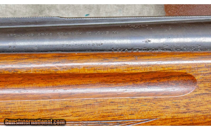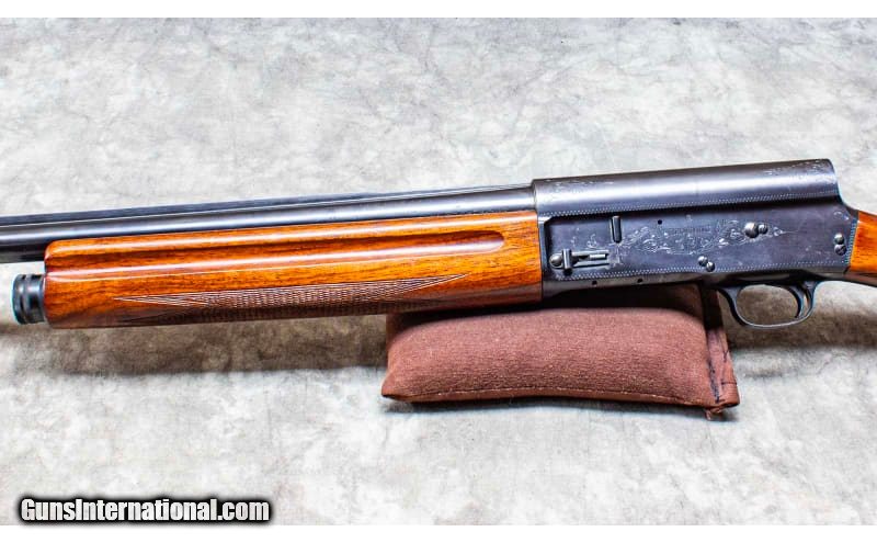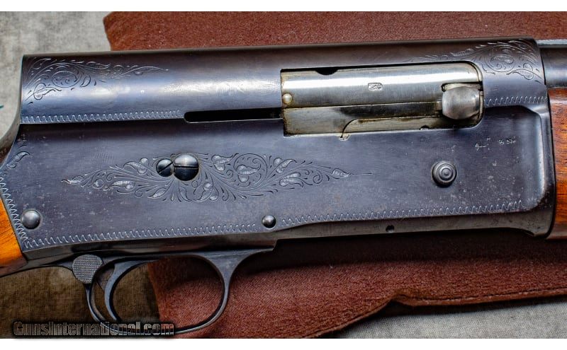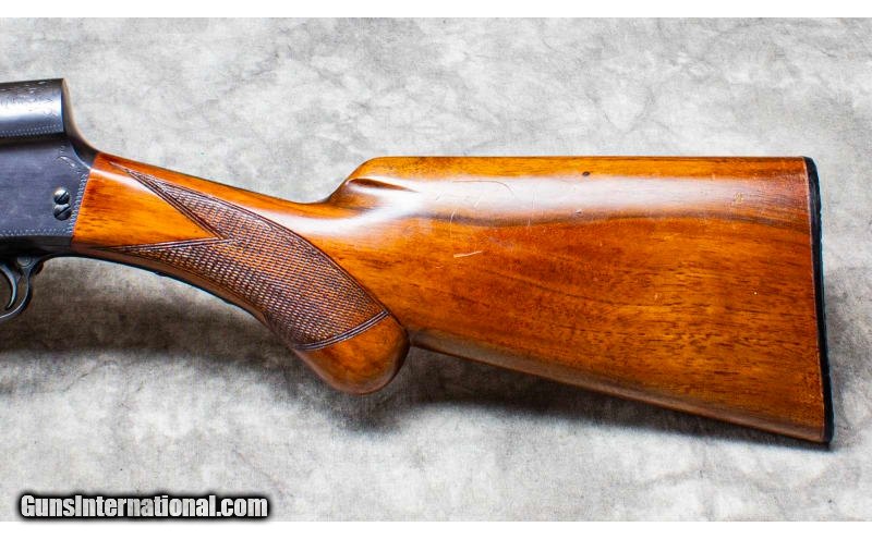 Description: The Browning Auto-5 was the first mass-produced semi-automatic shotgun. Designed by John Browning in 1898 and patented in 1900, it was produced continually for almost 100 years by several makers with production ending in 1998. It features a distinctive high rear end, earning it the nickname "Humpback". The top of the action goes straight back on a level with the barrel before cutting down sharply towards the buttstock. This distinctive feature makes it easy to identify A-5s from a distance. The shotgun saw military service worldwide from World War I through the Vietnam War. Comes with a soft case. 12 Gauge SOLD Chambers: 4 Metal Condition: Very Good Wood Condition: Good Bore Condition: Bright & Shiny Weight: 131 Oz Sights: Fixed Item Location: Ft. Myers, FL |