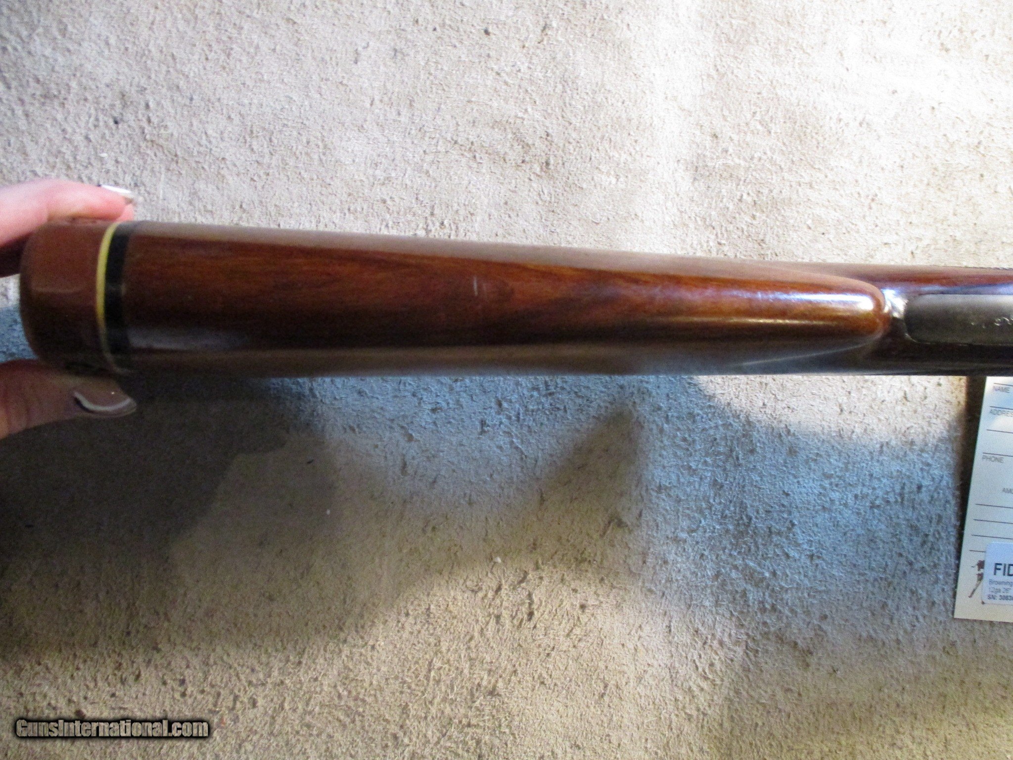 Description: Browning Auto 5, made in Beligum, 12ga, 26" vent rib, Fixed IC choke. SN is 3083xx, made in 1950. Factoy finish on both wood and metal. LOP Is 14" as pictured. No cracks in wood. I do not think its been shot much. We will trade for silver and gold. We accept personal check, any certified funds, Venmo or Zelle. We can also take your credit card, +3%. Email me if you would like these pictures sent to you, they will come through bigger and better than on the listing page here. We do offer Layaway. Our standard terms are 25% down, 90 days. Initial deposit is not refundable. Email me with any questions. Please check your local laws to confirm it is legal to own in your state! Buyer pays $60 shipping and insurance in a brand new PLANO hard case to your FFL in the lower 48. AK, HI or PR is extra. I will ship to California, as long as it is legal, NO PROBLEM! All my guns come with a non-firing, 3 day unconditional return privilege, from the day UPS delivers to your dealer. Buyer pays shipping both ways if the gun comes back. Please make sure to make it to your FFL to inspect within the 3 days. I am a licensed FFL, and will include a copy of my FFL with the gun for your dealer’s records. I will ship to a C&R if the gun is eligible. I will ship to California, but you need to confirm the gun is legal where you are, California or other. WE BUY AND CONSIGN GUNS AND GUN COLLECTIONS! We will travel to pick up collections! I am always looking for good clean, old original Winchesters to buy, consign, or trade, especially Pre '64's model 70's and model 54's. WE ALSO TRADE FOR CLASSIC CARS AND TRUCKS! We also trade for gold and silver. SOLD Shotgun Gauge: 12 Gauge Manufacturer: Browning Model: A5 Barrel Length: 26 Condition: Used |
