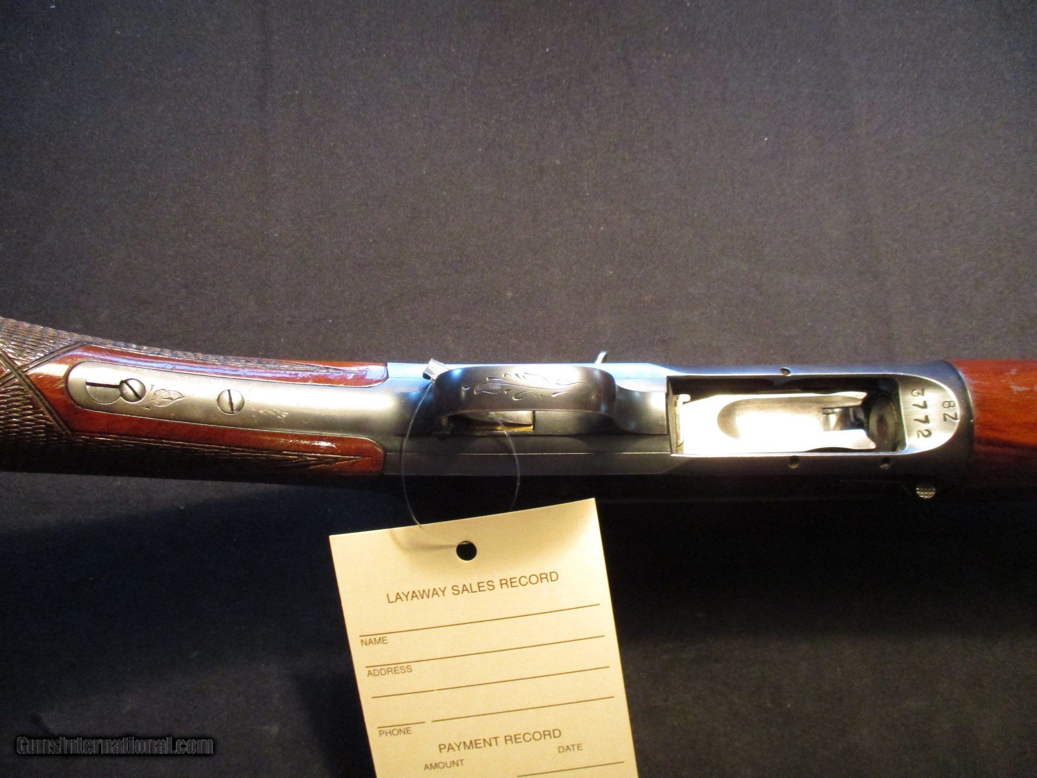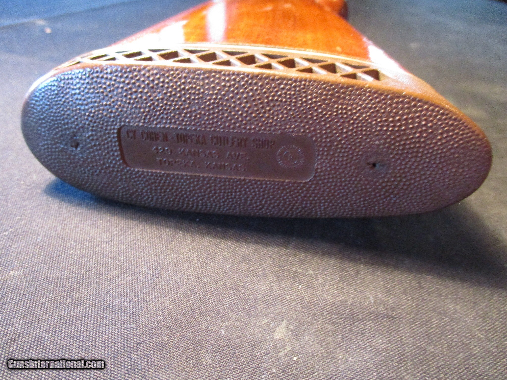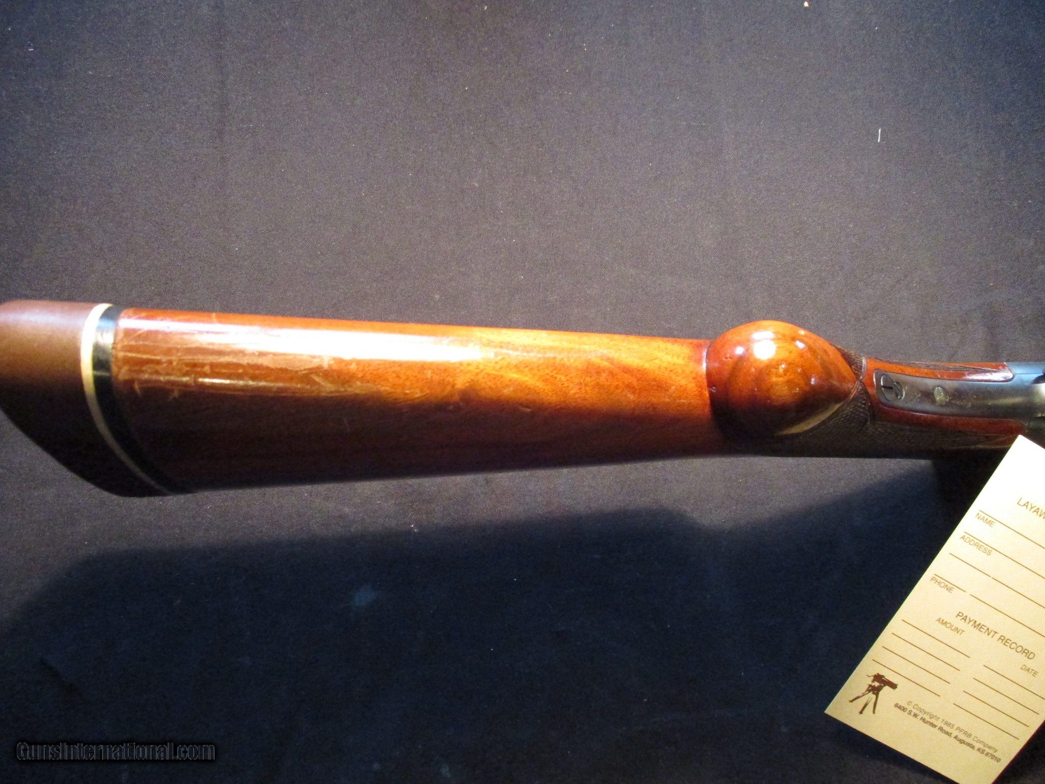 Description: Browning Auto 5, 20ga, Light 20. 28" plain barrel, Fixed full choke. SN is 8Z37xx, made in 1958. Factory finish on both wood and metal, clean gun. LOP is 13 1/4" as pictured. Email me if you would like these pics sent to you, they will come through bigger and better than on the listing page here. We do offer Lay-A-Way. Our standard terms are 25% down, 90 days. Initial deposit is not refundable. Email me with any questions. I am a store front dealer, and I will close s if the gun sells locally. Once it has aI will pull it from my shelves. Please check your local laws to confirm it is legal to own in your state! Buyer pays $25 shipping and insurance to your FFL in the lower 48. AK, HI or PR is extra. I will ship to California, NO PROBLEM! All my guns come with a non-firing, 3 day unconditional return privilege, from the day UPS delivers to your dealer. Buyer pays shipping both ways if the gun comes back. I can add a new hard case by PLANO for secure shipping for $25 if the buyer wishes (highly recommended, cheap insurance, really helps keep the UPS monster from eating my guns!). No sales tax on guns ship out of Kansas, guns sold in Kansas are subject to Kansas sales tax. I am a licensed FFL, and will include a copy of my FFL with the gun for your dealer’s records. I will ship to a C&R if the gun is eligible. I will ship to California, but you need to confirm the gun is legal where you are, California or other. WE BUY AND CONSIGN GUNS AND GUN COLLECTIONS! We will travel to pick up collections! I am always looking for good clean, old original Winchesters to buy, consign, or trade, especially Pre '64's model 70's and model 54's. WE ALSO TRADE FOR CLASSIC CARS AND TRUCKS! Email me with any questions, and good luck! SOLD |