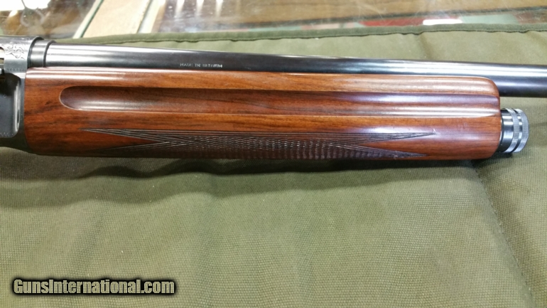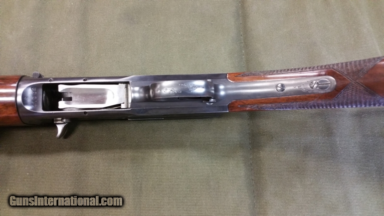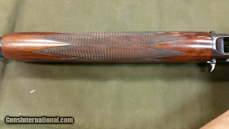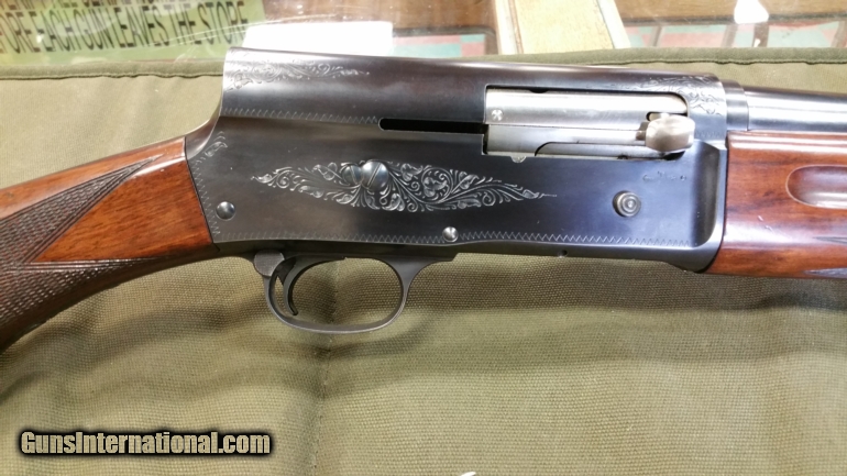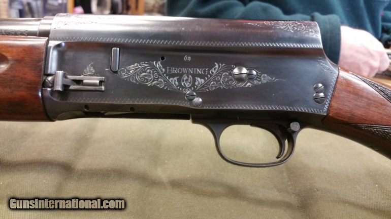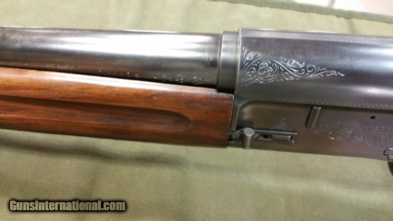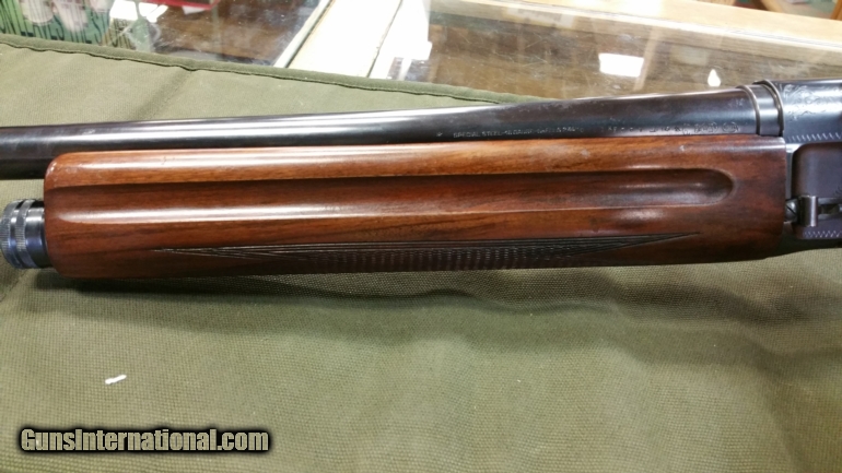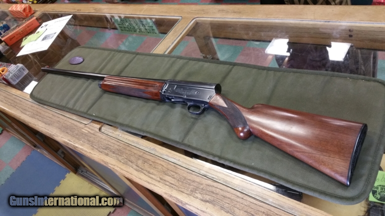 Description: For sale is a Browning A5 Standard 16 gauge. It has a plain 28 full choke barrel.." The bluing is in very good condition, almost like new. The light spots showing in the photos are from glare. The stock is also in excellent condition, but was refinished in the past. According to the serial number, it is from 1955. If you have questions or would like to buy this shotgun, please call 479-926-7477 or 479-806-8269 and ask for Jerry or Tyler. Mention that you are calling in reference to a gunsinternational listing and payment can be arranged over the phone if you like. Thanks for looking SOLD |