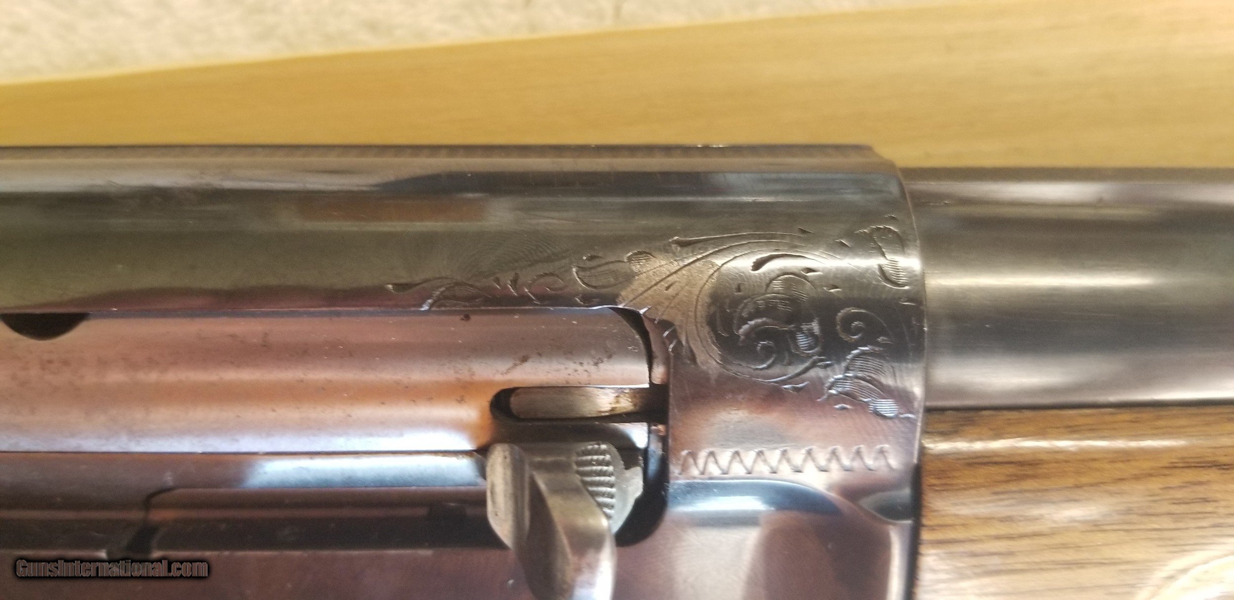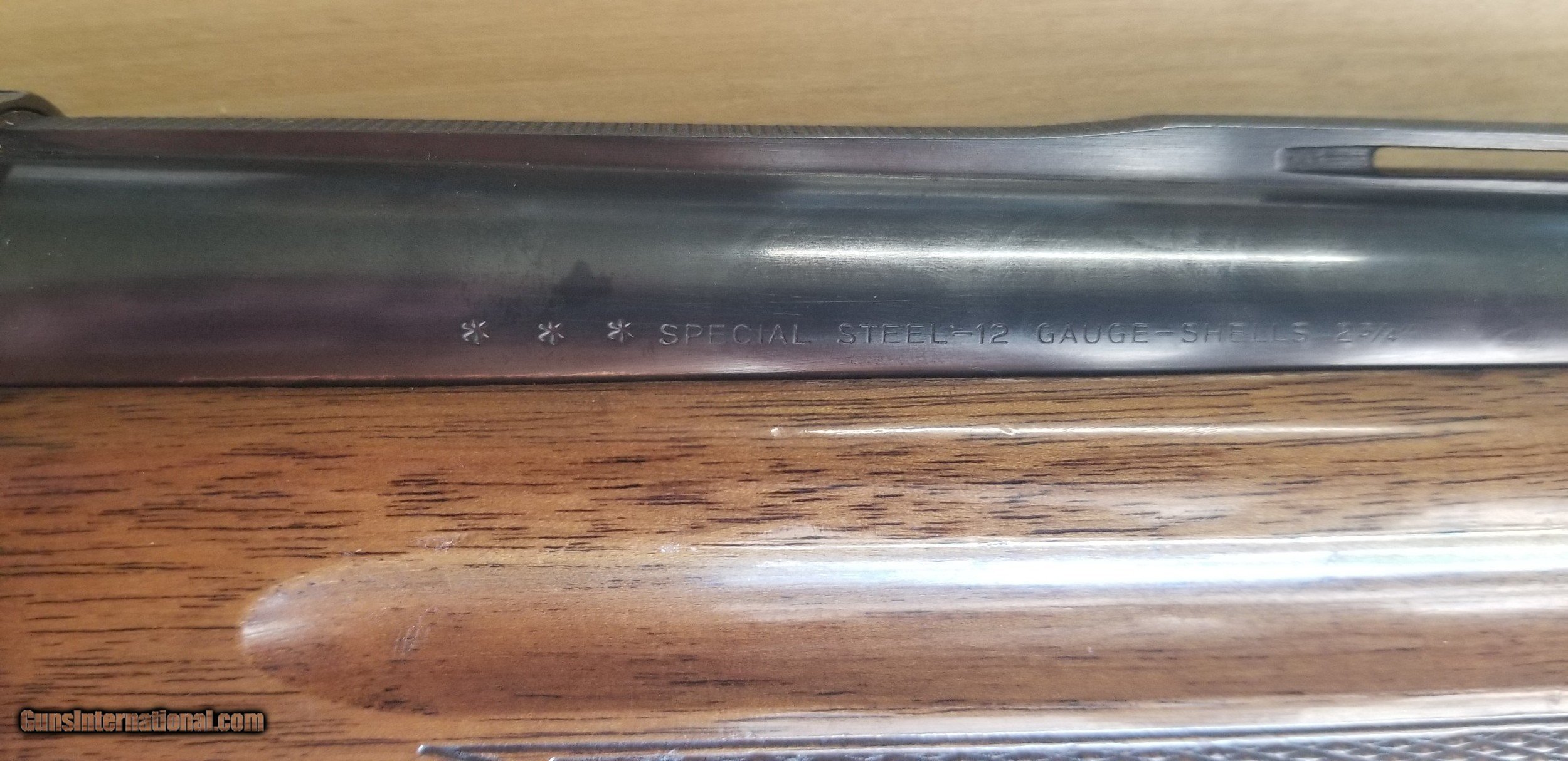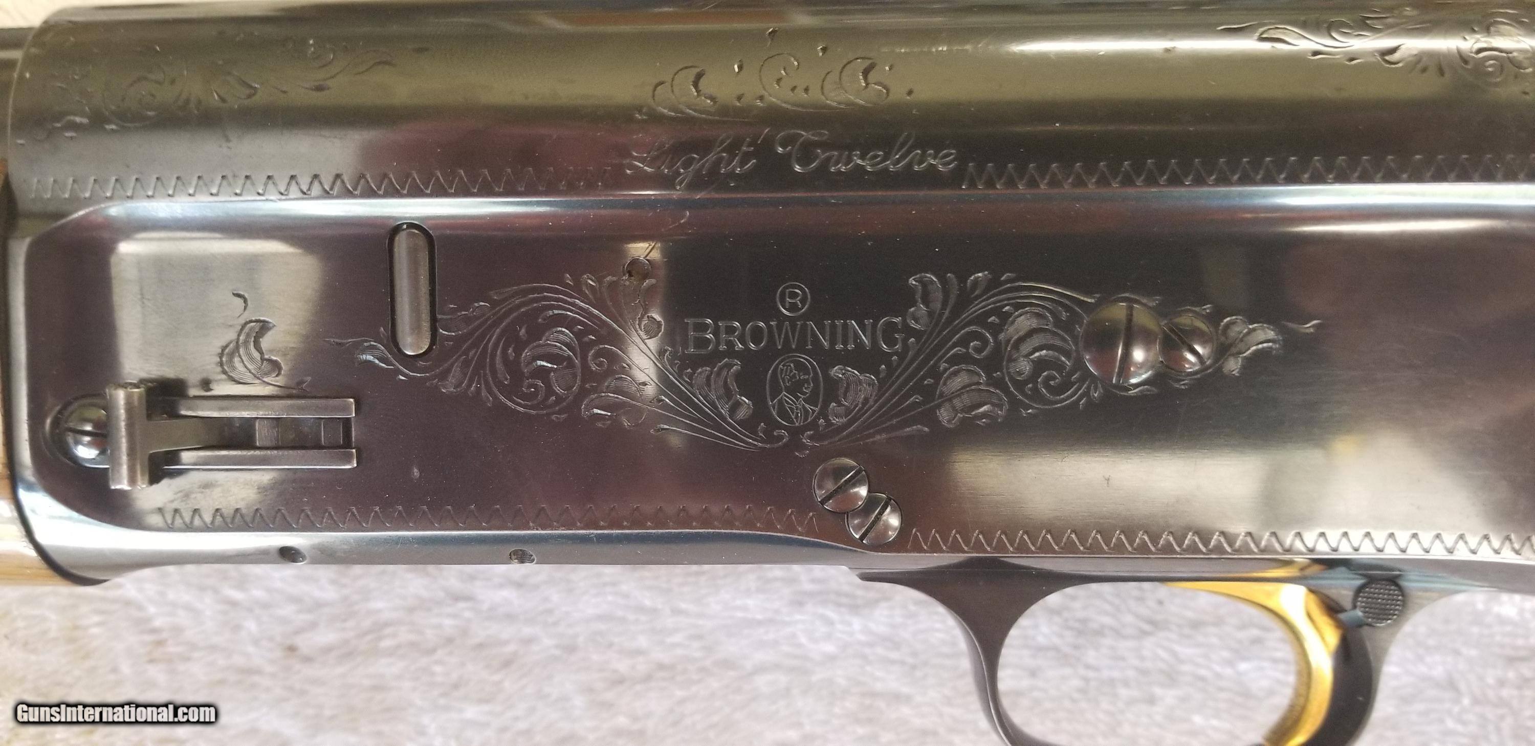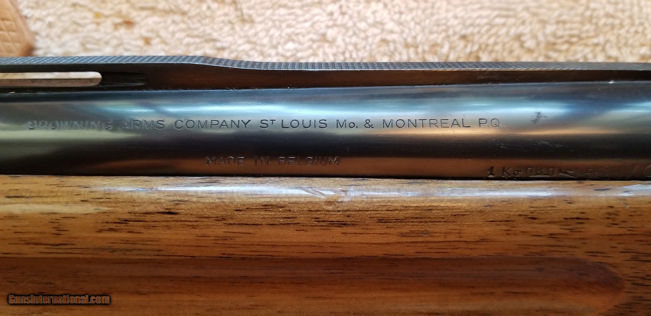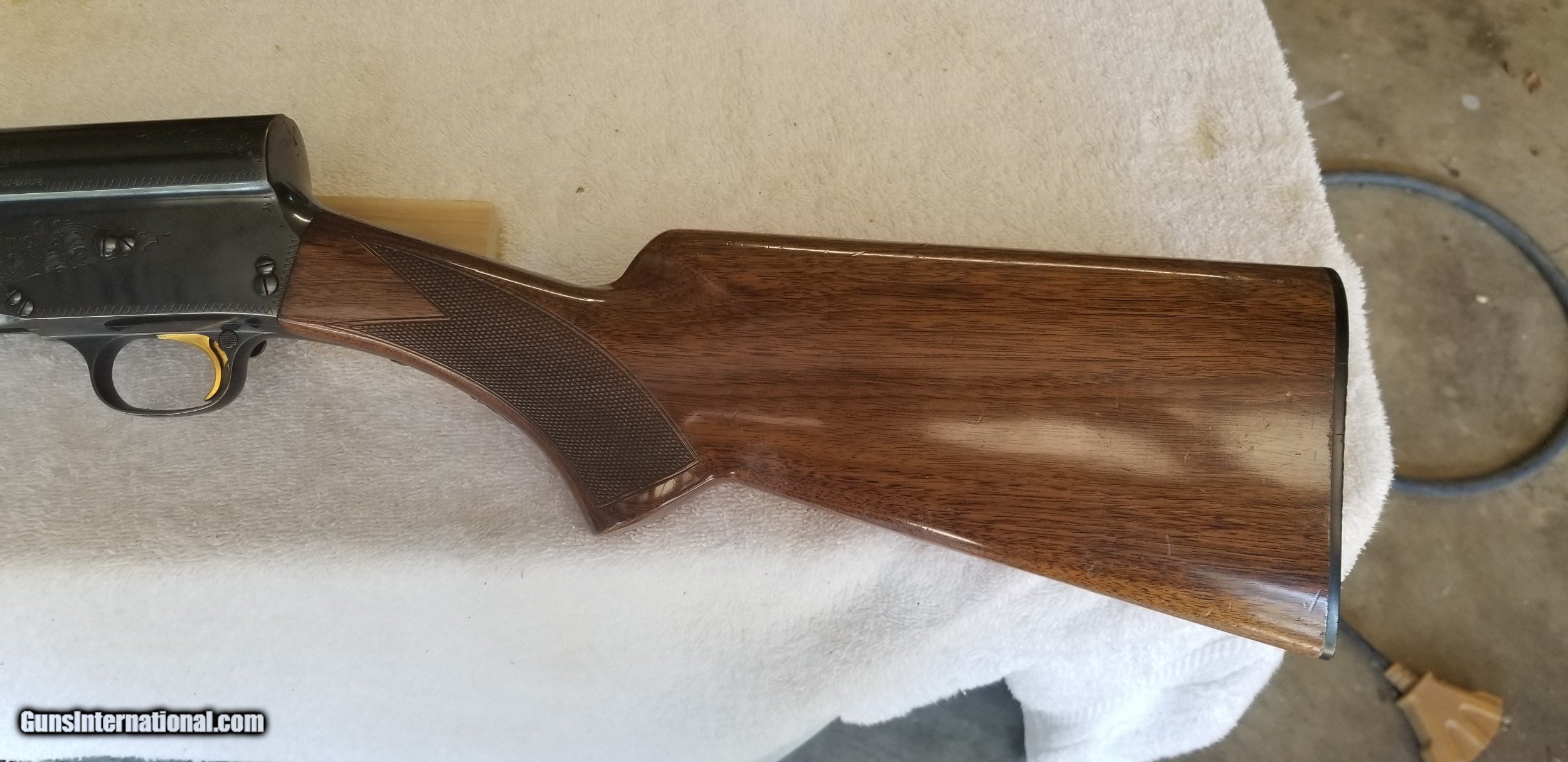 Description: Belgium Browning A5 12Ga w/rare 25 1/2 inch cyl bore barrel. No cracks or splits in the wood with just light handling marks. Blue is excellent, no edge wear, rust or pitting. Just one small mark on the side just forward and above the bolt as shown in the photos. Gold on trigger is near 100%. All in all I would rate this firearm at 97% to 98%. All offers considered. Cash check or money order. Must have copy of your FFL to ship. Shipping and insurance $45.00. SOLD Shotgun Gauge: 12 Gauge Manufacturer: Browning Model: Light A5 Serial Number: 68g45xxx Barrel Length: 25 1/2 inches cylinder Condition: 97% to 98% Bore Condition: Bright and shiny LOP: 14 1/4 inches to factory butt plate Rib: Vent Manufacture Date: 1968 Chokes: CYL |