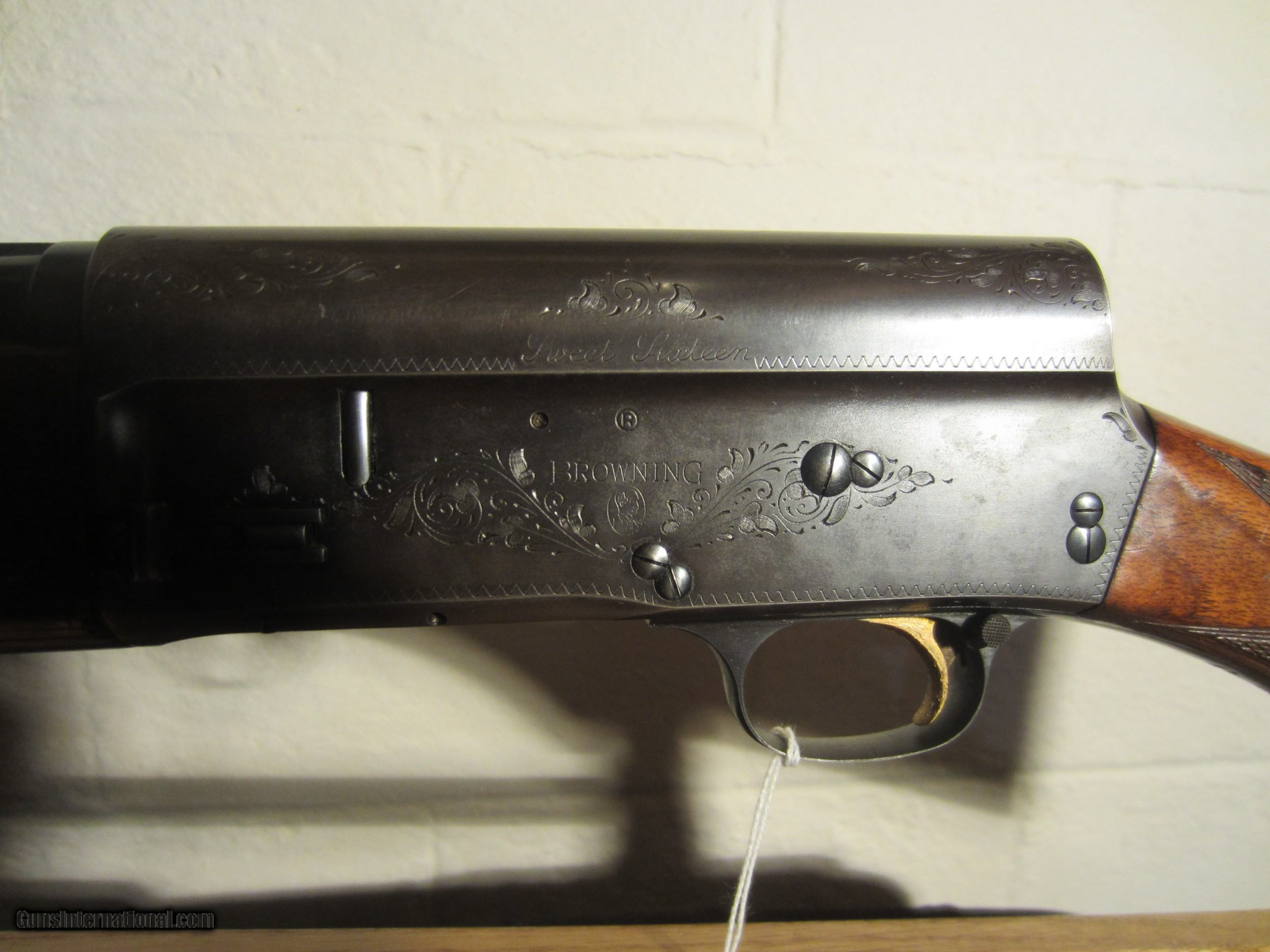 Description: BROWNING A5 BELGIUM MADE SWEET 16GA VENT RIB CHAMBER 2 3/4" CHOKE MODIFIED, ROUND NOB BUTT STOCK. SERIAL NUMBER S 78694 WOOD HAS LIGHT HANDLING MARKS NO CRACKS IN WOOD FOREARM OR BUTT STOCK. WANT TO PURCHASE CALL SHOP 716-941-3946 SOLD |