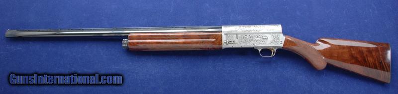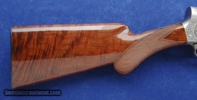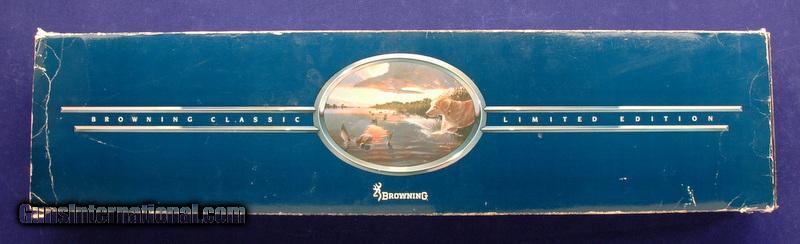 Description: Browning A5 Classic One of Five Thousand 12ga and manufactured 1986-87. It is a 12 gauge in original box. This high grade guns was engraved in Belgium. Features include a 28” Vent Rib, modified barrels, coin finished receive, special checkering, beautifully figured walnut stock and a classic FN butt plate. This is a used gun that has been hunted and shows some oxidation on the receiver and handing marks on the stock. SOLD |