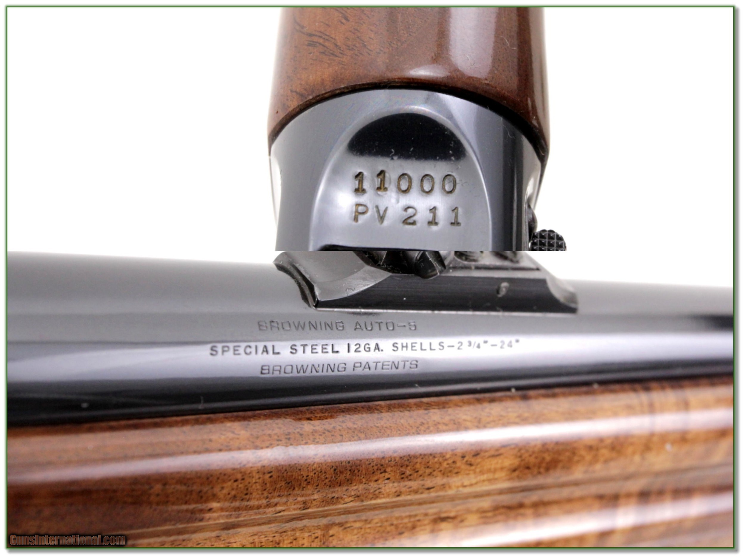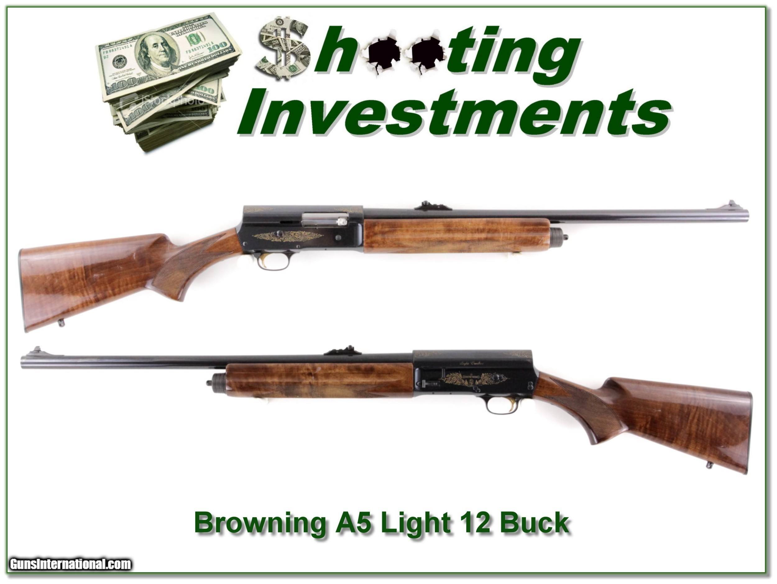 Description: This is a Browning A5 Light 12. It has a 24in sighted “buck” barrel. This one has excellent blue and much nicer wood figure than typical. There are some marks on the wood. It will make a classic deer gun and of course other A5 barrels will fit. It will make a classic hunting gun. Shipping with insurance is $39. Please email me with any questions or larger pictures. (Consign your quality firearms with Shooting Investments for only 12%! Let me know if you have any you would like to sell!) 19-0387 Payment: Payment is by Money Order, Cashiers Check or Personal Check. I can now also accept Credit Cards (MasterCard, Visa, Discover & American Express) with a 3% convenience fee. PayPal can be used for some items but never for firearms. Shipping: The shipping charge will be listed in each description. It is $39 for most firearms. Some heavy guns or those insured for over $2000 will be higher. Shipments to Alaska and Hawaii are higher because air shipment is required. Most firearms are shipped on Tuesday and Thursday and usually in 5 days of receipt of payment. We package all shipments carefully and insure them. Optics are shipped Priority Mail and most other non-firearm shipments are shipped First Class. Returns: Our return policy is simple. If for any reason you are not pleased with your purchase, you may return your item for a full refund of purchase price. Ammunition cannot be returned. It is important to us that you are happy. Guns cannot be fired or dissembled before returning them and they must be returned in the same condition as received. Notification of a return must occur with-in 3 days of receipt at your dealer. Shipping, convenience and dealer fees are not refundable and are the responsibility of the buyer. Lay-a-way: If needed, we offer a 60 day lay-a-way option on most firearms. It is 1/3 now, 1/3 in 30 days and 1/3 in 60 days. Lay-a-way firearm sales are final and if not completed the first payment cannot be returned. Consigning your firearms with Shooting Investments: We will help you get top dollar for your firearms. While most local guns shops charge 20% or more, our fee is only 12% with a minimum of $75. At your local gun shop it might take months to sell. Selling on-line provides instant access to thousands of interested buyers. You won’t find any other on-line dealer willing to sell your firearms for only 12% or listing every gun on 3 separate s. Selling through an House typically costs the seller 15% and the buyer an addition 15% (so 30%) and you have to wait several months to sell and longer to receive funds. If properly priced, we will sell your firearms in a few weeks. Send us an email or give us a call and we’ll explain how easy it is for you to get top dollar. Trading: Trading for use is really just buying your gun to re-sell. If you have a gun you want to trade, please email a picture and we will let you know what we can give or it. You will always get more if we sell it for you on consignment. Help for California Buyers: We are happy to ship to California. It is the buyer’s responsibility to make sure any item you buy is legal in your state. We are also happy to help with your purchase of a firearm from someone other than us. If you see a gun you would like to buy but the seller can’t or won’t ship to California they can ship to use and we’ll then ship it to your California dealer. The cost for this service is only $30 + shipping. Let us know if we can help! SOLD |