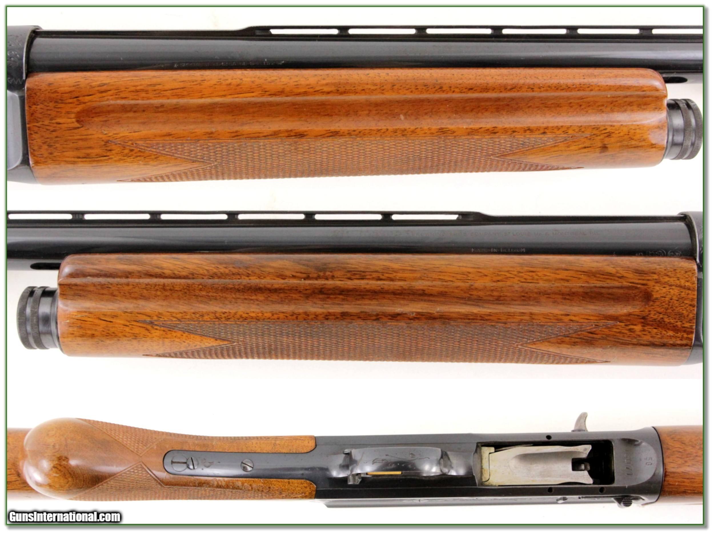 Description: This is a 1965 Belgium made Browning Light 12. It has MUCH nicer wood grain than most. The blue is excellent with no edge or recoil wear. The wood has a few minor marks. It has a Vent Rib 30in Full barrel. Shipping with insurance is $39. Please email me with any questions or larger pictures. (Consign your quality firearms with Shooting Investments for only 12%! Let me know if you have any you would like to sell!) 19-0963 Payment: Payment is by Money Order, Cashiers Check or Personal Check. I can now also accept Credit Cards (MasterCard, Visa, Discover & American Express) with a 3% convenience fee. PayPal can be used for some items but never for firearms. Shipping: The shipping charge will be listed in each description. It is $39 for most firearms. Some heavy guns or those insured for over $2000 will be higher. Shipments to Alaska and Hawaii are higher because air shipment is required. Most firearms are shipped on Tuesday and Thursday and usually in 5 days of receipt of payment. We package all shipments carefully and insure them. Optics are shipped Priority Mail and most other non-firearm shipments are shipped First Class. Returns: Our return policy is simple. If for any reason you are not pleased with your purchase, you may return your item for a full refund of purchase price. Ammunition cannot be returned. It is important to us that you are happy. Guns cannot be fired or dissembled before returning them and they must be returned in the same condition as received. Notification of a return must occur with-in 3 days of receipt at your dealer. Shipping, convenience and dealer fees are not refundable and are the responsibility of the buyer. Lay-a-way: If needed, we offer a 60 day lay-a-way option on most firearms. It is 1/3 now, 1/3 in 30 days and 1/3 in 60 days. Lay-a-way firearm sales are final and if not completed the first payment cannot be returned. Consigning your firearms with Shooting Investments: We will help you get top dollar for your firearms. While most local guns shops charge 20% or more, our fee is only 12% with a minimum of $75. At your local gun shop it might take months to sell. Selling on-line provides instant access to thousands of interested buyers. You won’t find any other on-line dealer willing to sell your firearms for only 12% or listing every gun on 3 separate s. Selling through an House typically costs the seller 15% and the buyer an addition 15% (so 30%) and you have to wait several months to sell and longer to receive funds. If properly priced, we will sell your firearms in a few weeks. Send us an email or give us a call and we’ll explain how easy it is for you to get top dollar. Trading: Trading for use is really just buying your gun to re-sell. If you have a gun you want to trade, please email a picture and we will let you know what we can give or it. You will always get more if we sell it for you on consignment. Help for California Buyers: We are happy to ship to California. It is the buyer’s responsibility to make sure any item you buy is legal in your state. We are also happy to help with your purchase of a firearm from someone other than us. If you see a gun you would like to buy but the seller can’t or won’t ship to California they can ship to use and we’ll then ship it to your California dealer. The cost for this service is only $30 + shipping. Let us know if we can help! SOLD |