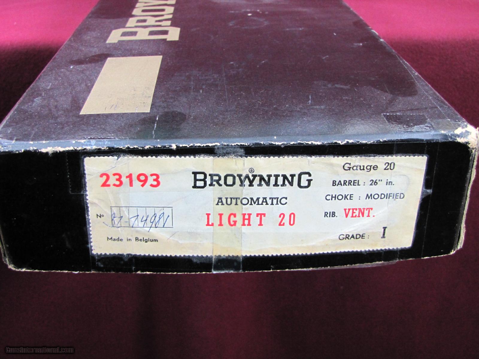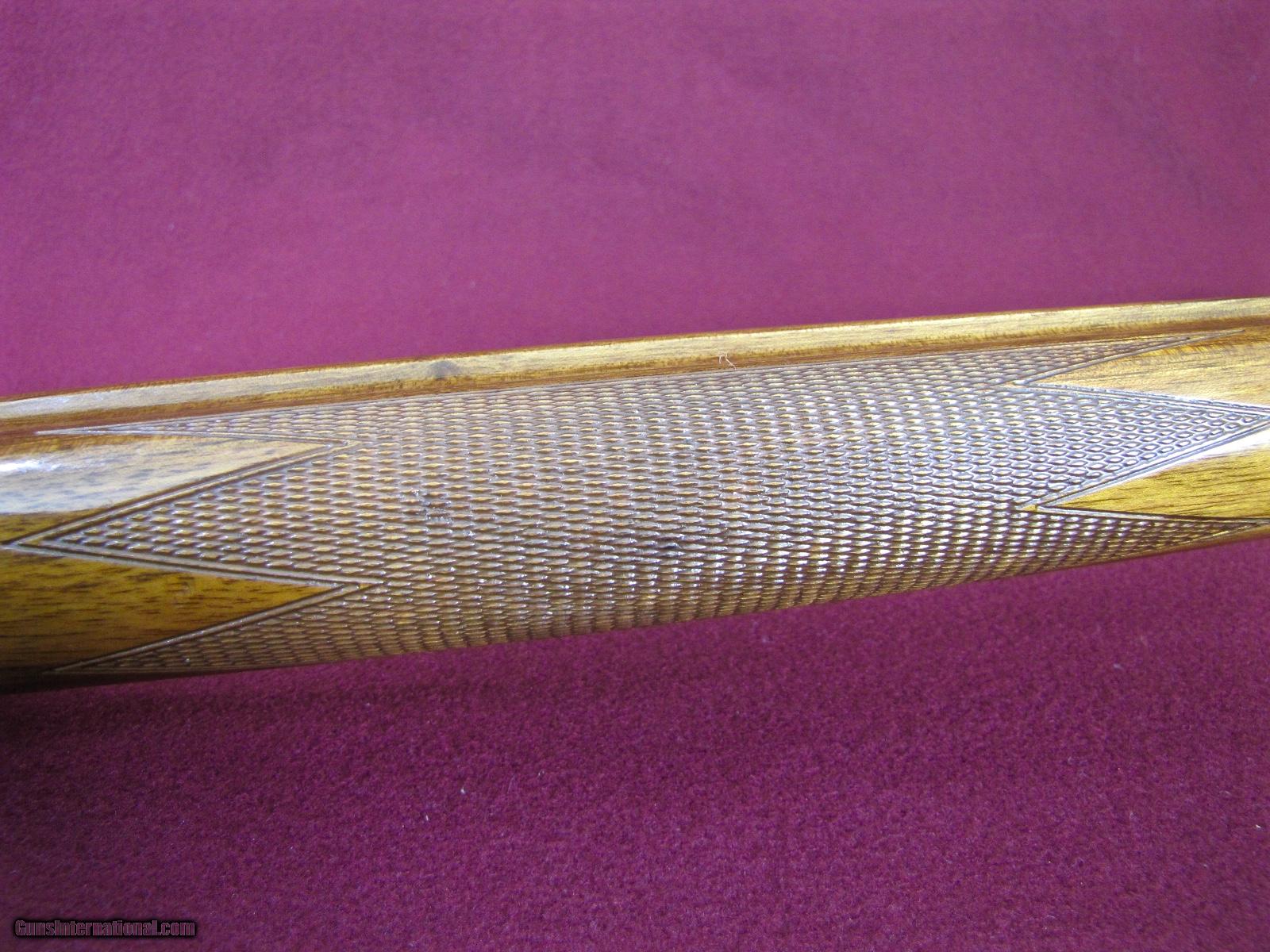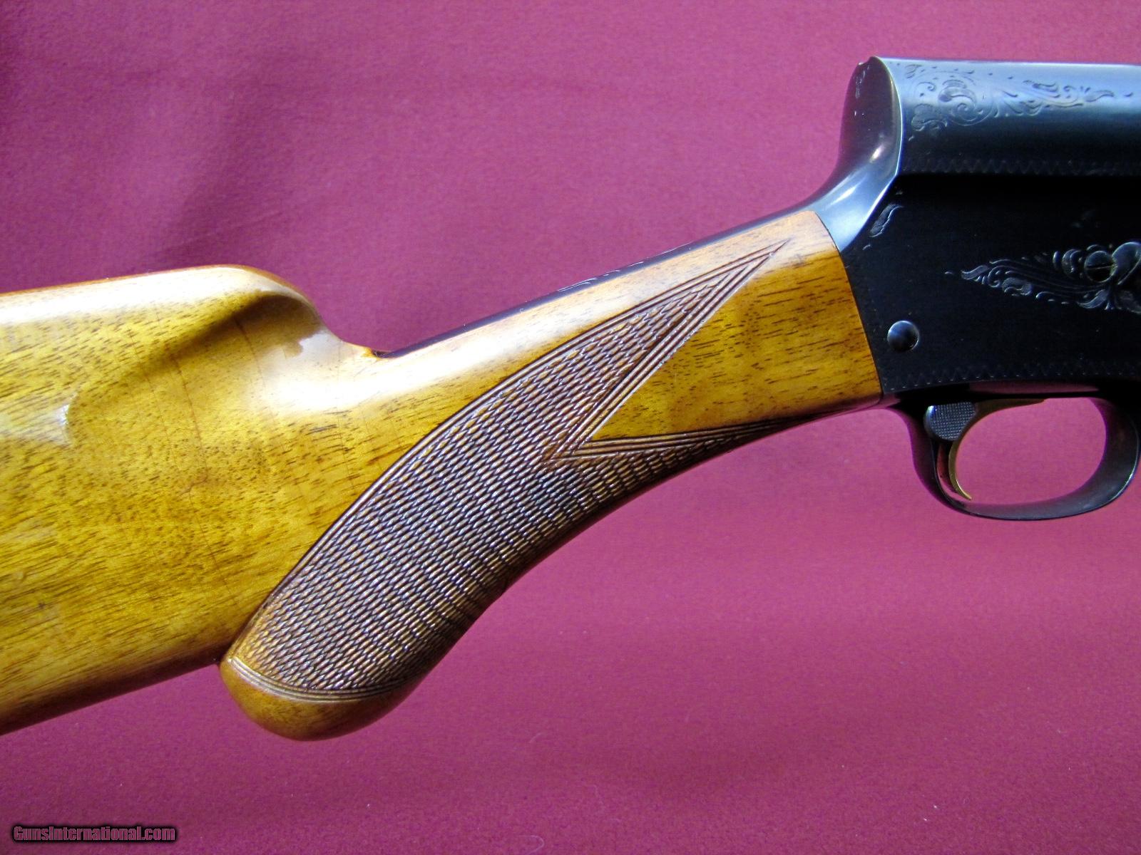 Description: I have for sale a gun that is out of my personal collection. I've owned this gun for at least 25 years but it is just sitting and it is time for someone else to own and perhaps shoot this nice little Browning A5 Light 20 Gauge. This particular gun has 26 inch vent ribbed barrel and is choked modified which is a rather rare choke in this length barrel. The bore measures .621 and the choke measures .607 giving you a perfect .014 constriction. This gun is all original with nice blond colored wood and is a 1963 gun with round knob and long tang. Stock dimensions are 1 1/2 X 2 1/4 X 14 1/4 over original Browning butt plate. Weight of the gun is 6 pounds 11 ounces. The gun has been fired very, very, little with no wear to trigger tang and bolt face looks as new. In fact in all the time I've owned the gun I've never fired it. The only detraction on this gun is some dings on the left side of the butt stock that were there when I bought the gun and the normal crazing that many of these older Brownings have. Both of these things are visible in the pictures. If you had the butt stock refinished by Art's you would have a 99% gun with original and correct box. No screw has been touched on this gun. Price of this gun is $2050 plus $35 shipping to your FFL. As always there is a three day non-firing inspection period with the buyer paying shipping charges if returned. Contact me with any questions you might have on what I believe to be the best semi-auto ever produced. SOLD Manufacturer: Browning Model: A5 Light 20 Serial Number: 3Z 74981 Condition: Excellent Wood Condition: nice original Barrels: 26 inches Gauge Info: 20 Stock Comb: 1 1/2 Stock Heel: 2 1/4 Weight: 6 pounds 11 ounces Manufacture Date: 1963 Chokes: modified |