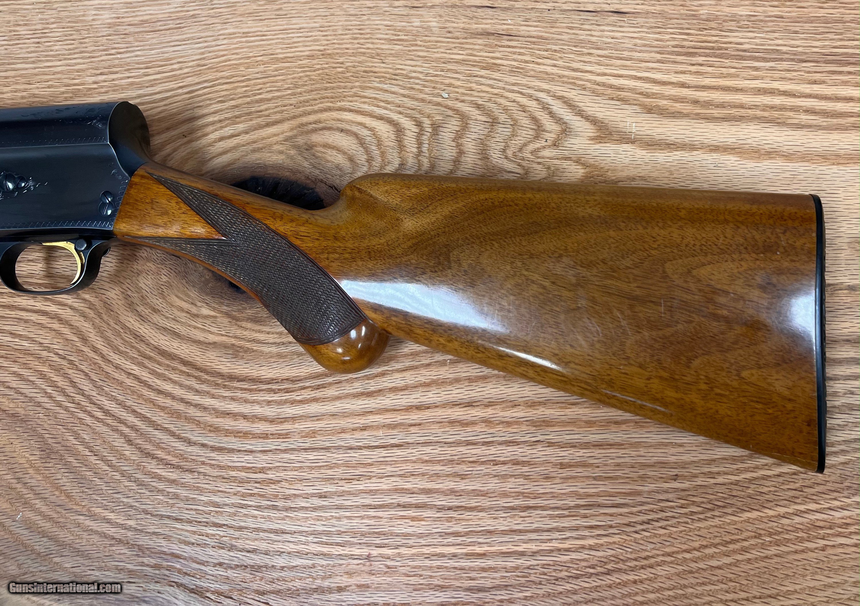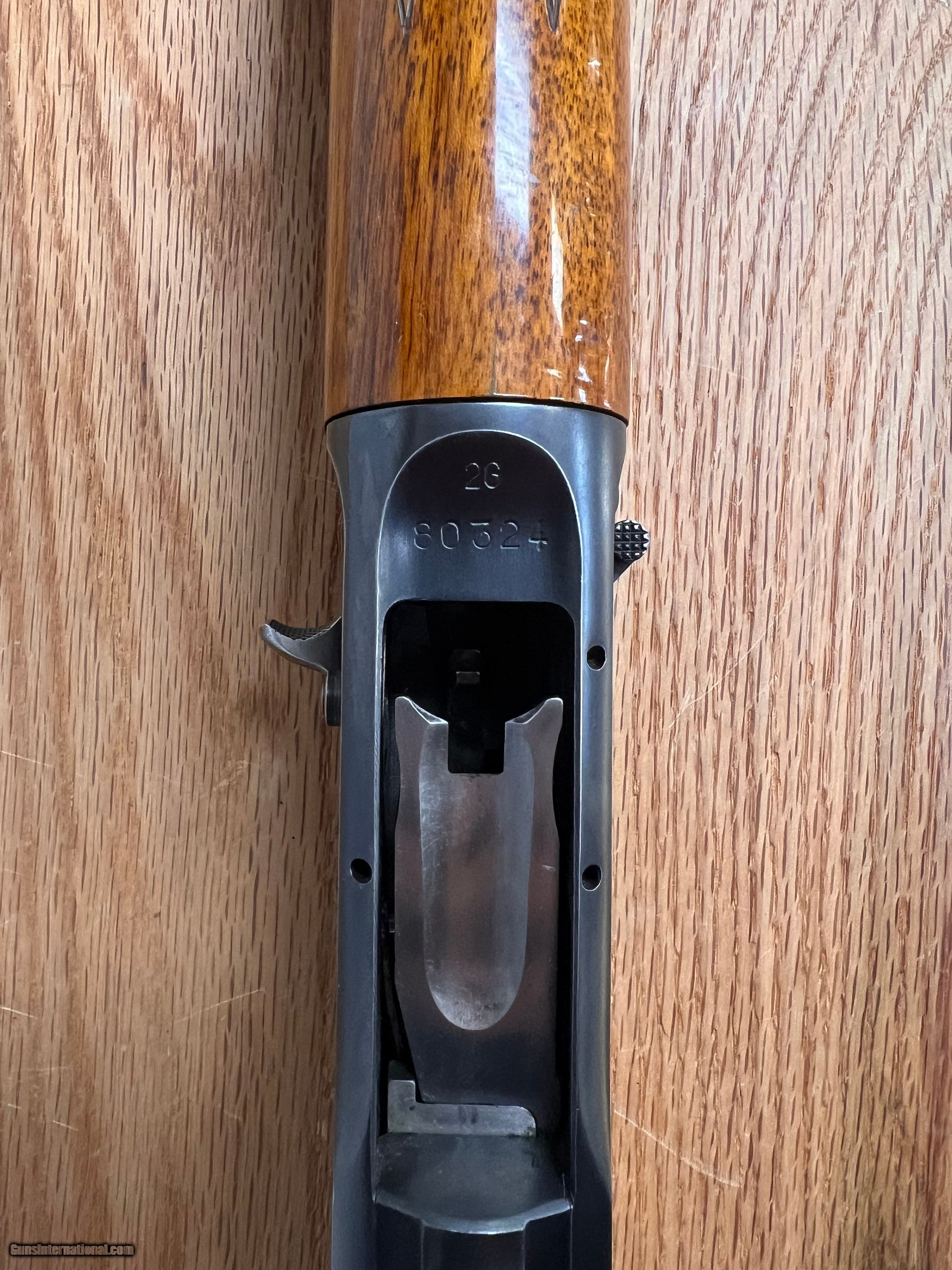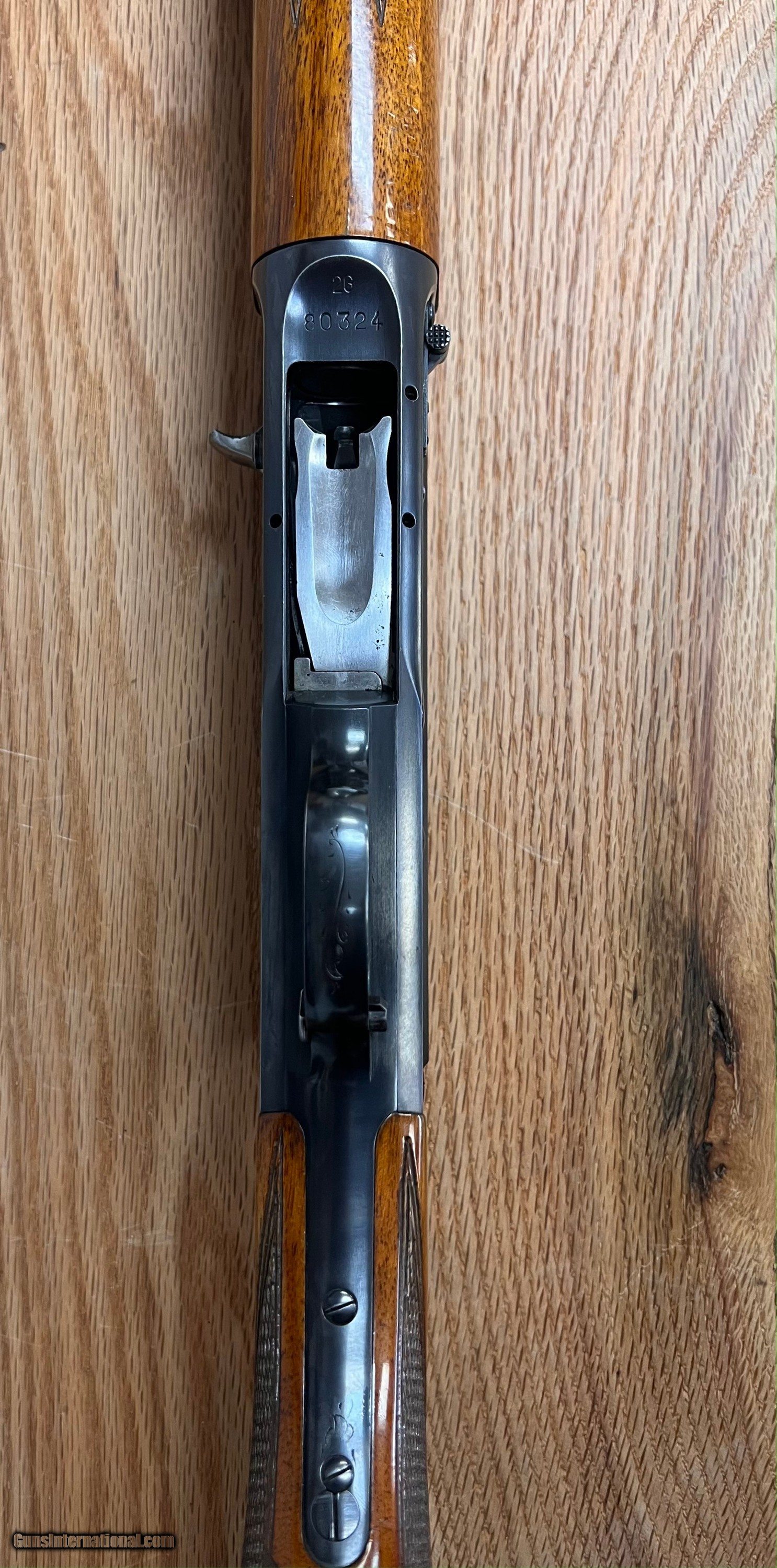 Description: This is a Belgium Browning A5 Light Twelve that is in excellent shape, Bluing is in impeccable condition, there is no rust, and very light wear. Has original furniture and looks to have never been opened. This particular piece was manufactured in 1957, during the time frame of 1947-1962 Browning outfitted the A5 with a reddish stock and forearm configuration as well as a rounded knob on the stock. This piece has been a safe queen most of its life and is in great shape, the perfect piece for any A5 collector. The barrel is 28 inches long and has a modified choke. SOLD Shotgun Gauge: 12 Gauge Manufacturer: Browning Model: A5 Light Twelve Serial Number: 2G80324 Manufacture Date: 1957 |